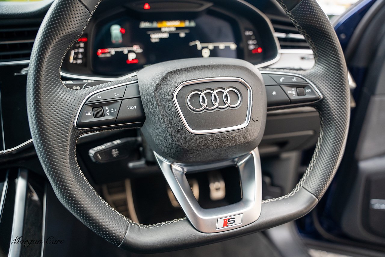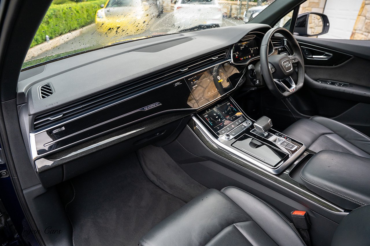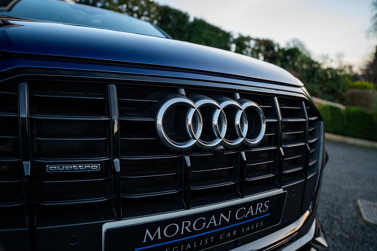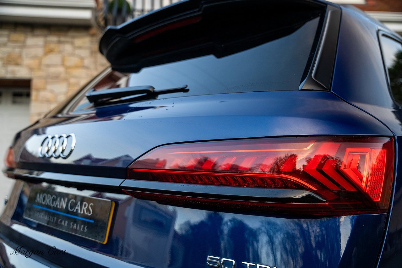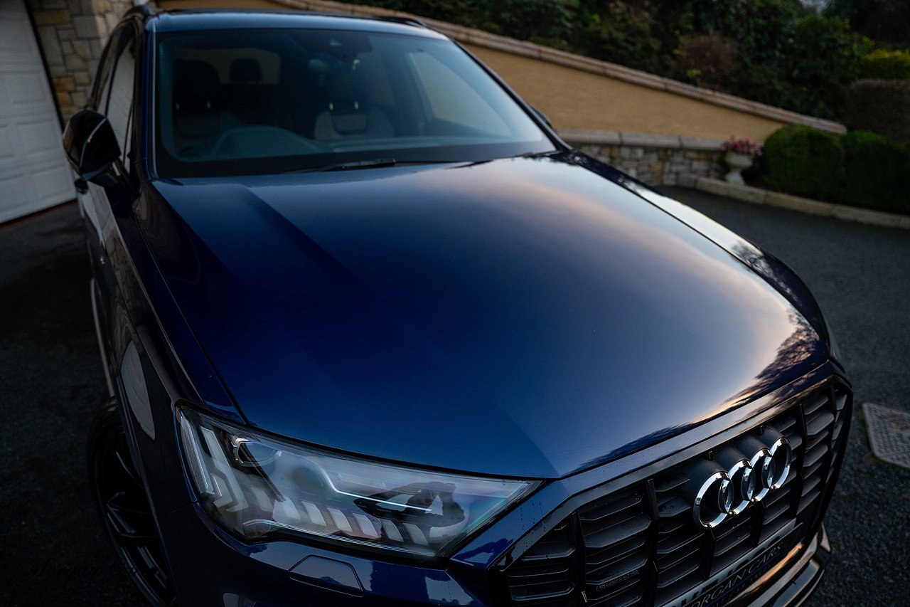 Morgan Cars are proud to present this Beautiful Audi Q7 Black Edition 50 TDI finished in Navarra Blue metallic with full Black Valcona Leather interior, This Audi Q7 Black edition features the Four Zone Automatic climate control, Heated front seats, 21" Black Edition alloy wheels in Gloss Black, Privacy Glass, Full Black exterior styling package, Adaptive Height adjustable suspension system, LED Matrix Headlights, Fixed Side steps, Flat bottom S Line steering wheel, Maxton Design Lower Front Splitter and Rear Boot Spoiler.