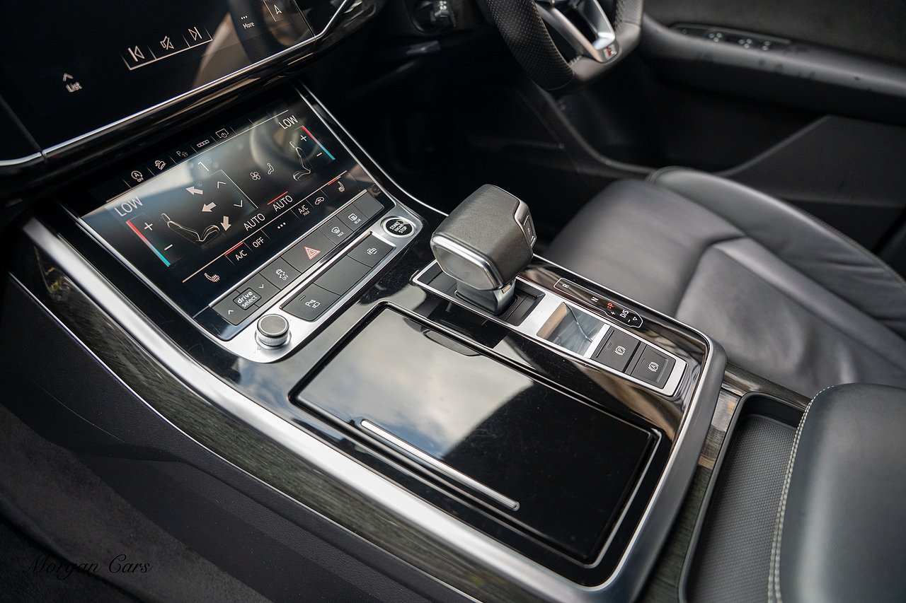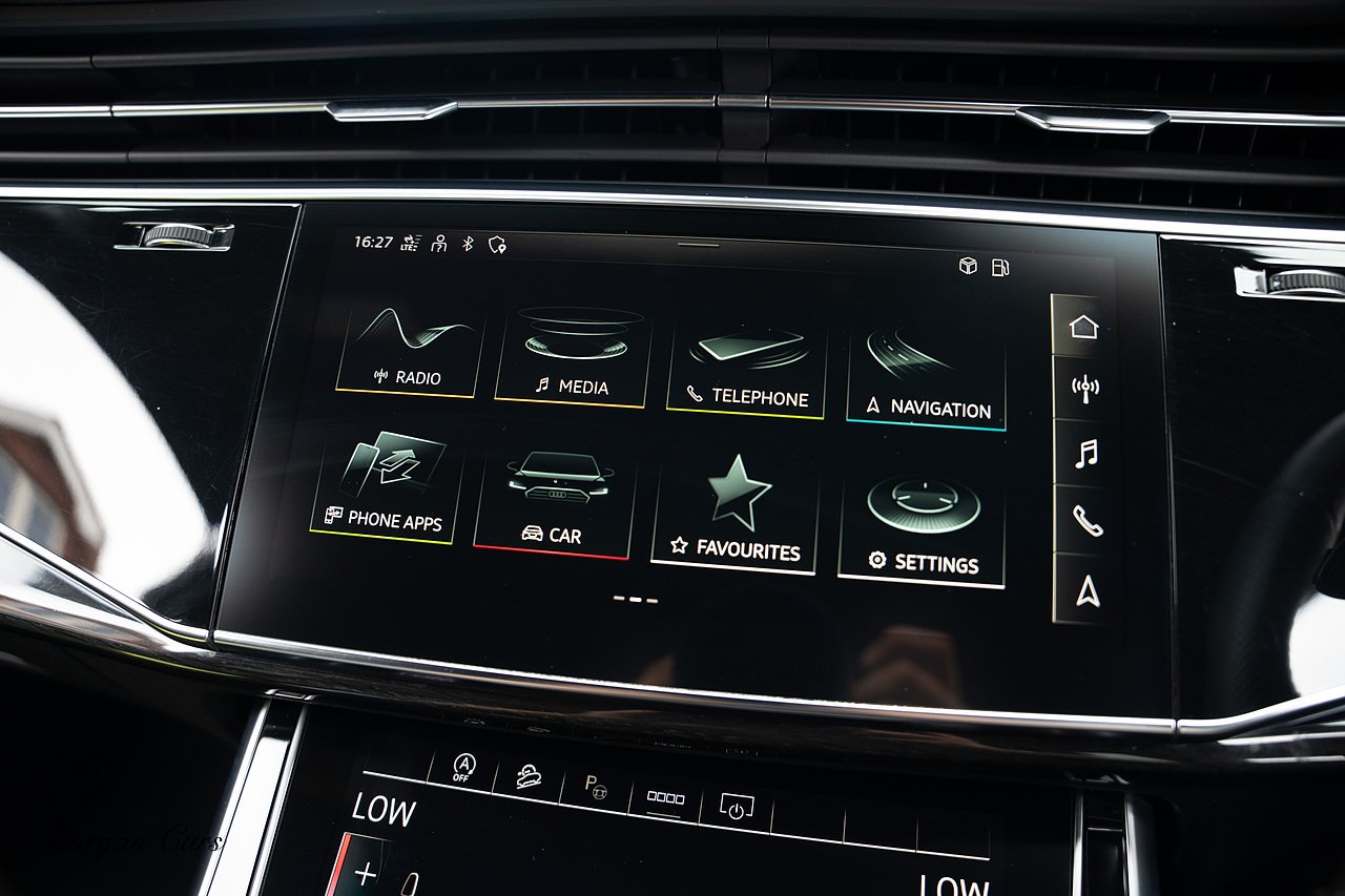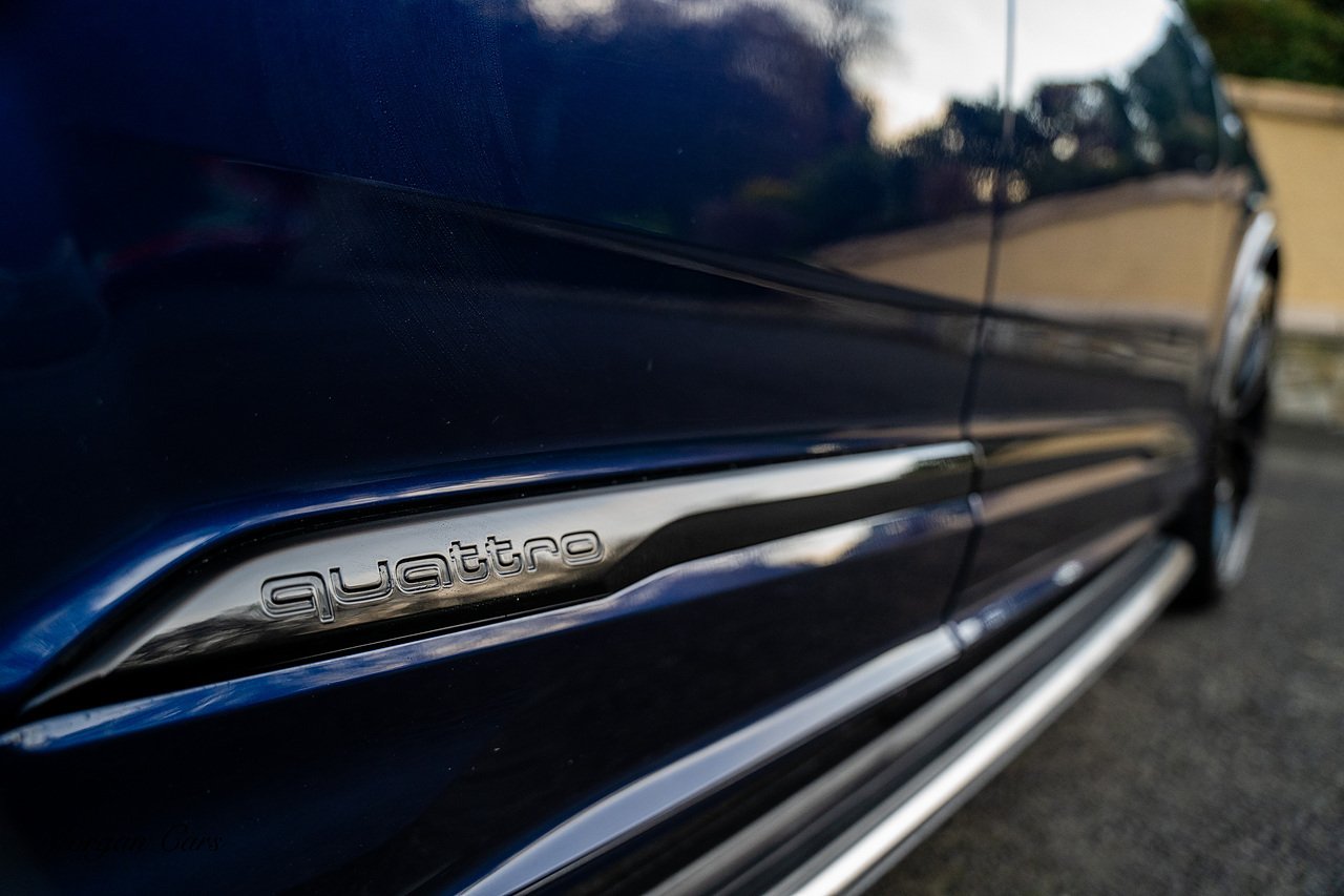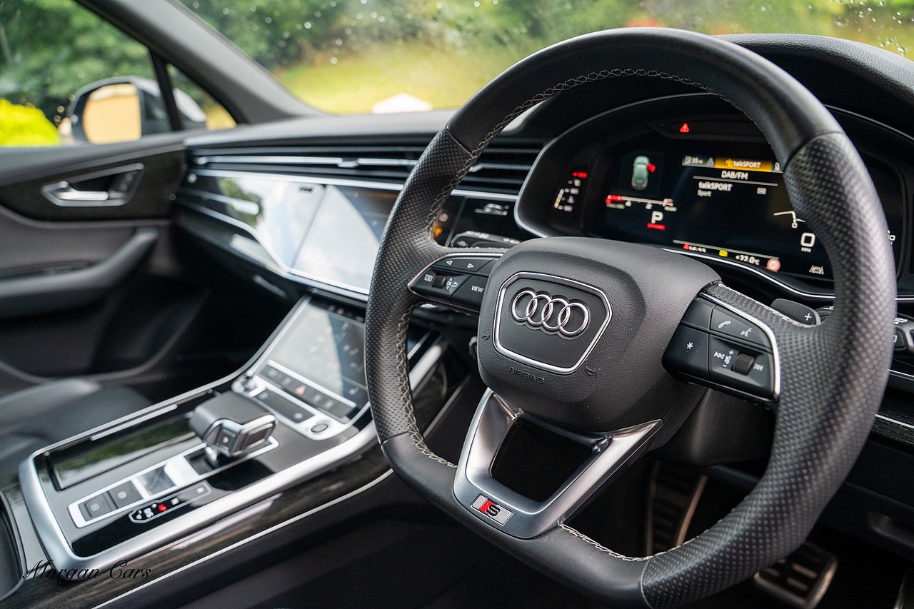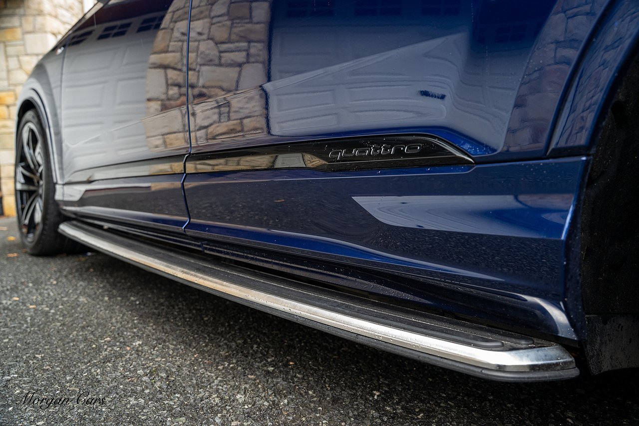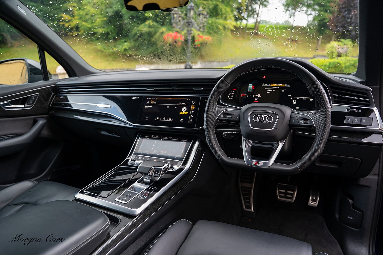 Morgan Cars are proud to present this Beautiful Audi Q7 Black Edition 50 TDI finished in Navarra Blue metallic with full Black Valcona Leather interior, This Audi Q7 Black edition features the Four Zone Automatic climate control, Heated front seats, 21" Black Edition alloy wheels in Gloss Black, Privacy Glass, Full Black exterior styling package, Adaptive Height adjustable suspension system, LED Matrix Headlights, Fixed Side steps, Flat bottom S Line steering wheel, Maxton Design Lower Front Splitter and Rear Boot Spoiler.