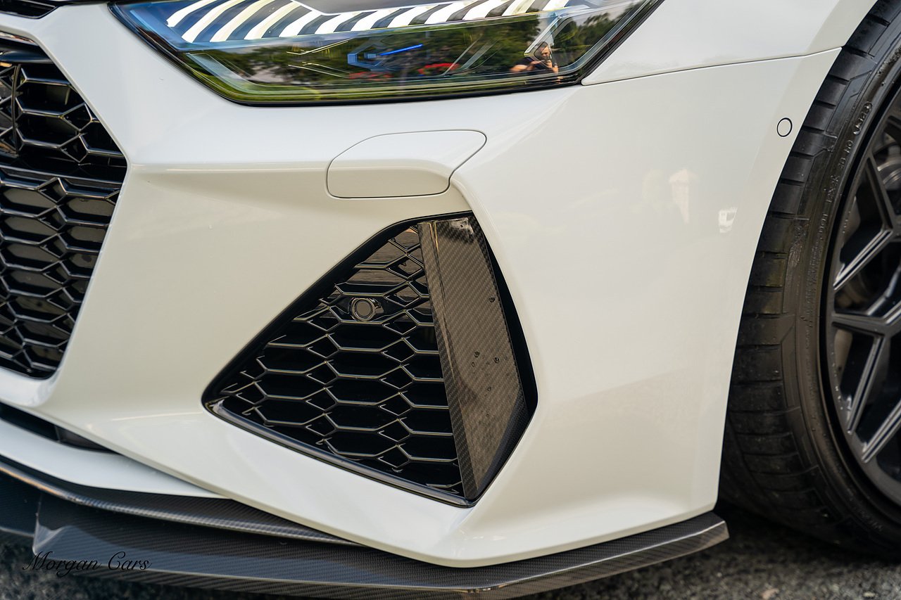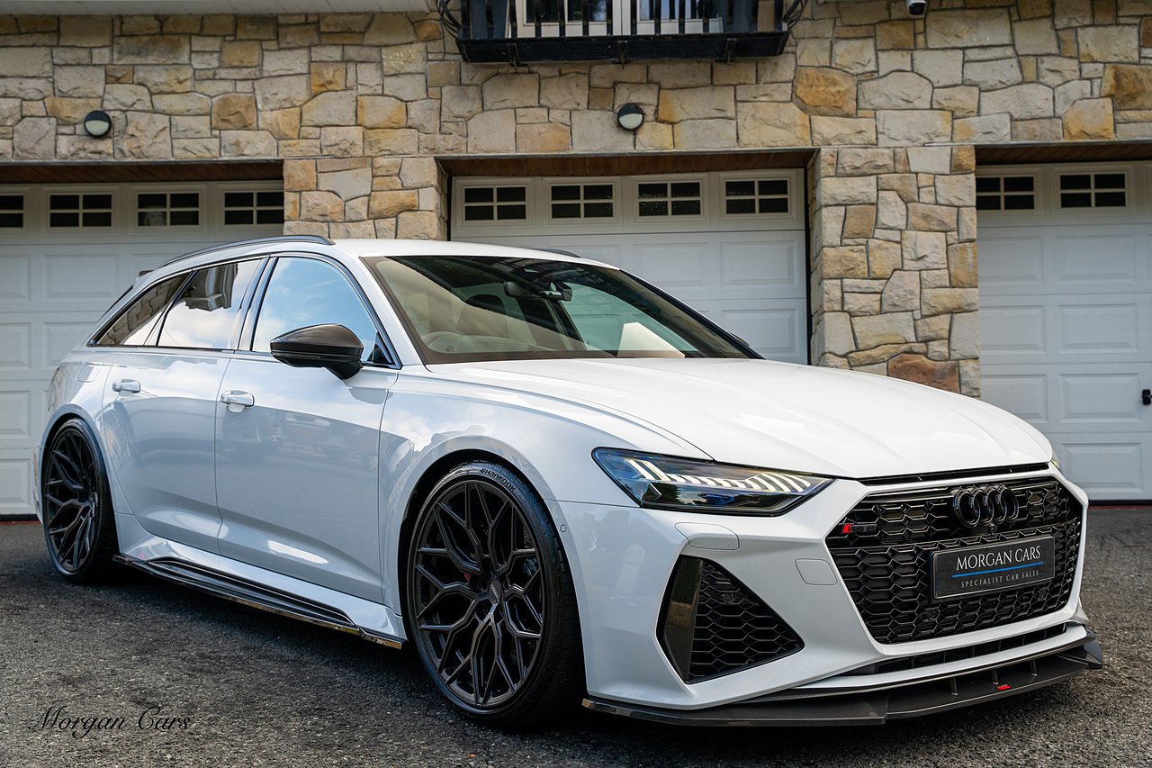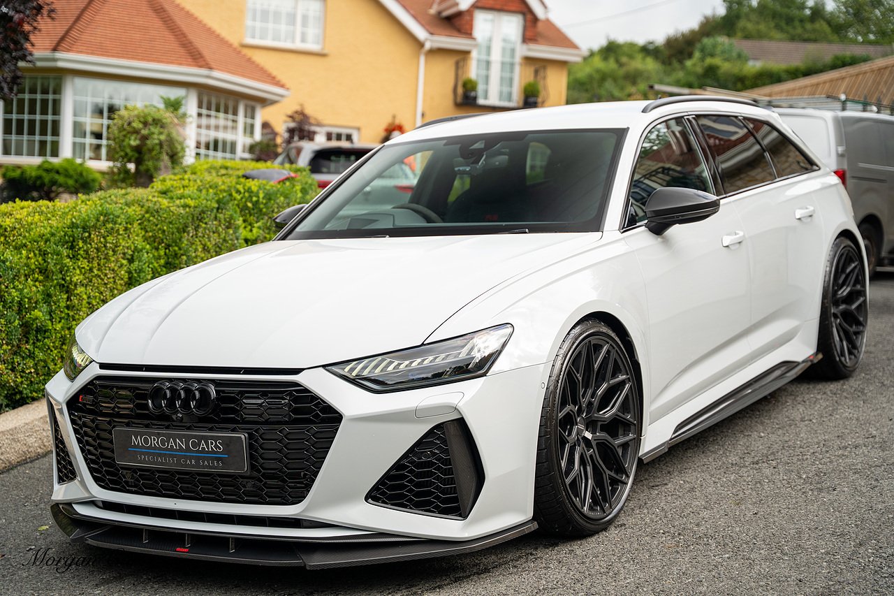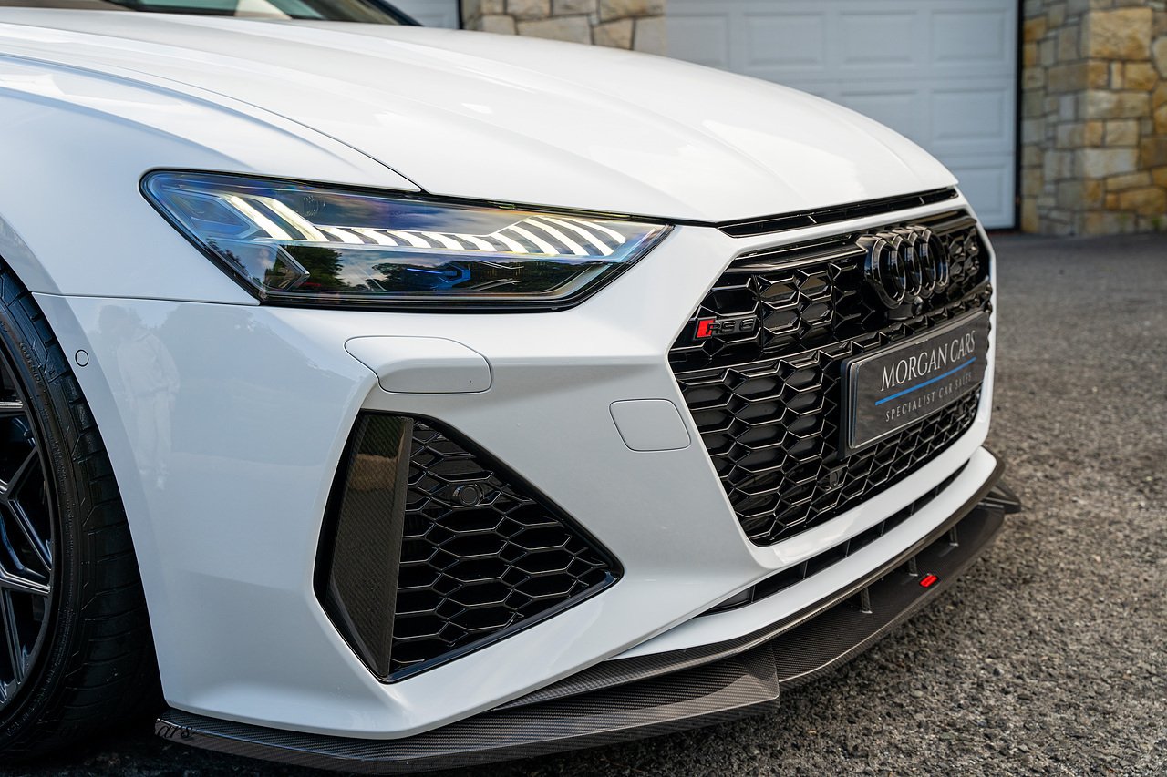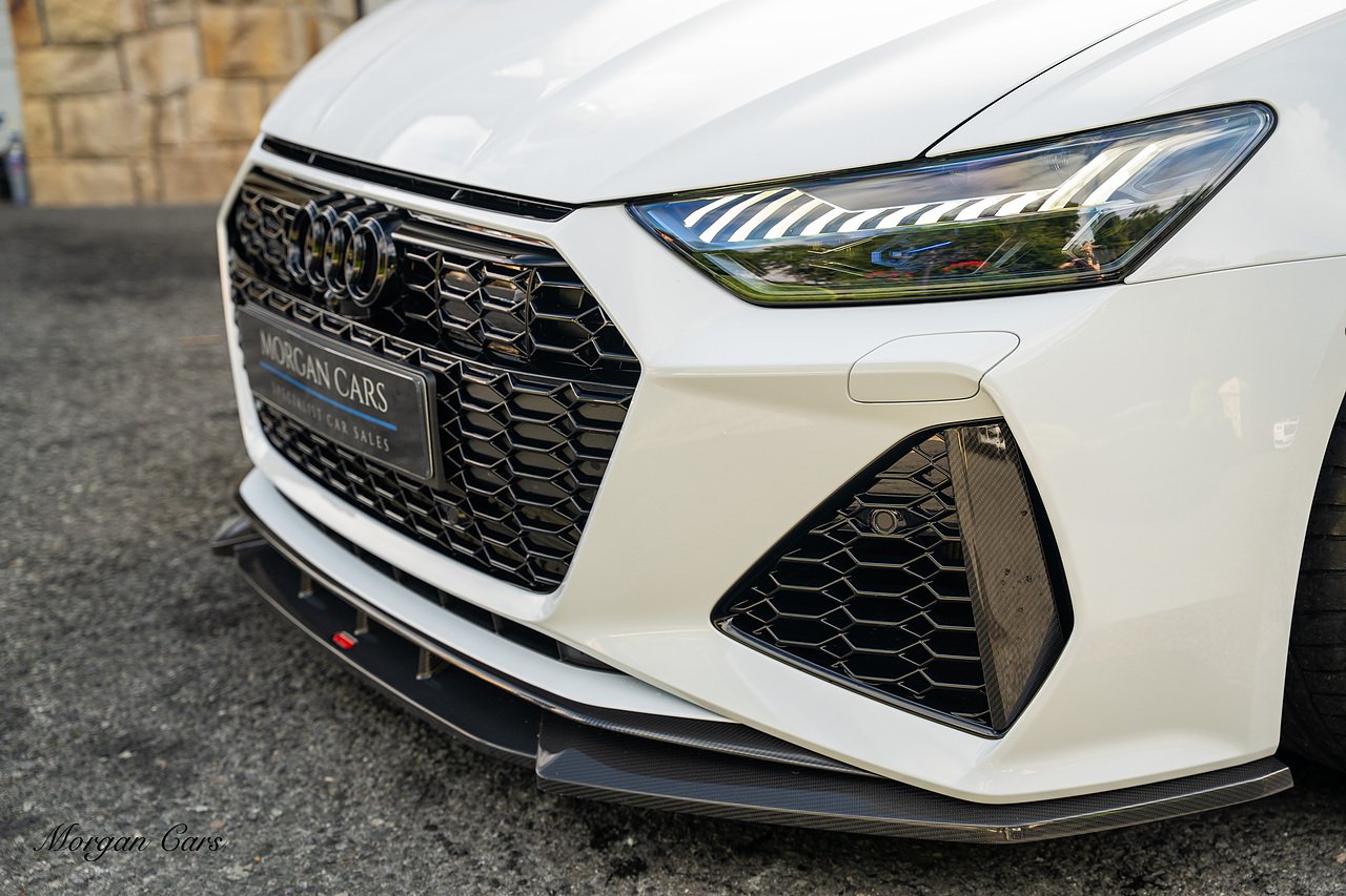 Morgan Cars are proud to present this Beautiful Audi RS6 Avant Performance Carbon Black Finished in Glacier White | This RS6 Carbon Black Performance has Undergone a Exterior Styling Conversion by Urban Automotive consisting of Front Splitter in Carbon Fibre, Side Extensions in Carbon Fibre, Rear Diffuser in Carbon Fibre and Roof and tailgate mounted spoilers in Carbon Fibre | 22" Vossen hybrid forged alloy wheels in Satin Black| Comfort and Sound Package with Bang & Olufson 3D Surround sound system | Milltek Performance Cat Back exhaust system | Surround View Camera system | Adaptive RS Air Suspension system | RS Design Package Plus Interior with Contrast red Elements | Carbon Twill Interior package | RS Supersports seats with heat and Ventilation Function | Suede RS Multifunction steering wheel | Extended Nappa leather interior with Suede Roof headlining | LED Ambient interior lighting pack | Audi Virtual Cockpit plus.