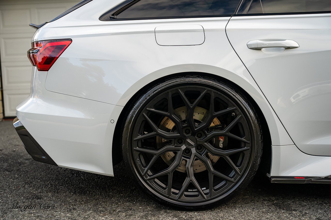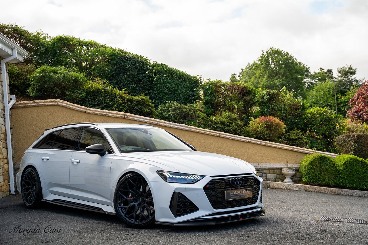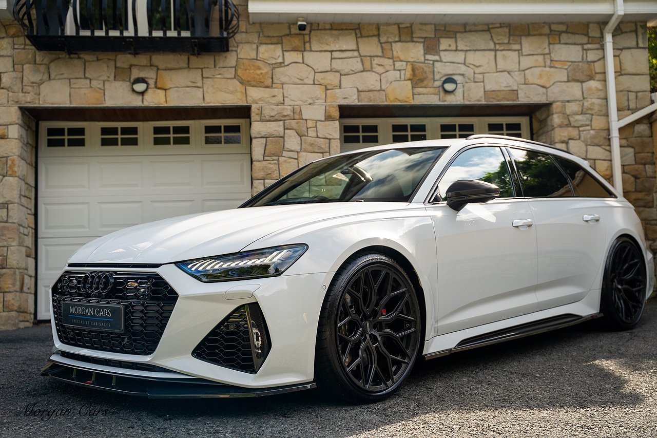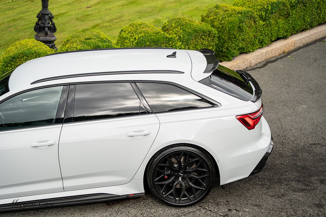 Morgan Cars are proud to present this Beautiful Audi RS6 Avant Performance Carbon Black Finished in Glacier White | This RS6 Carbon Black Performance has Undergone a Exterior Styling Conversion by Urban Automotive consisting of Front Splitter in Carbon Fibre, Side Extensions in Carbon Fibre, Rear Diffuser in Carbon Fibre and Roof and tailgate mounted spoilers in Carbon Fibre | 22" Vossen hybrid forged alloy wheels in Satin Black| Comfort and Sound Package with Bang & Olufson 3D Surround sound system | Milltek Performance Cat Back exhaust system | Surround View Camera system | Adaptive RS Air Suspension system | RS Design Package Plus Interior with Contrast red Elements | Carbon Twill Interior package | RS Supersports seats with heat and Ventilation Function | Suede RS Multifunction steering wheel | Extended Nappa leather interior with Suede Roof headlining | LED Ambient interior lighting pack | Audi Virtual Cockpit plus.