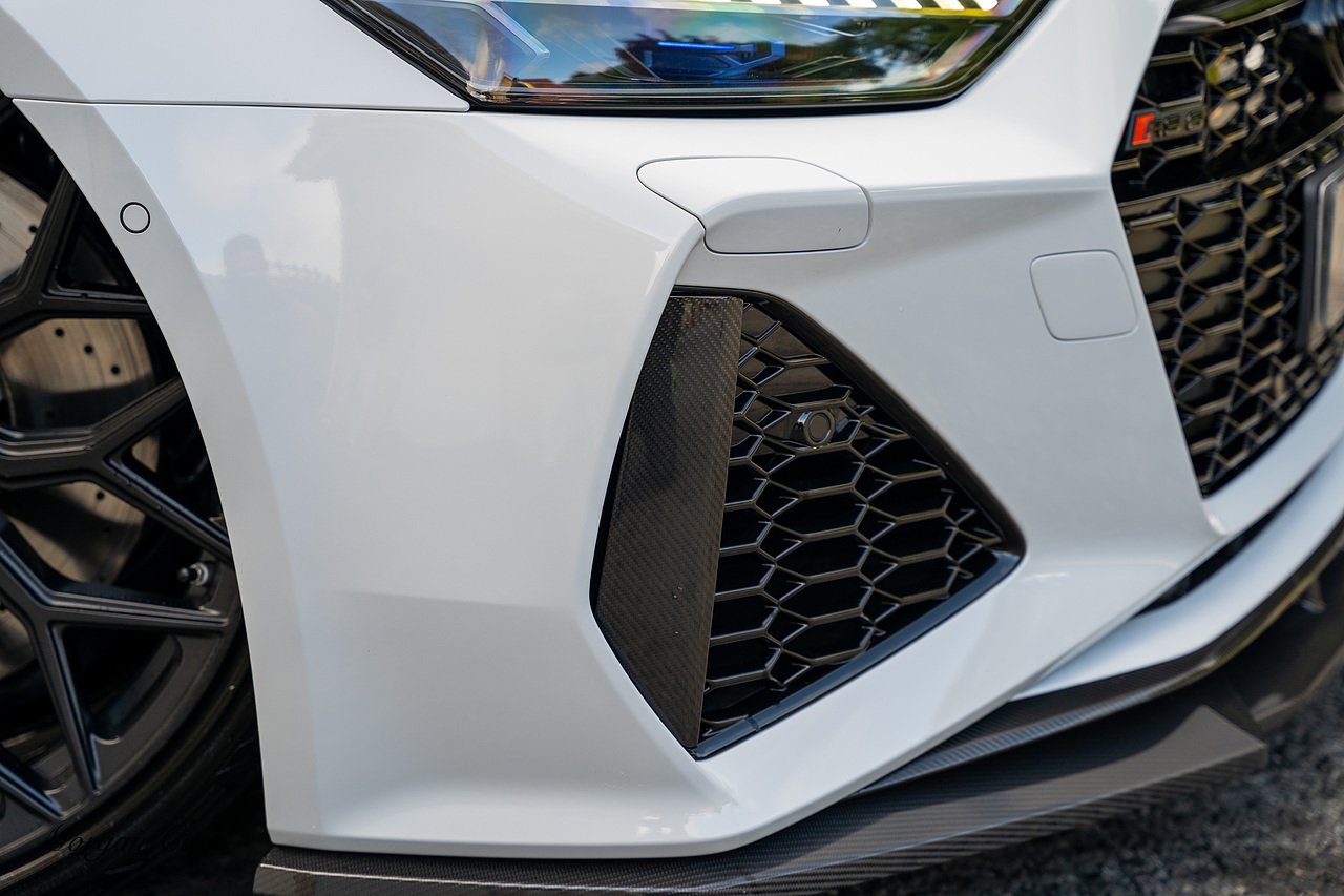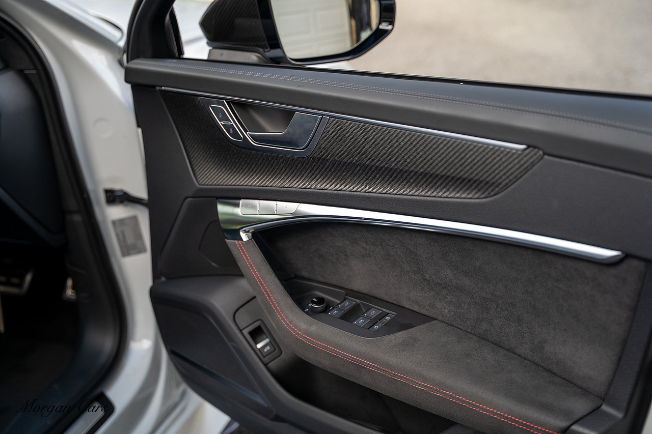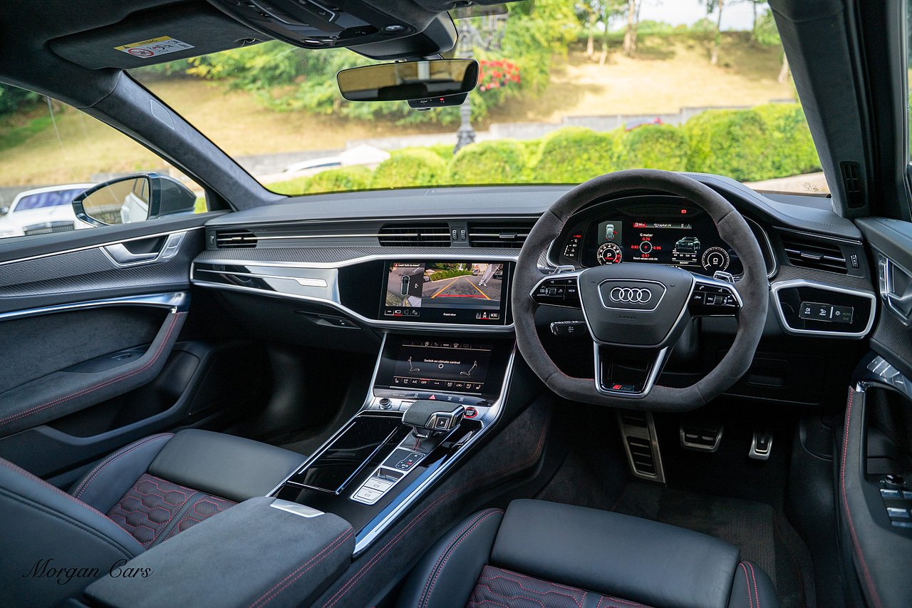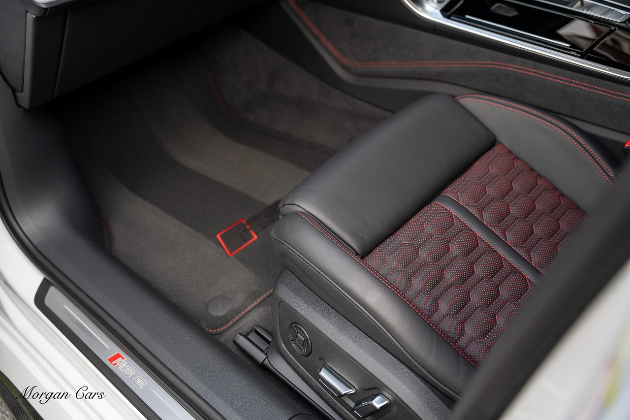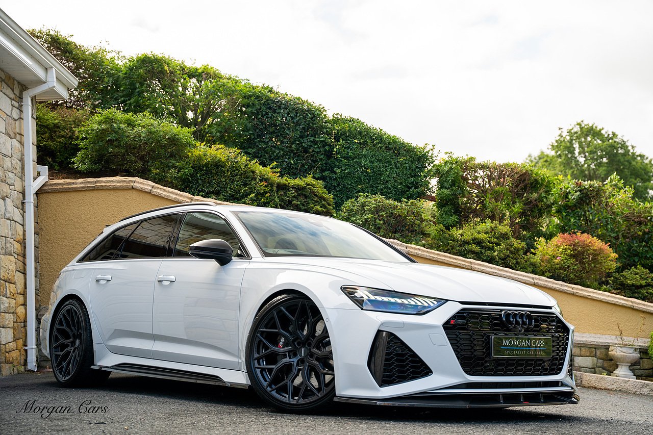 Morgan Cars are proud to present this Beautiful Audi RS6 Avant Performance Carbon Black Finished in Glacier White | This RS6 Carbon Black Performance has Undergone a Exterior Styling Conversion by Urban Automotive consisting of Front Splitter in Carbon Fibre, Side Extensions in Carbon Fibre, Rear Diffuser in Carbon Fibre and Roof and tailgate mounted spoilers in Carbon Fibre | 22" Vossen hybrid forged alloy wheels in Satin Black| Comfort and Sound Package with Bang & Olufson 3D Surround sound system | Milltek Performance Cat Back exhaust system | Surround View Camera system | Adaptive RS Air Suspension system | RS Design Package Plus Interior with Contrast red Elements | Carbon Twill Interior package | RS Supersports seats with heat and Ventilation Function | Suede RS Multifunction steering wheel | Extended Nappa leather interior with Suede Roof headlining | LED Ambient interior lighting pack | Audi Virtual Cockpit plus.