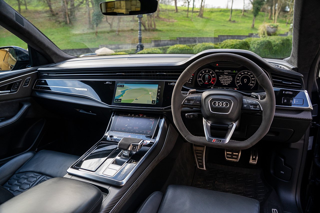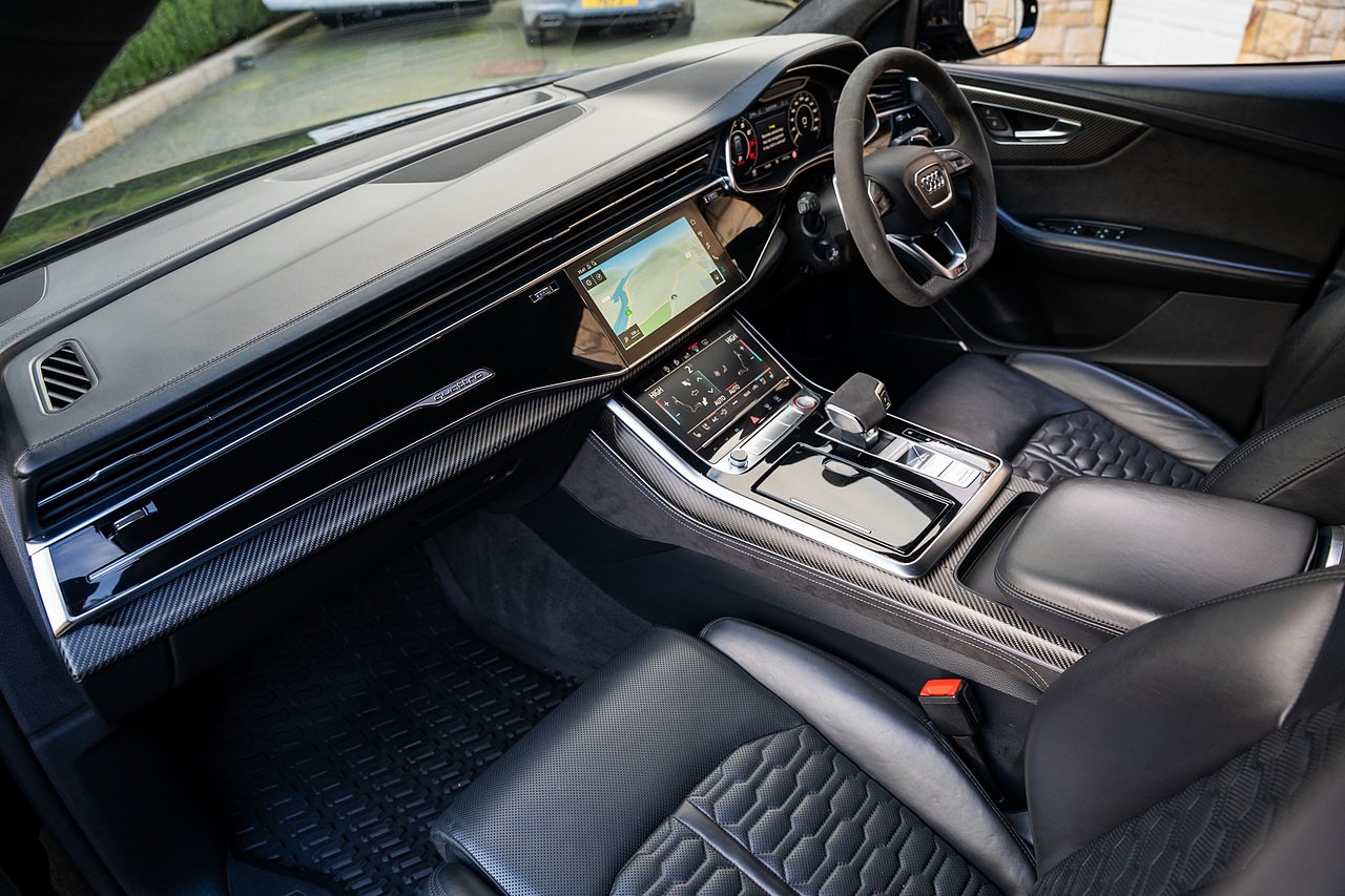This RSQ8 Vorsprung features a Full Urban Automotive Conversion Consisting of Carbon Fibre Front Splitter and Carbon Fibre Bumper grill Surrounds, Carbon Fibre Side Extensions with Rear Bumper extensions, Carbon Fibre boot and Top spoiler with Red Urban Oval logo. Completed with Urban 24" HF-5 Alloy wheels In Gloss Black. Being a Vorsprung Model this example is Full Of Optional Specification which includes, Panoramic glass tilt and slide Panoramic glass sunroof Rear Electric Visibility Blinds, Top View 3d surround sound camera, Bang & Olufson Advanced 3D Sound system, Heated and Ventilated seats with massage function, Privacy Rear Glass, Suede heated multifunction steering wheel, Virtual Cockpit Plus, Matrix LED Headlights.