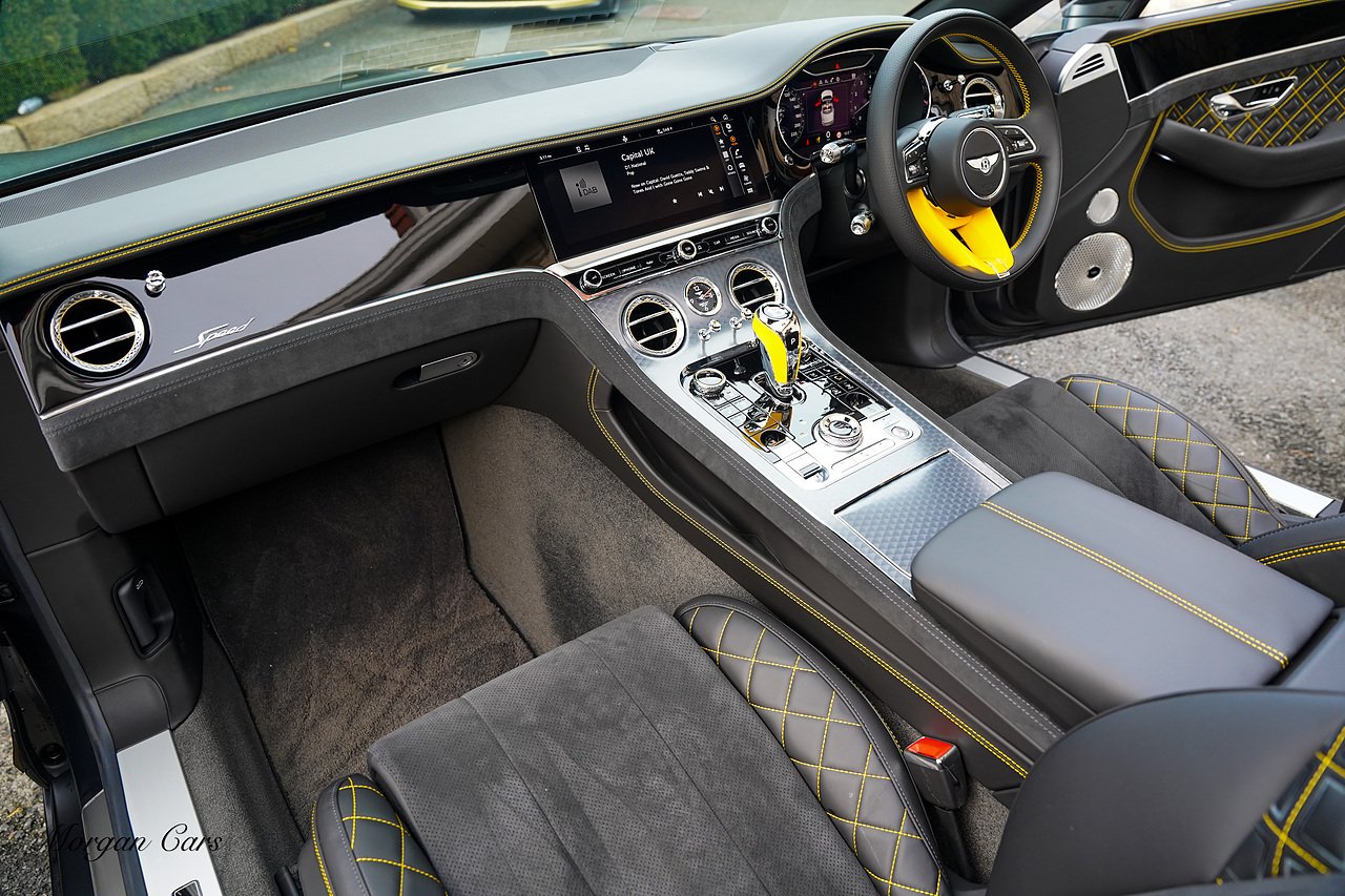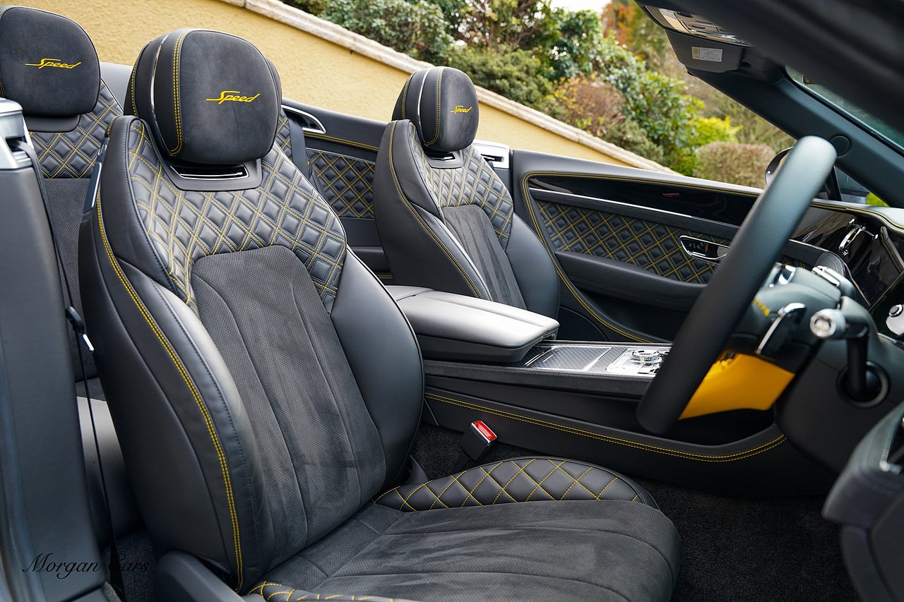 Morgan Cars are proud to present Our Bentley Continental 6.0 W12 GTC Speed, Finished in Anthracite Satin by Mulliner with Beluga leather and suede Interior with contrasting Yellow elements throughout and stitching with Piano Black Trim.