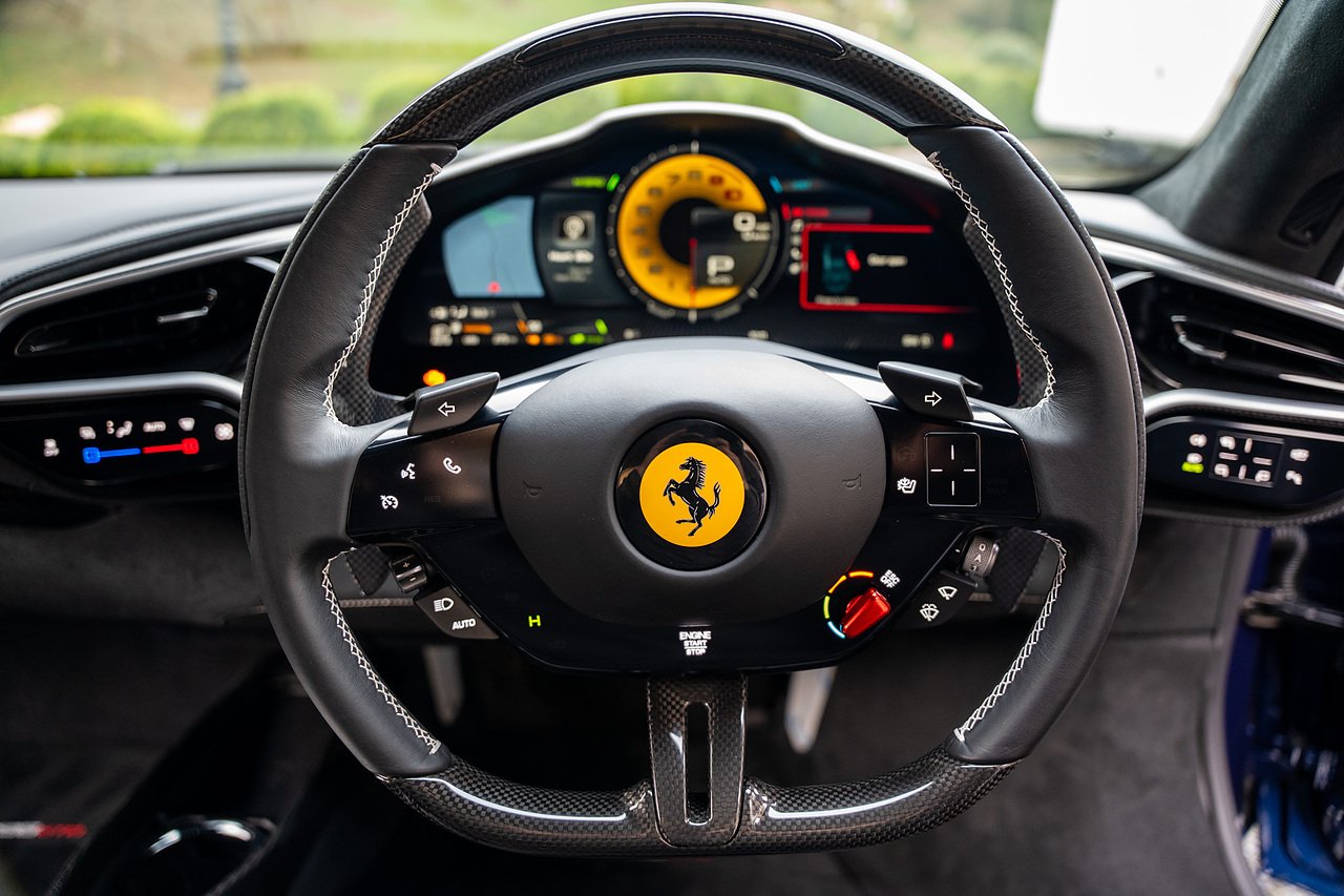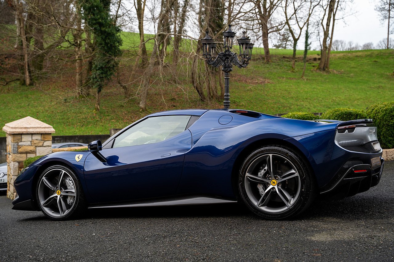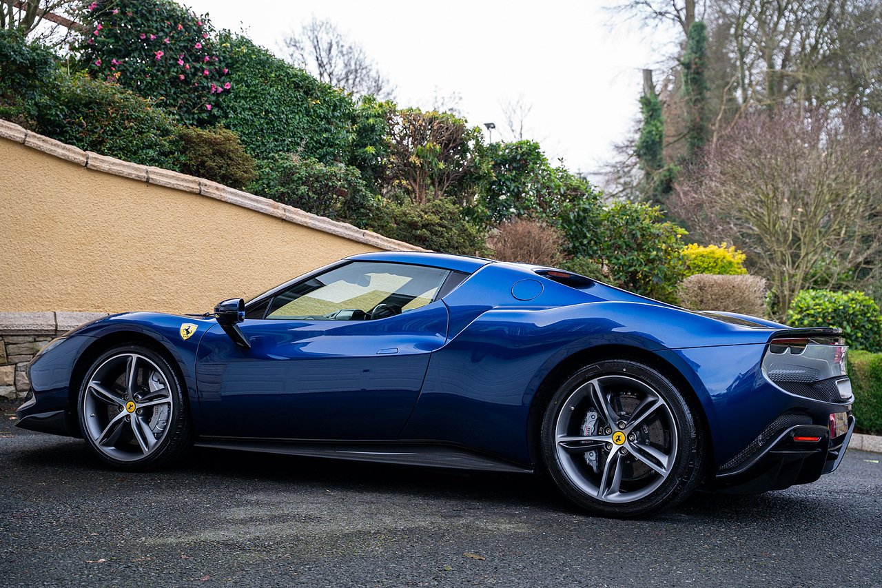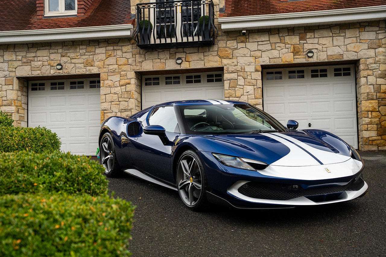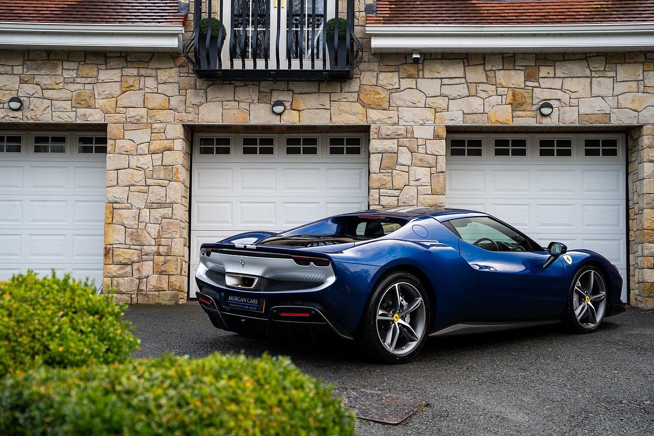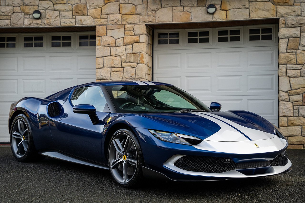Massive Spec Ferrari 296 GTB listed to £400k in December 2025 and now representing massive savings from new, this 296 is finished in Tour De France Blue metallic with contrasting Argento Nurburgring factory painted stripe and full Body PPF fitted by Topaz detailing, Fitted with the rare and Special Extended Assetto Fiorano Package which includes fixed multimatic dampers, front lip spoiler in carbon fibre, side sills in carbon fibre, carbon fibre engine cover, rear extendable spoiler in carbon fibre, matt carbon fibre inner door panels with carbon fibre sill plate, carbon fibre rear bench and tunnel, Size Large Carbon Fibre Racing seats with Harnesses, Carbon Fibre driving zone with led's, Heads Up Display, Apple Carplay, JBL Premium hifi system, Racing Seat lifter, Lexan glass and Carbon fibre engine cover, Scuderia Fender Shields, Argento Painted brake Calipers.