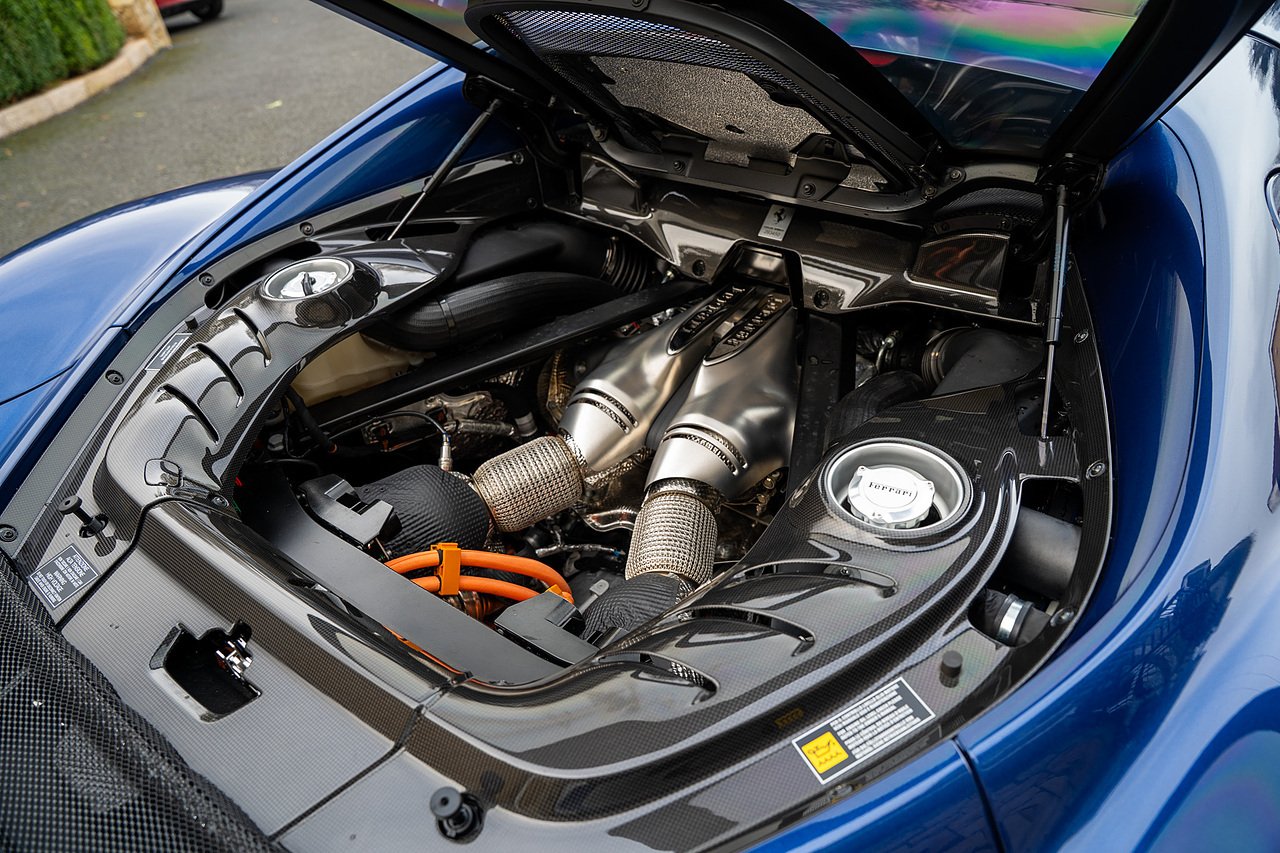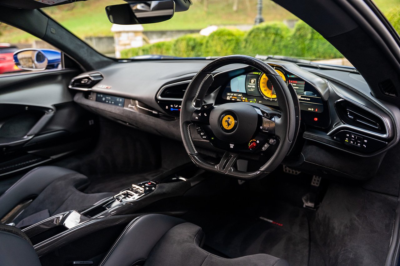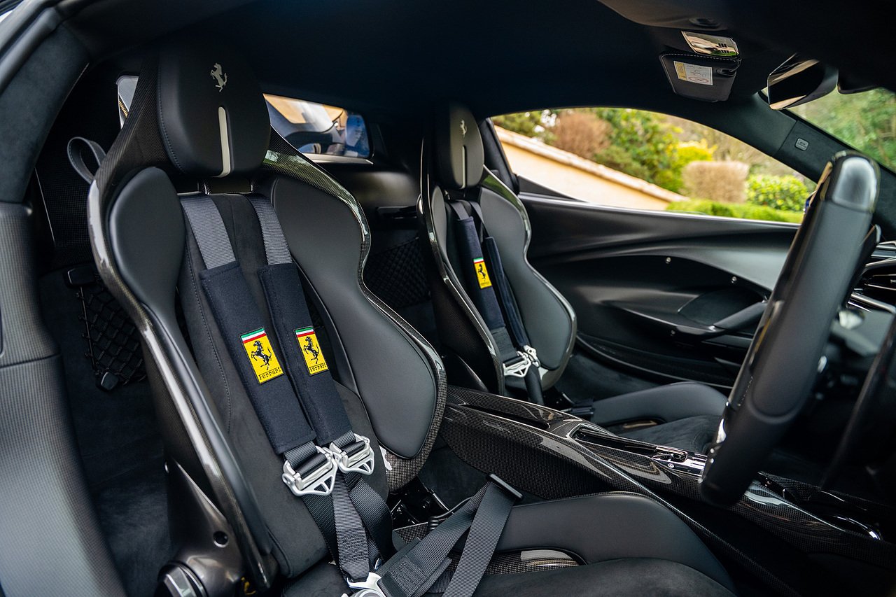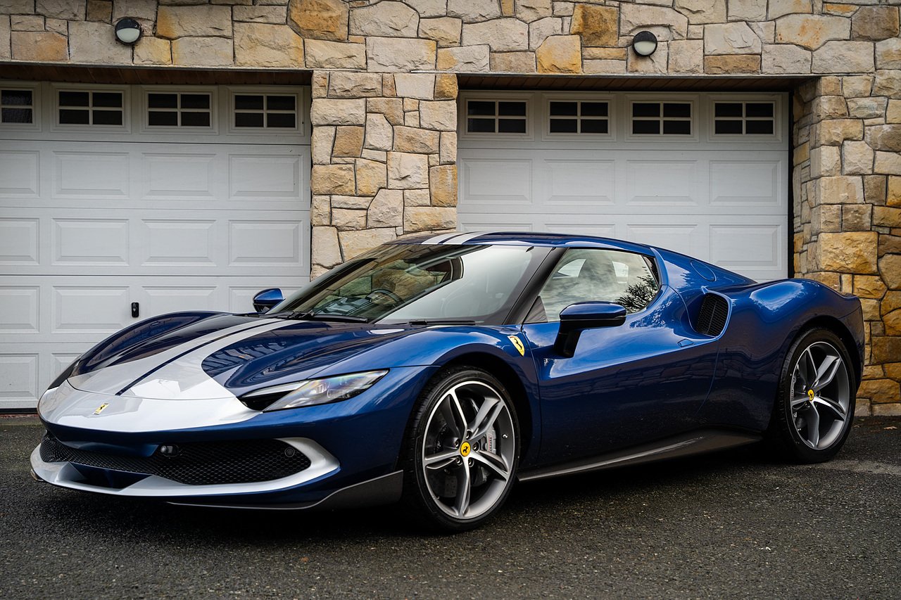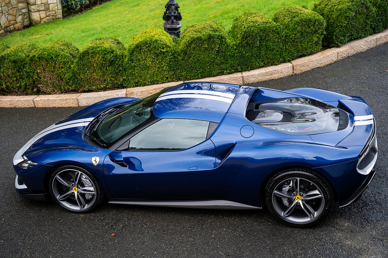 Massive Spec Ferrari 296 GTB listed to £400k in December 2025 and now representing massive savings from new, this 296 is finished in Tour De France Blue metallic with contrasting Argento Nurburgring factory painted stripe and full Body PPF fitted by Topaz detailing, Fitted with the rare and Special Extended Assetto Fiorano Package which includes fixed multimatic dampers, front lip spoiler in carbon fibre, side sills in carbon fibre, carbon fibre engine cover, rear extendable spoiler in carbon fibre, matt carbon fibre inner door panels with carbon fibre sill plate, carbon fibre rear bench and tunnel, Size Large Carbon Fibre Racing seats with Harnesses, Carbon Fibre driving zone with led's, Heads Up Display, Apple Carplay, JBL Premium hifi system, Racing Seat lifter, Lexan glass and Carbon fibre engine cover, Scuderia Fender Shields, Argento Painted brake Calipers.