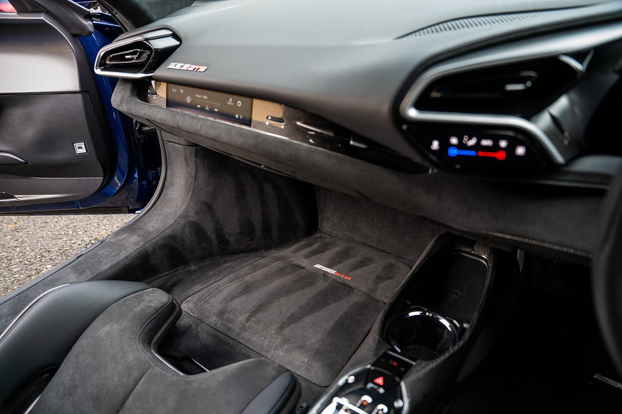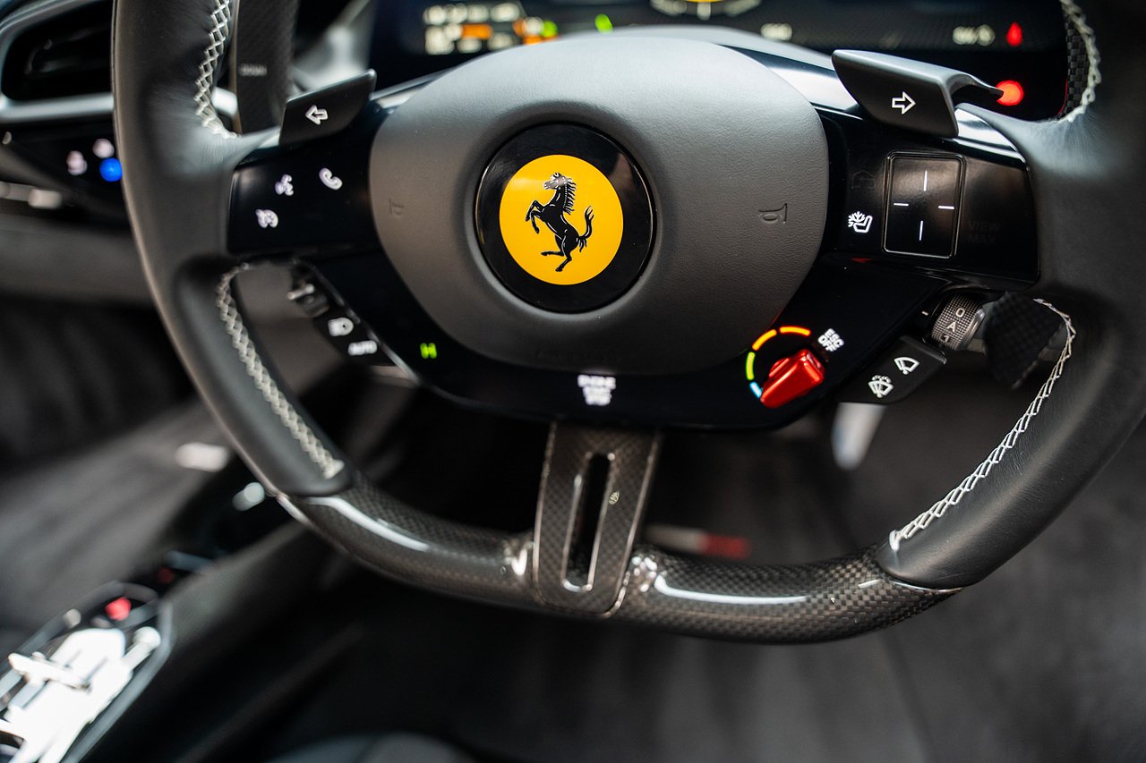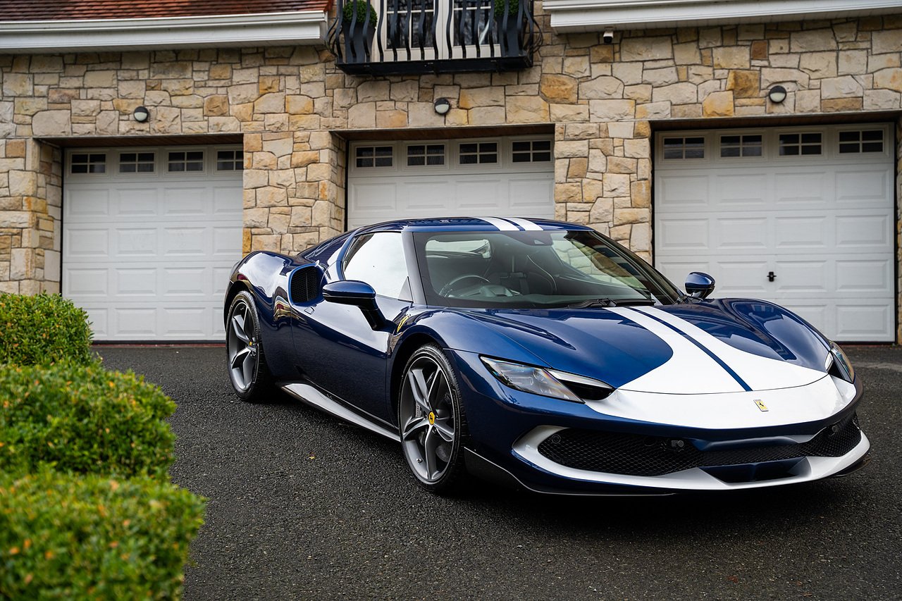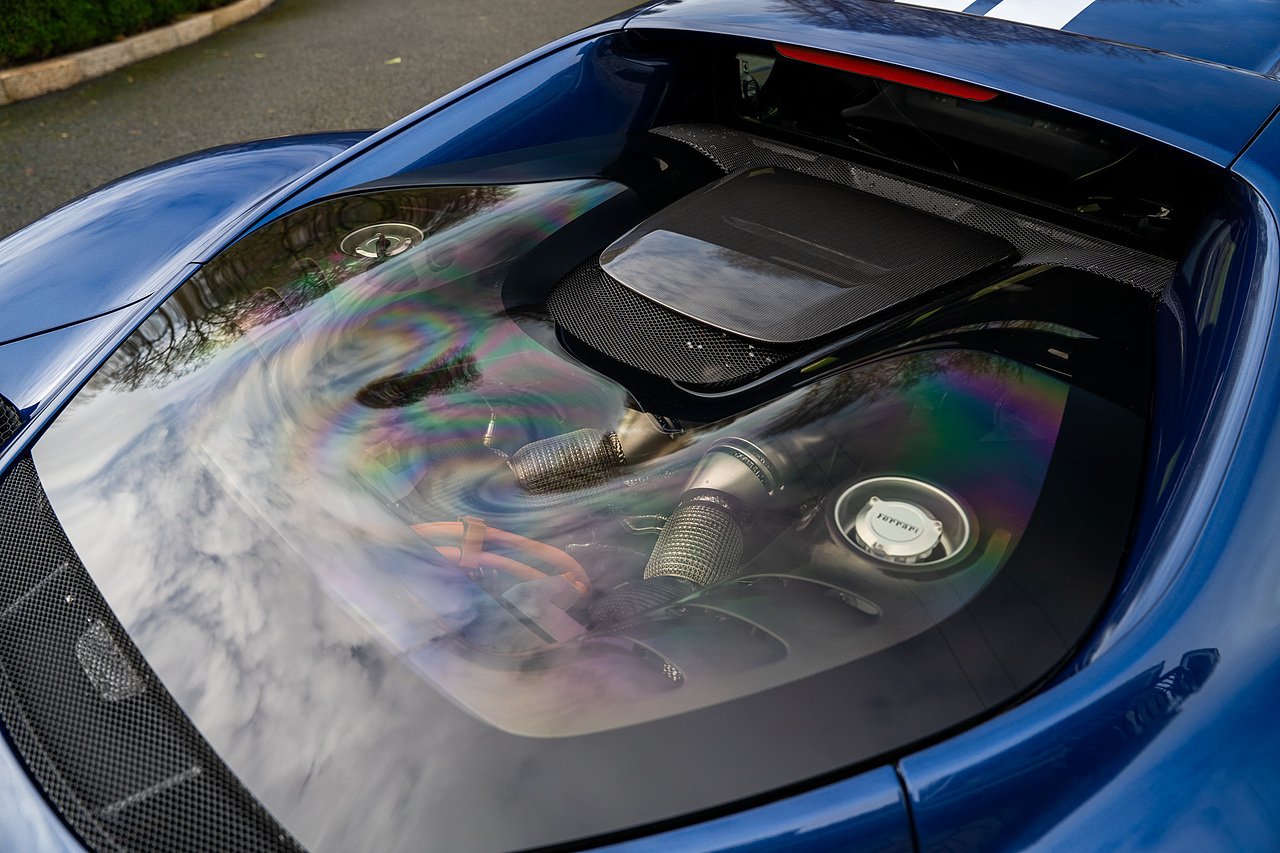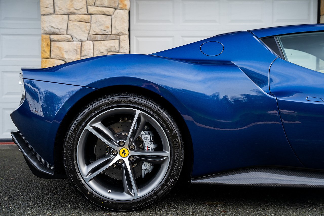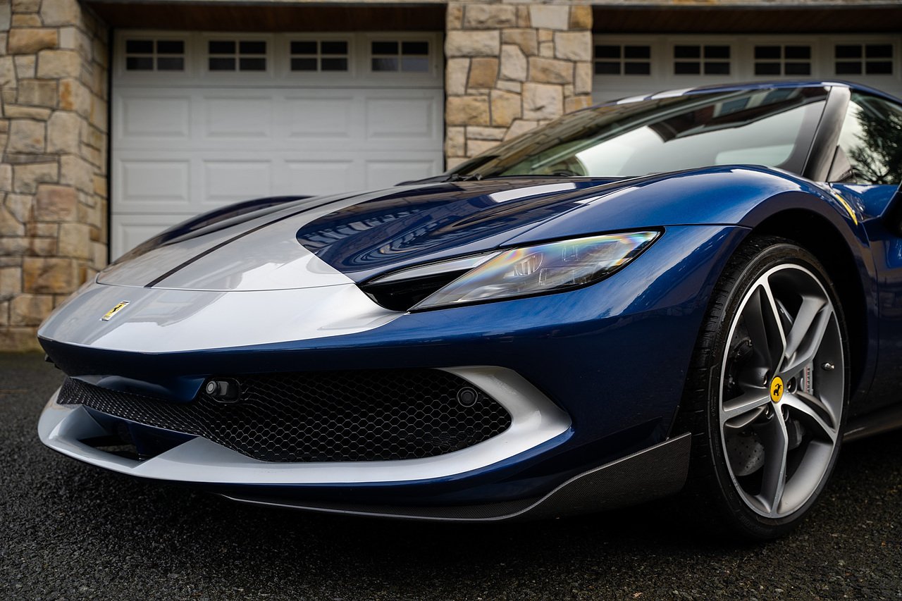 Massive Spec Ferrari 296 GTB listed to £400k in December 2025 and now representing massive savings from new, this 296 is finished in Tour De France Blue metallic with contrasting Argento Nurburgring factory painted stripe and full Body PPF fitted by Topaz detailing, Fitted with the rare and Special Extended Assetto Fiorano Package which includes fixed multimatic dampers, front lip spoiler in carbon fibre, side sills in carbon fibre, carbon fibre engine cover, rear extendable spoiler in carbon fibre, matt carbon fibre inner door panels with carbon fibre sill plate, carbon fibre rear bench and tunnel, Size Large Carbon Fibre Racing seats with Harnesses, Carbon Fibre driving zone with led's, Heads Up Display, Apple Carplay, JBL Premium hifi system, Racing Seat lifter, Lexan glass and Carbon fibre engine cover, Scuderia Fender Shields, Argento Painted brake Calipers.