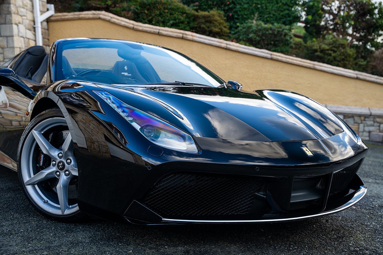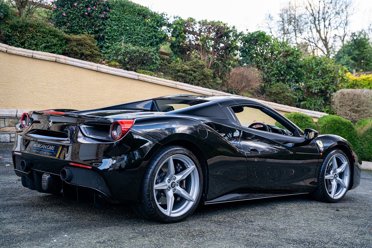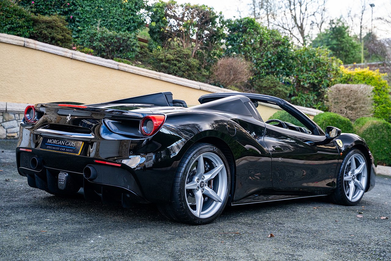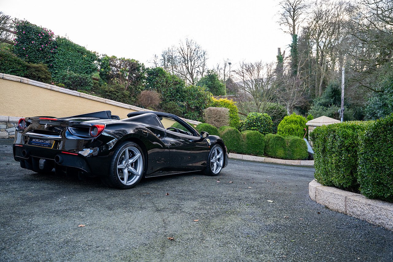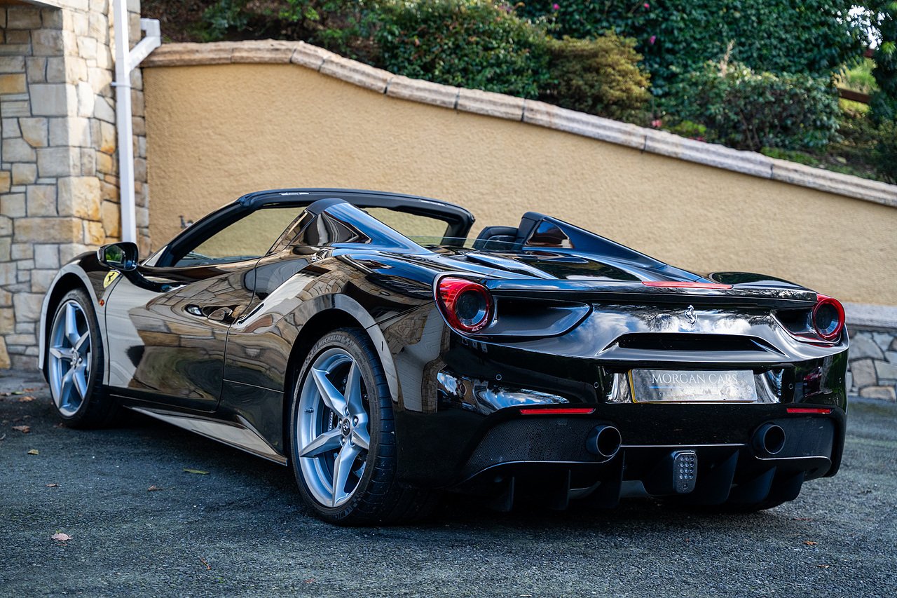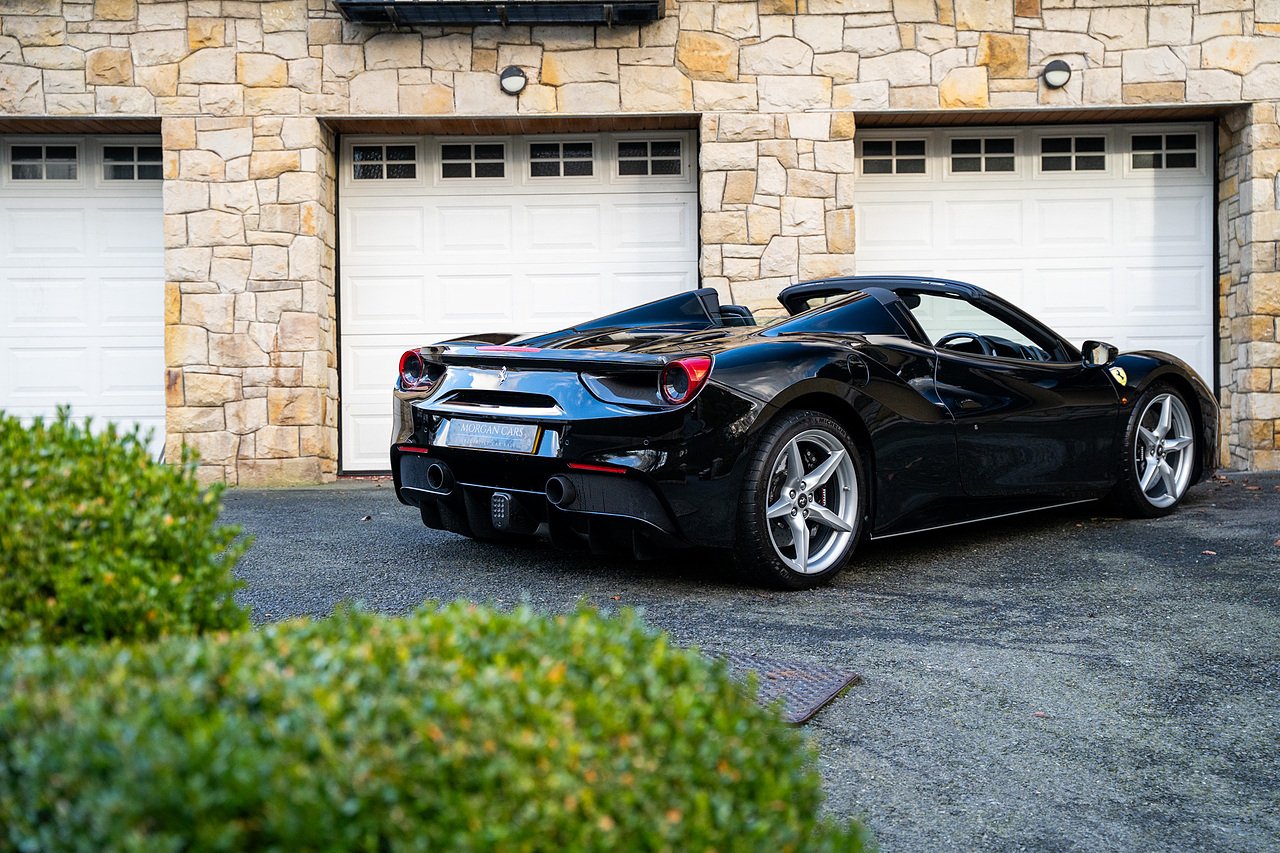 Morgan Cars are proud to present our Ferrari 488 Spider, Finished in the Rare and Beautiful Nero B/B 1250 which is a solid Special order black colour more commonly found on Ferraris Rarer models including the Laferrari and Scuderia 16M with Full Body PPF and Contrasting Nero Nappa Leather Interior and Grigio Chiaro Stitching.