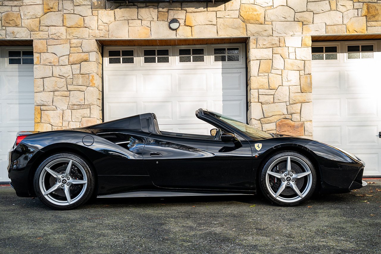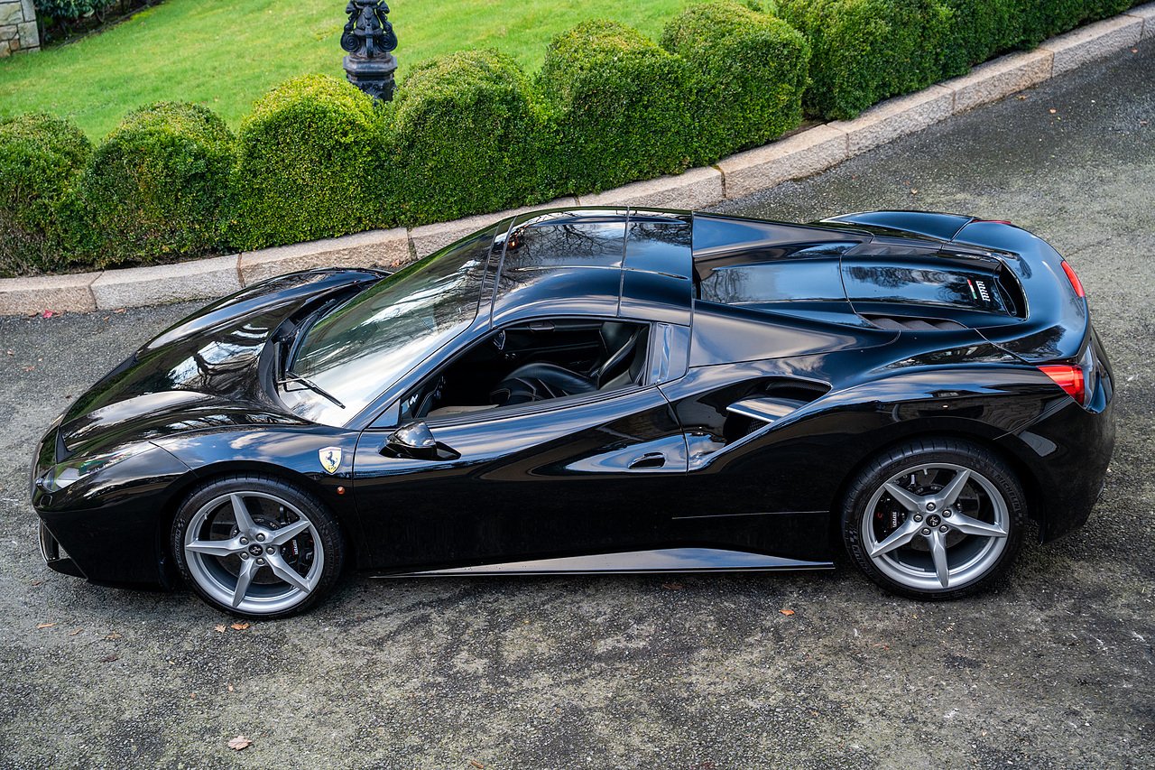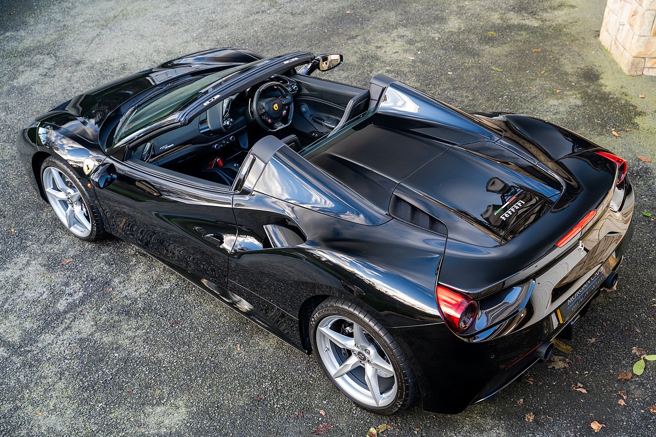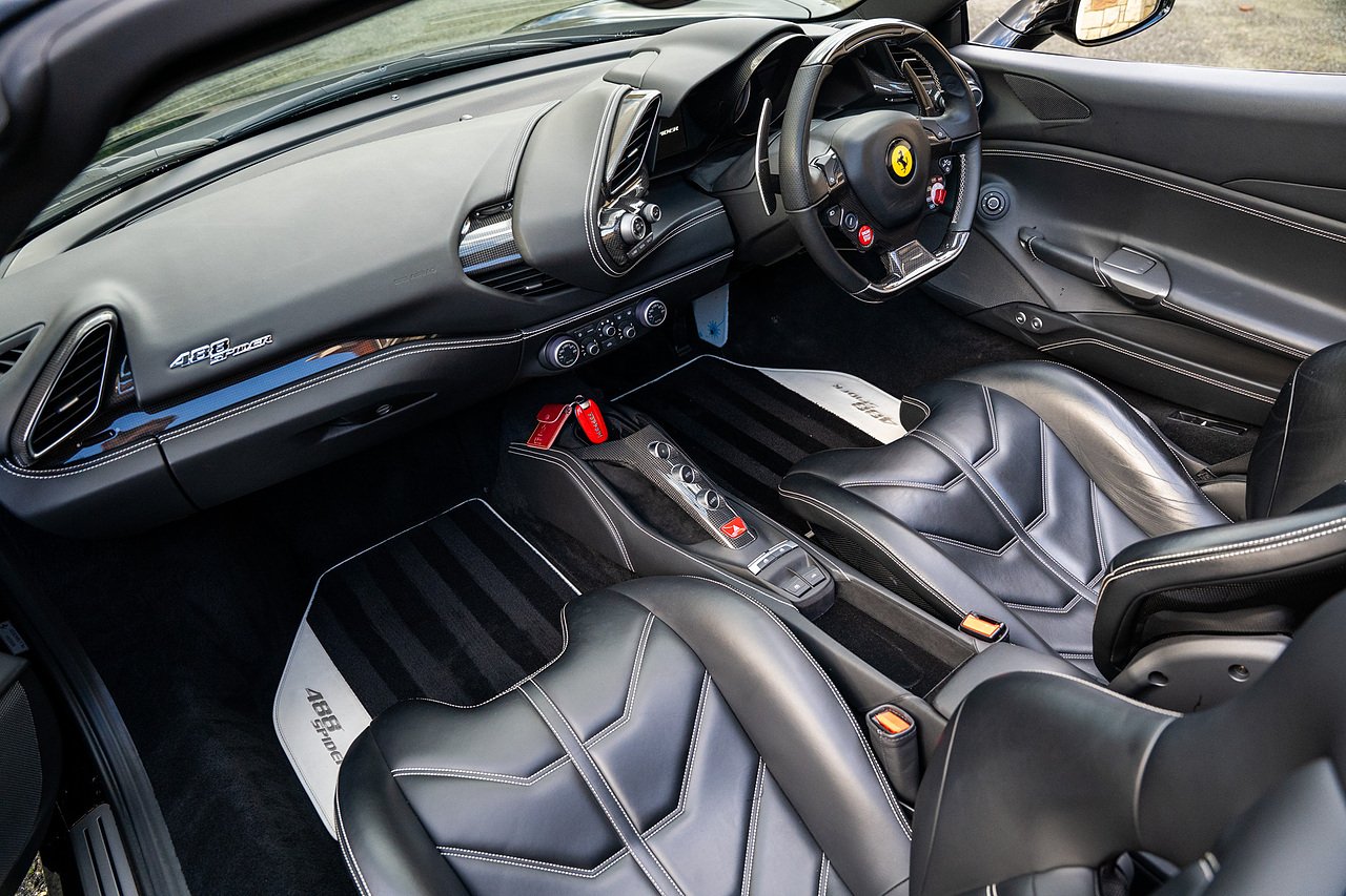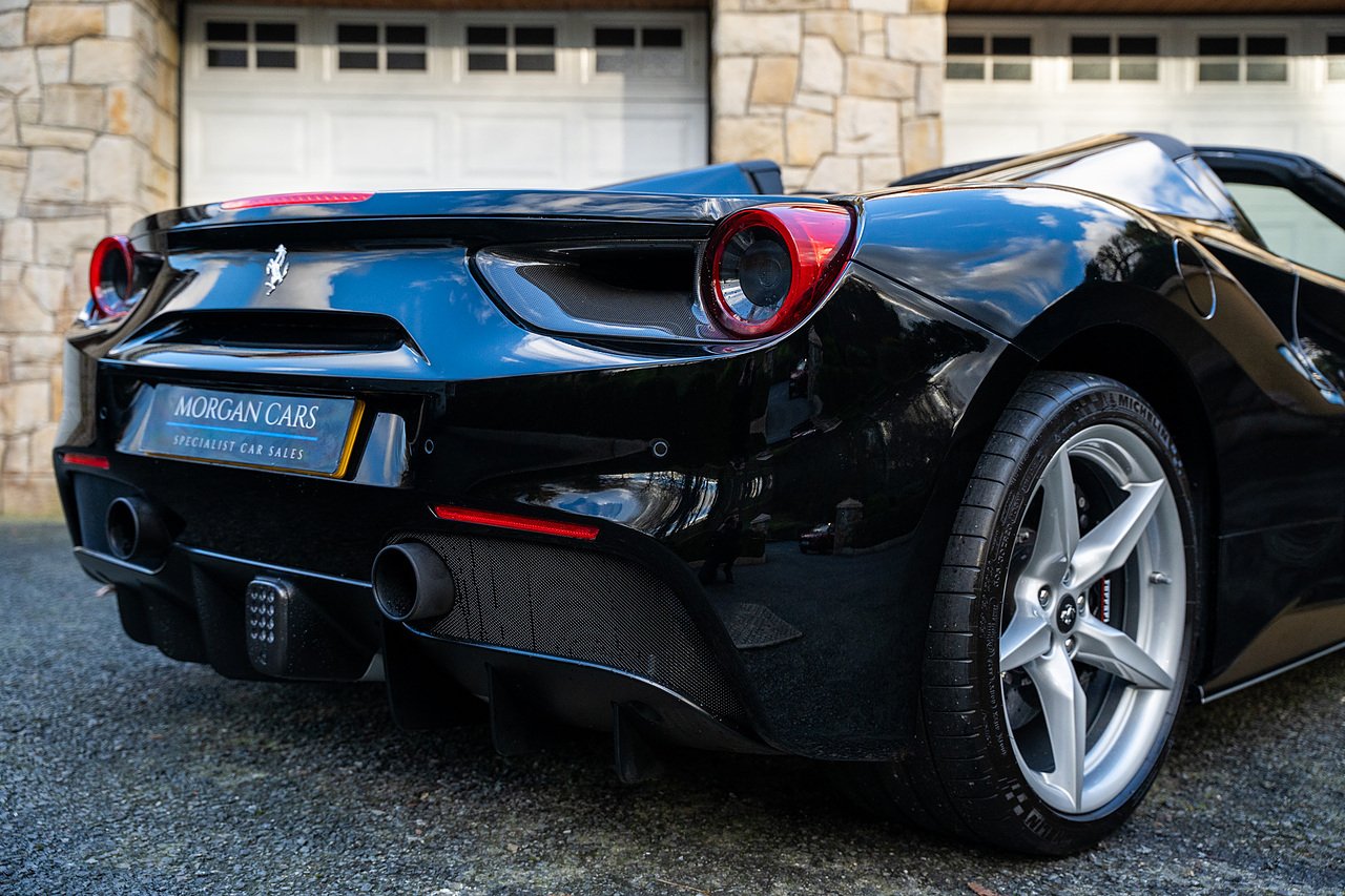 Morgan Cars are proud to present our Ferrari 488 Spider, Finished in the Rare and Beautiful Nero B/B 1250 which is a solid Special order black colour more commonly found on Ferraris Rarer models including the Laferrari and Scuderia 16M with Full Body PPF and Contrasting Nero Nappa Leather Interior and Grigio Chiaro Stitching.