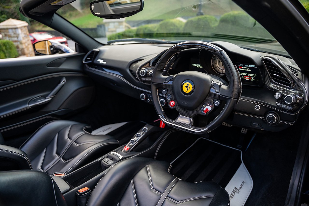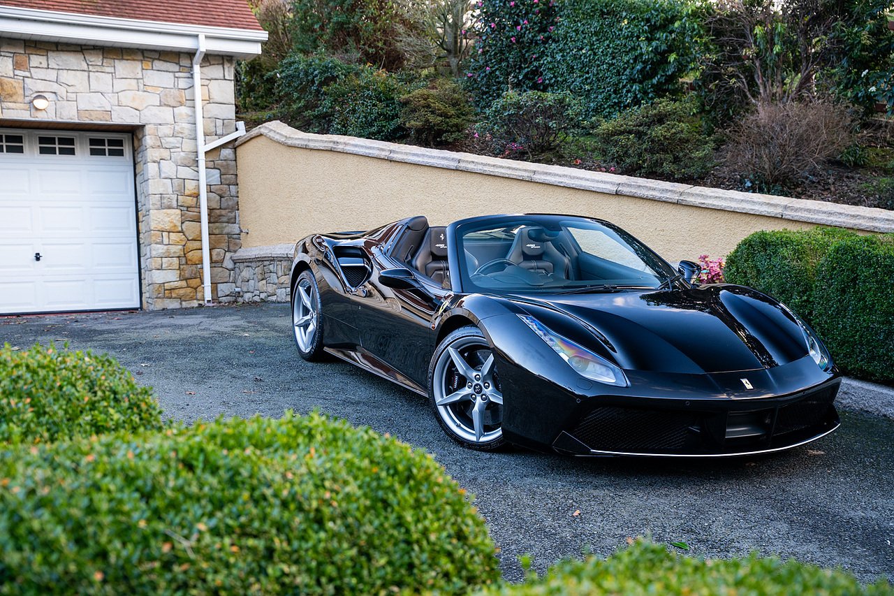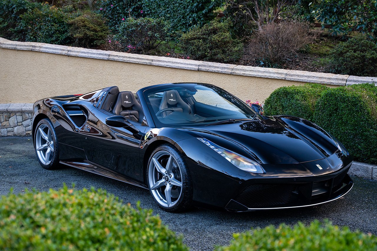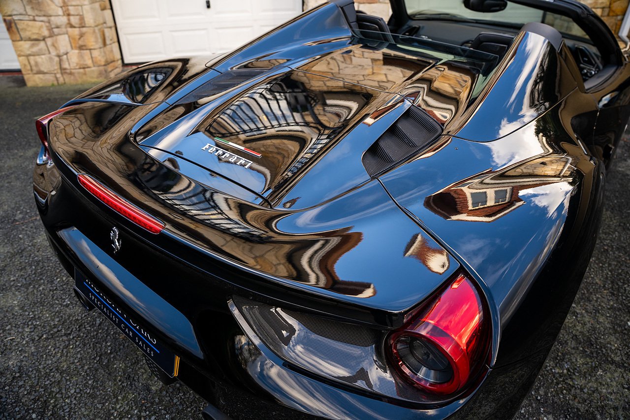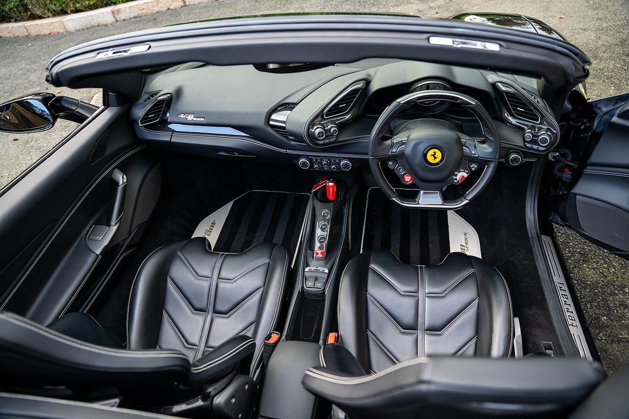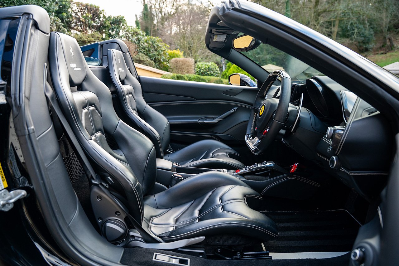 Morgan Cars are proud to present our Ferrari 488 Spider, Finished in the Rare and Beautiful Nero B/B 1250 which is a solid Special order black colour more commonly found on Ferraris Rarer models including the Laferrari and Scuderia 16M with Full Body PPF and Contrasting Nero Nappa Leather Interior and Grigio Chiaro Stitching.