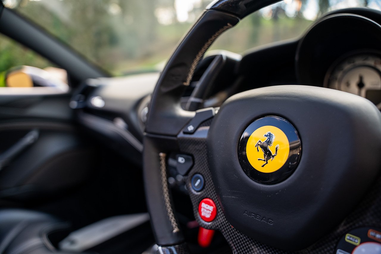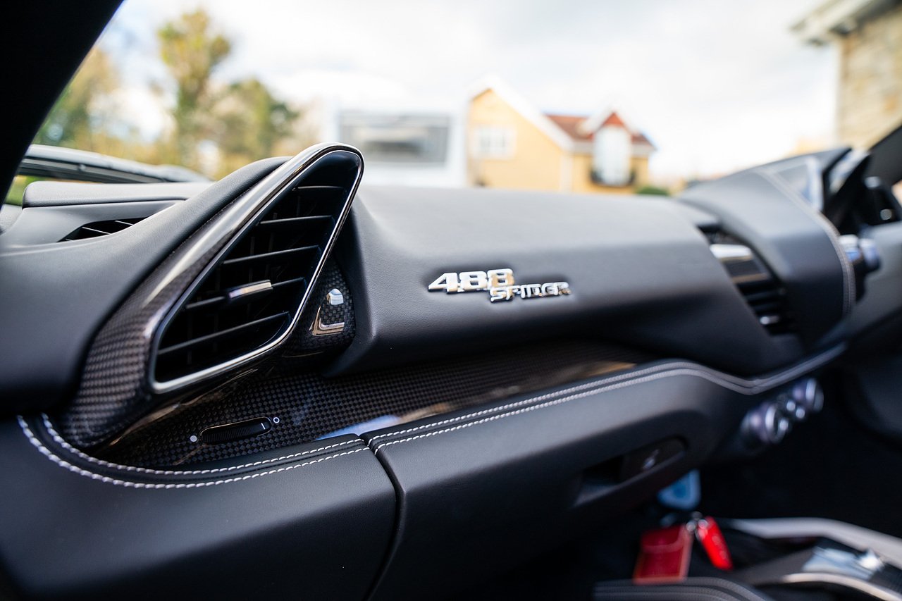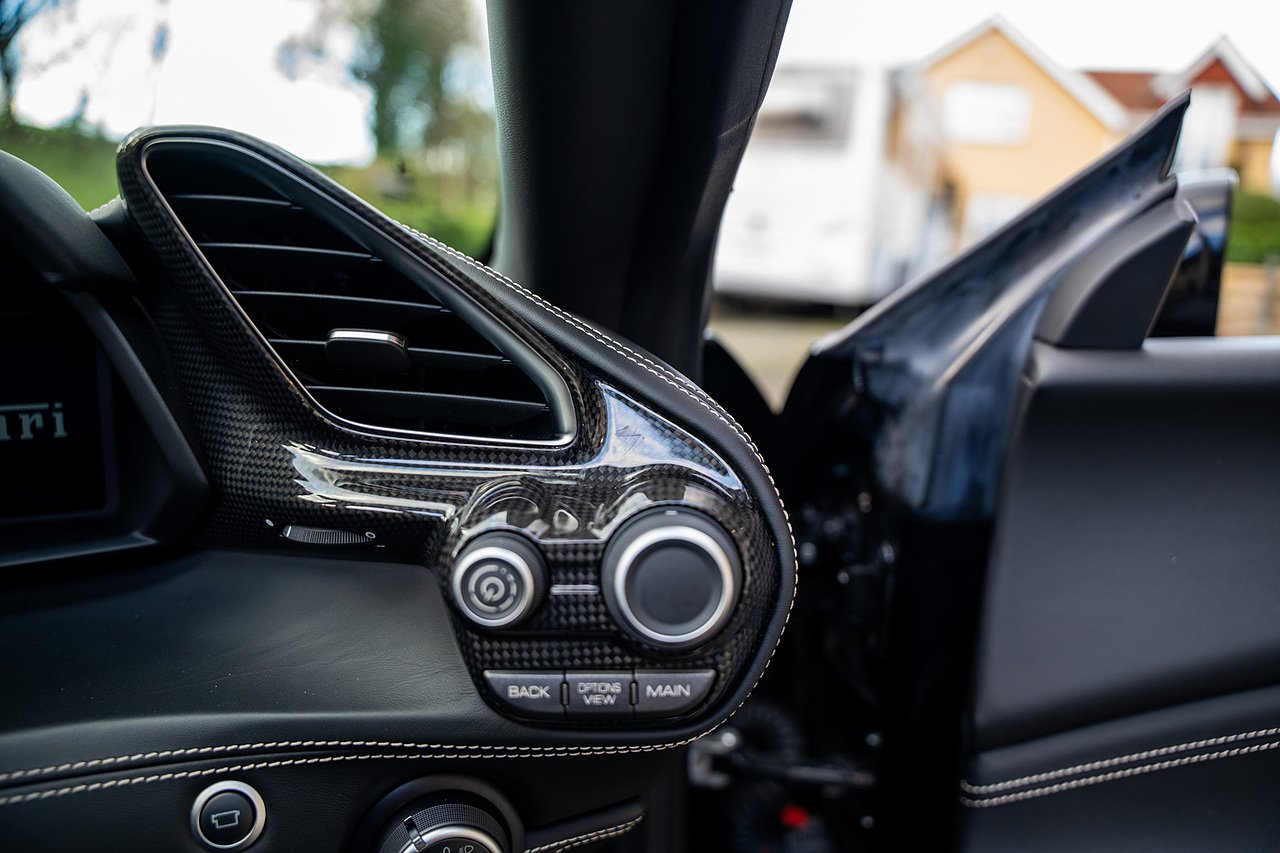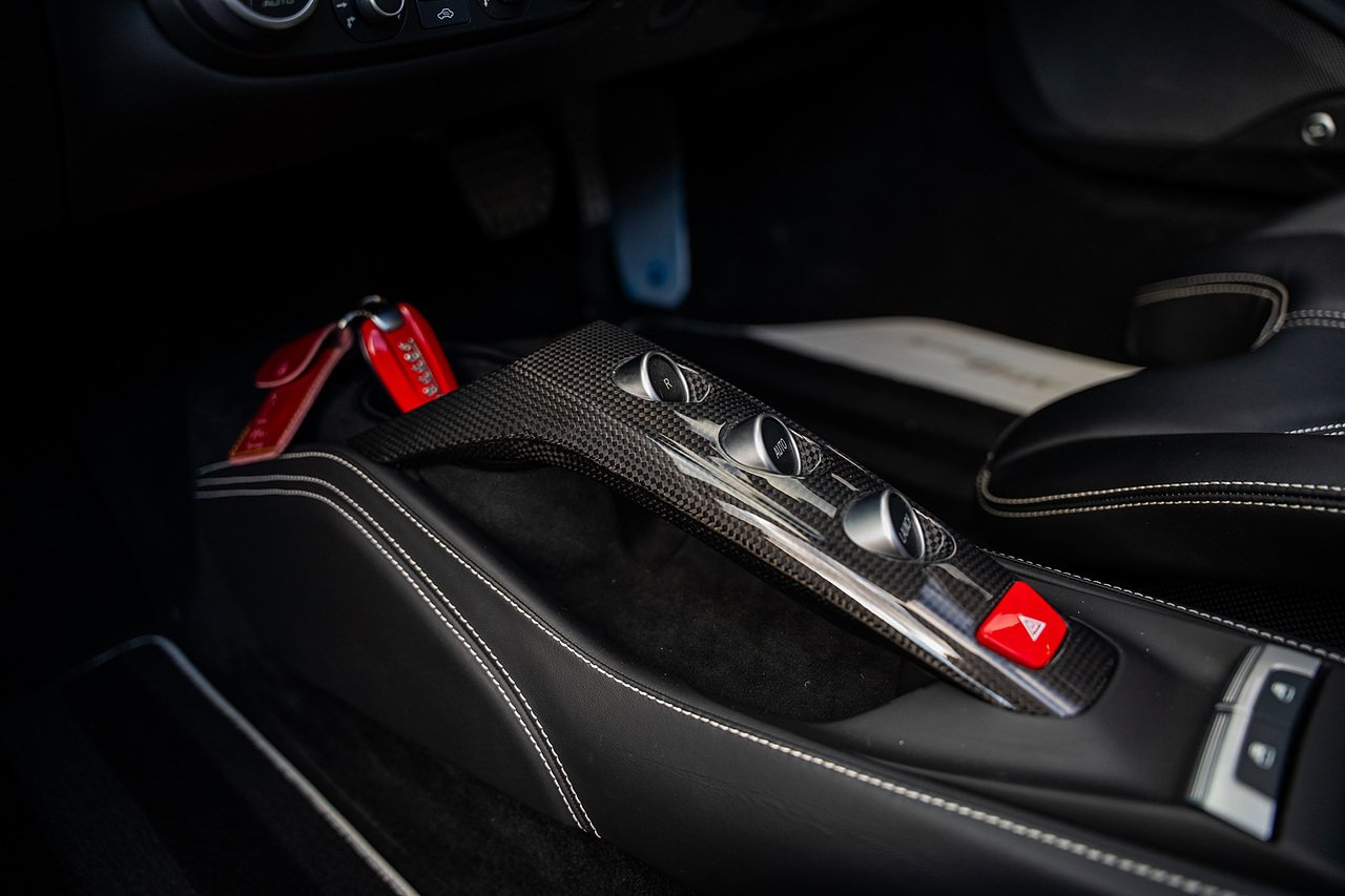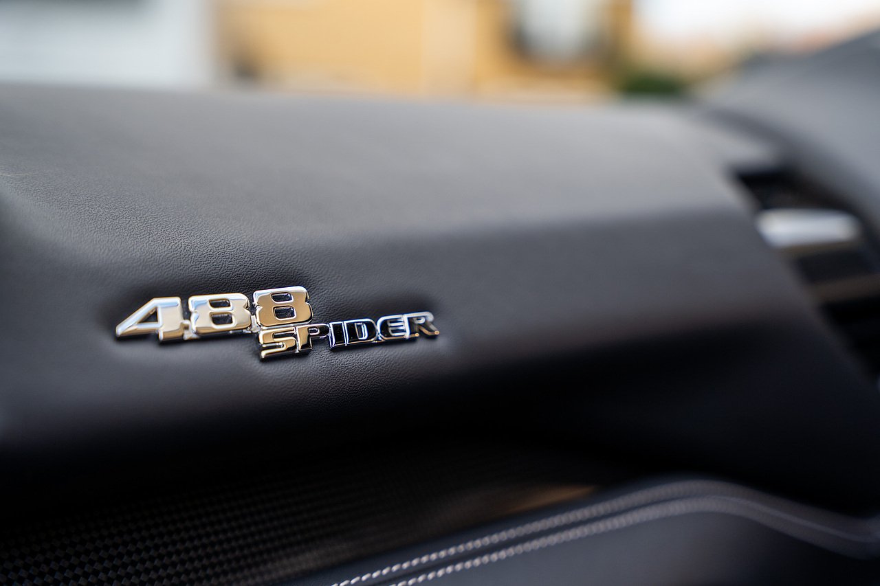 The Specification of this example includes Ultra Rare Gloss Silver Dream Line Elements throughout the Front Lower Splitter, Side Extension and side Vents in Argento Nurburgring as well as '488 Spider Headrest Logo Stitched in Grigio Chiaro Thread. Also the Example in Full of optional extra equipment and details including Carbon Fibre extras including the Rear Tail Light Surrounds, Fog light Surround, Rear Air Ducks, As well as the Interior Central Bridge and Trim Elements, Carbon Fibre Racing Package including the Carbon Goldrake Racing Carbon Daytona Seats (Large), Sports Exhaust System, Carbon Fibre Wheel Center, Additional Coloured and Stitched 488 Floor Mats Grigio Chiaro Thread, Scuderia Ferrari Shields, Electronic Mirrors, Rear Reversing Camera, Front and Rear Parking Sensors, Rear Italian Flag On Engine Compartment, Aluminium Rev Counter, Racing Seat Lifter, DAB Radio. See Plaque For Full Additional extras or feel free to get in touch for more.
