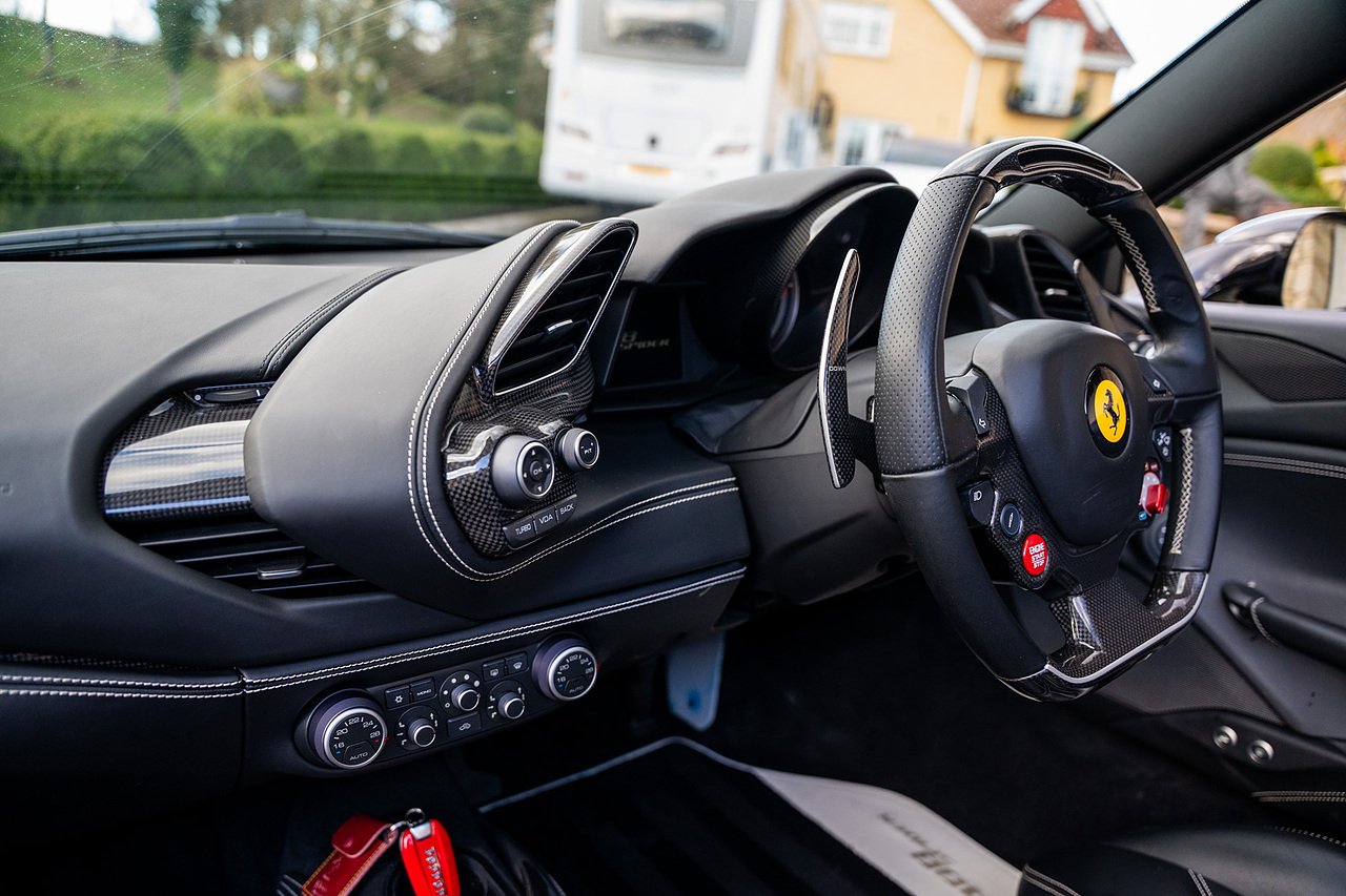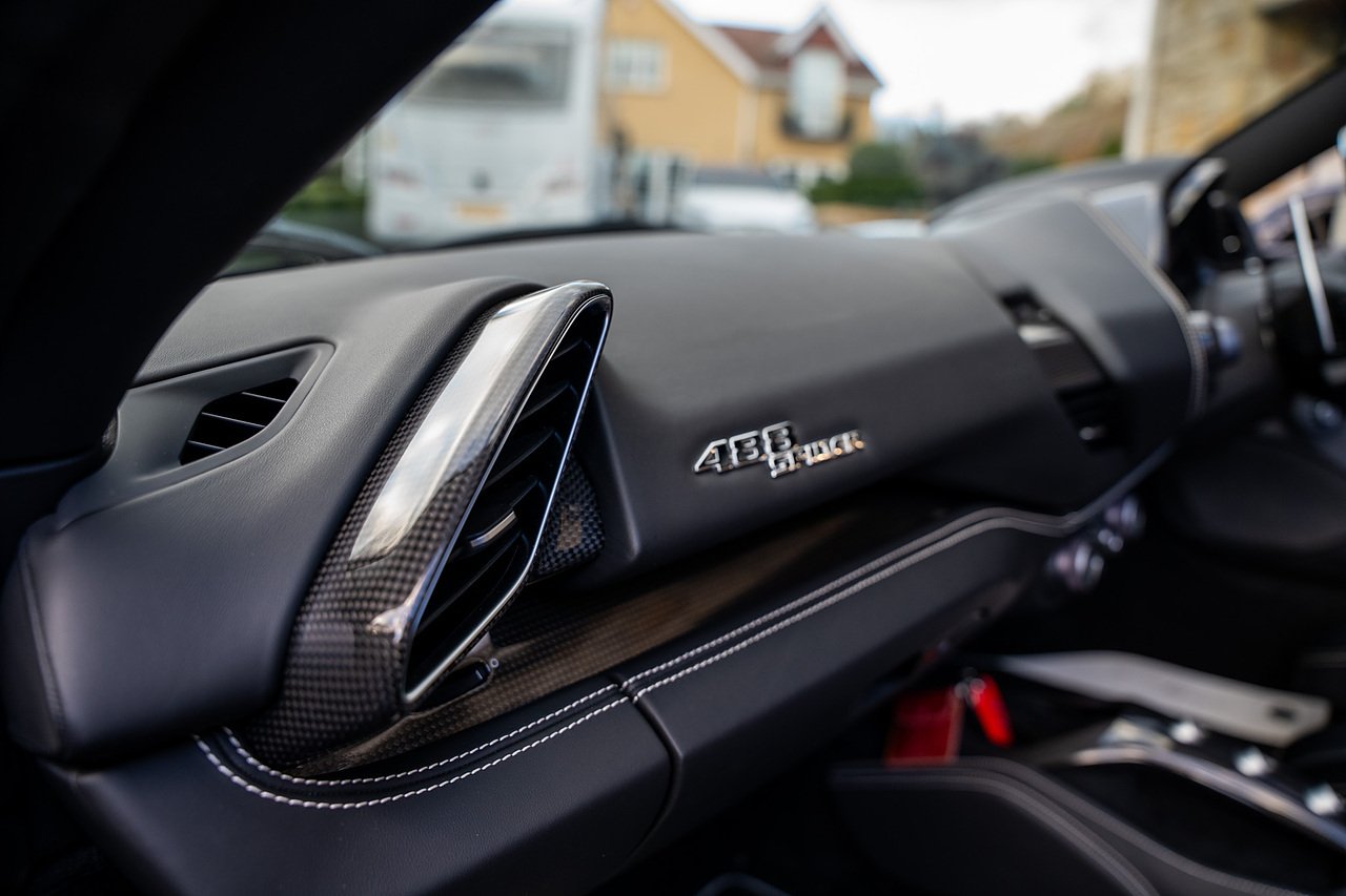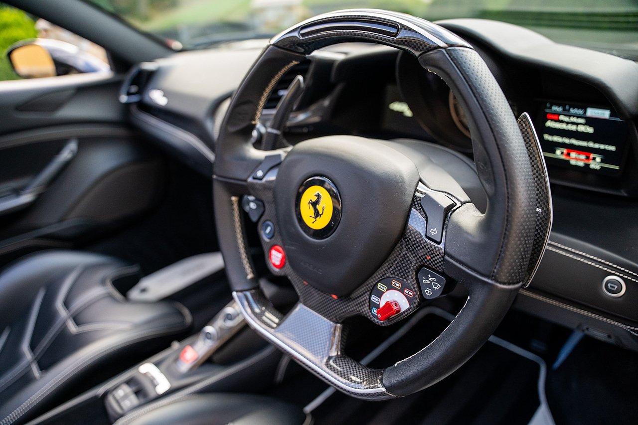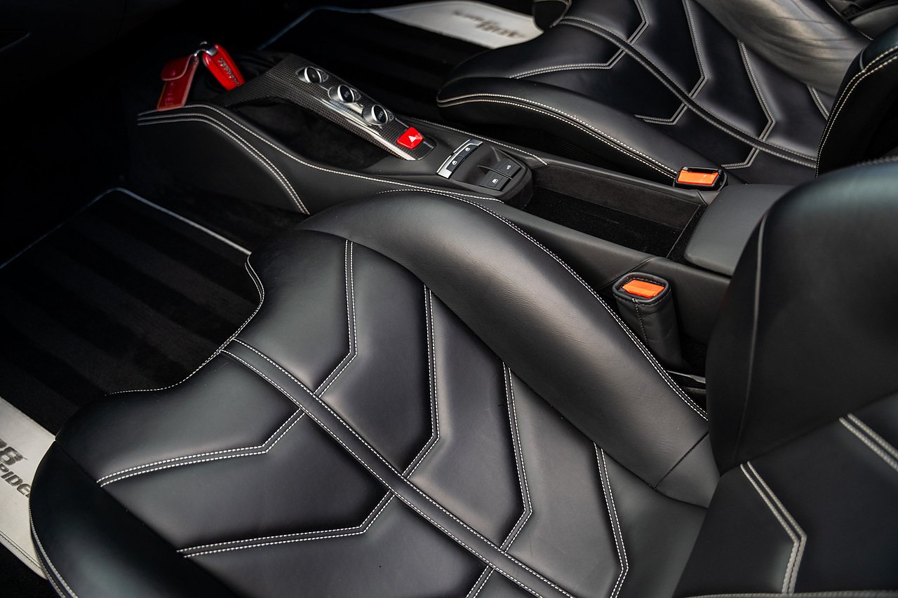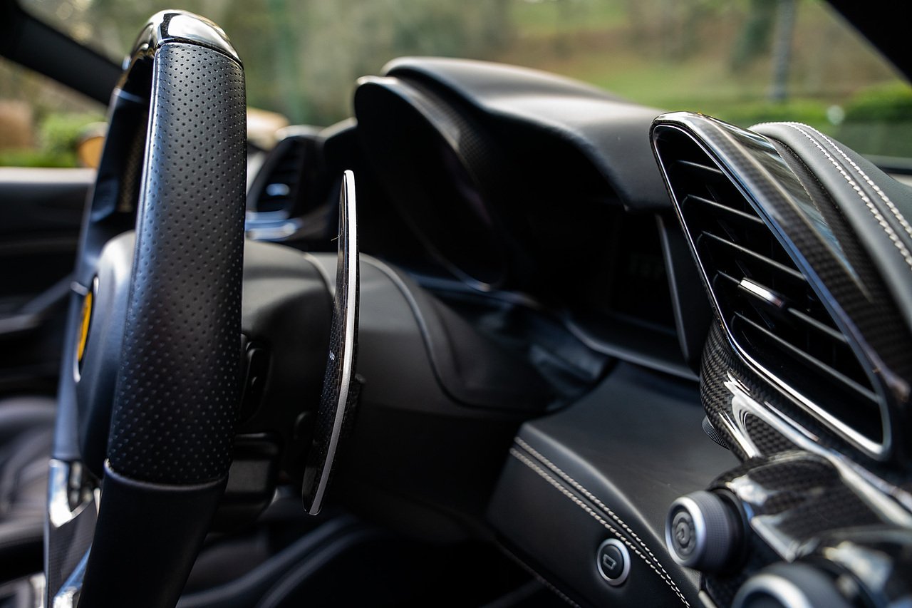 The Specification of this example includes Ultra Rare Gloss Silver Dream Line Elements throughout the Front Lower Splitter, Side Extension and side Vents in Argento Nurburgring as well as '488 Spider Headrest Logo Stitched in Grigio Chiaro Thread. Also the Example in Full of optional extra equipment and details including Carbon Fibre extras including the Rear Tail Light Surrounds, Fog light Surround, Rear Air Ducks, As well as the Interior Central Bridge and Trim Elements, Carbon Fibre Racing Package including the Carbon Goldrake Racing Carbon Daytona Seats (Large), Sports Exhaust System, Carbon Fibre Wheel Center, Additional Coloured and Stitched 488 Floor Mats Grigio Chiaro Thread, Scuderia Ferrari Shields, Electronic Mirrors, Rear Reversing Camera, Front and Rear Parking Sensors, Rear Italian Flag On Engine Compartment, Aluminium Rev Counter, Racing Seat Lifter, DAB Radio. See Plaque For Full Additional extras or feel free to get in touch for more.