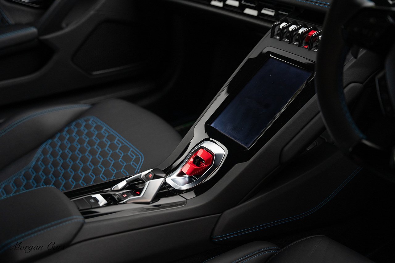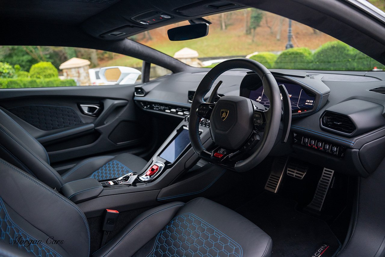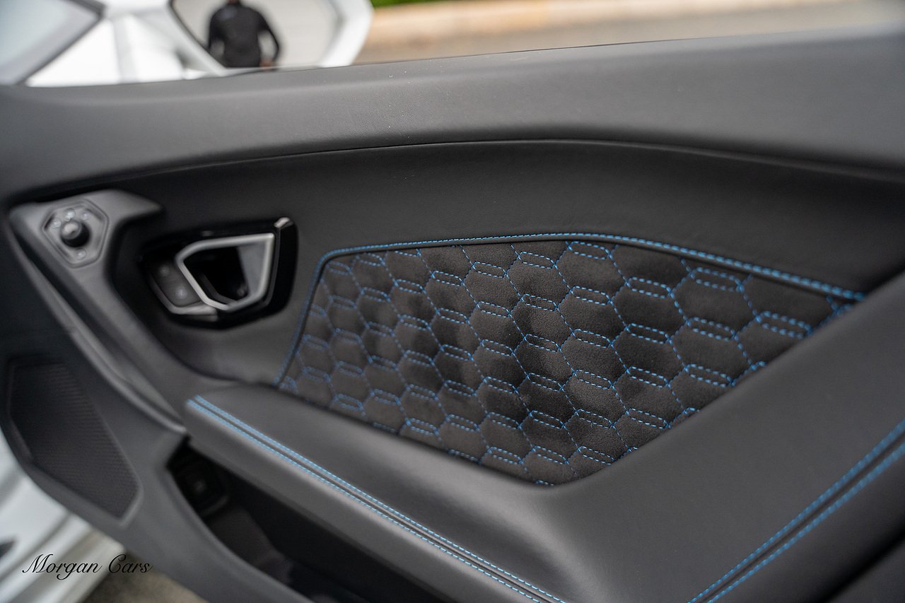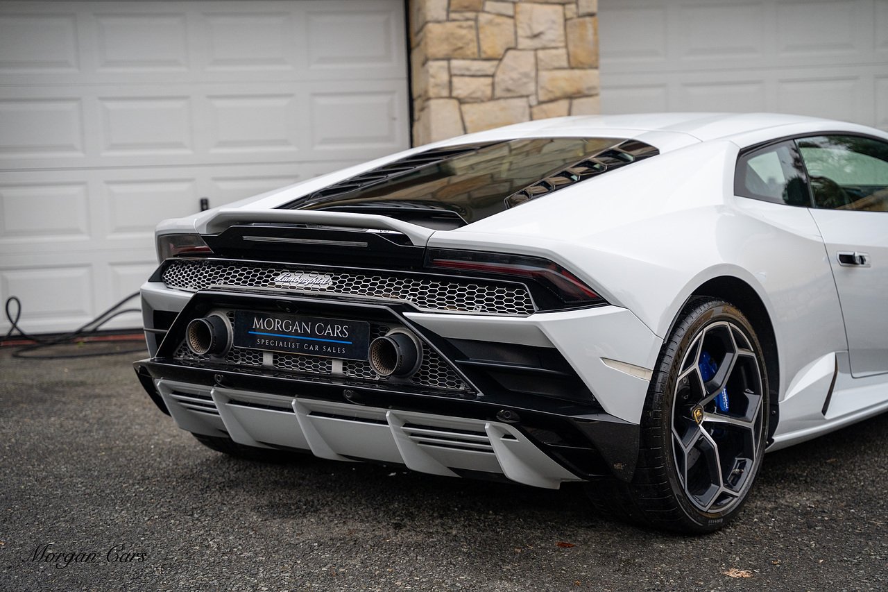 2020 Lamborghini Huracan LP640-4 EVO finished in Bianco Icarus with Q Citura Nero Leather interior with contrasting Blu Amon stitching | Featured is a full Lamborghini Service history from new | Front Vehicle Axle lifting system with Magno Rheological Suspension| Transparent Engine Cover | Rear reversing assist camera | Apple Car play and connected service Infotainment system | 20" Aesir Alloy wheels in Black and Diamond cut | Style Package in Gloss black | Q Citura suede Headliner | Q Citura on Rear parcel shelf with contrast stitch | DAB Radio Tuner | Full Electric and Heated seats | Electro Chromatic exterior mirrors | Ad Personam CCMR Brake Calipers Painted in Blue | LED Light system | Digital Cockpit display.