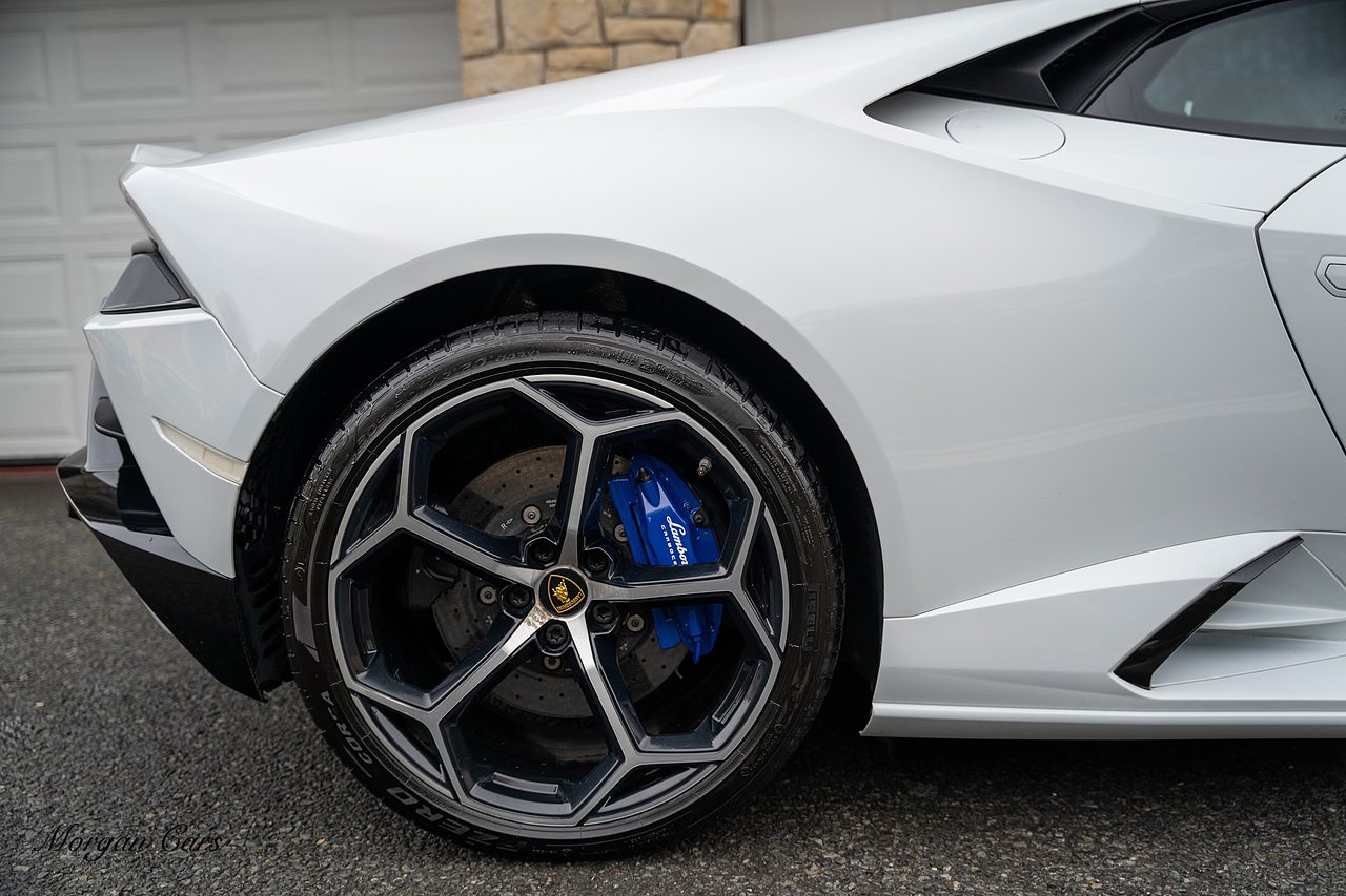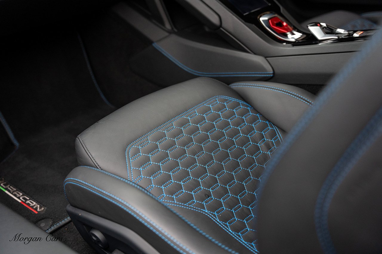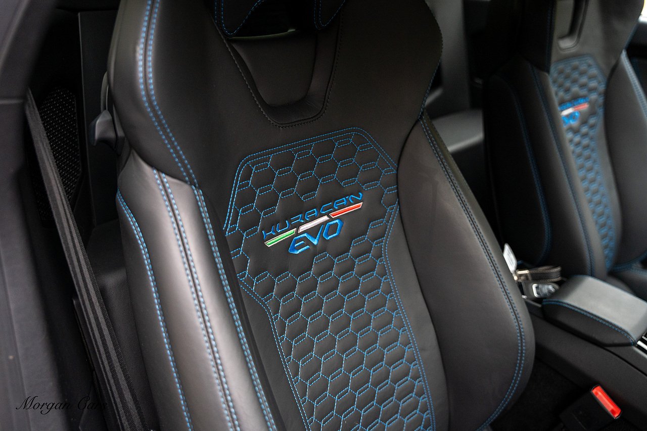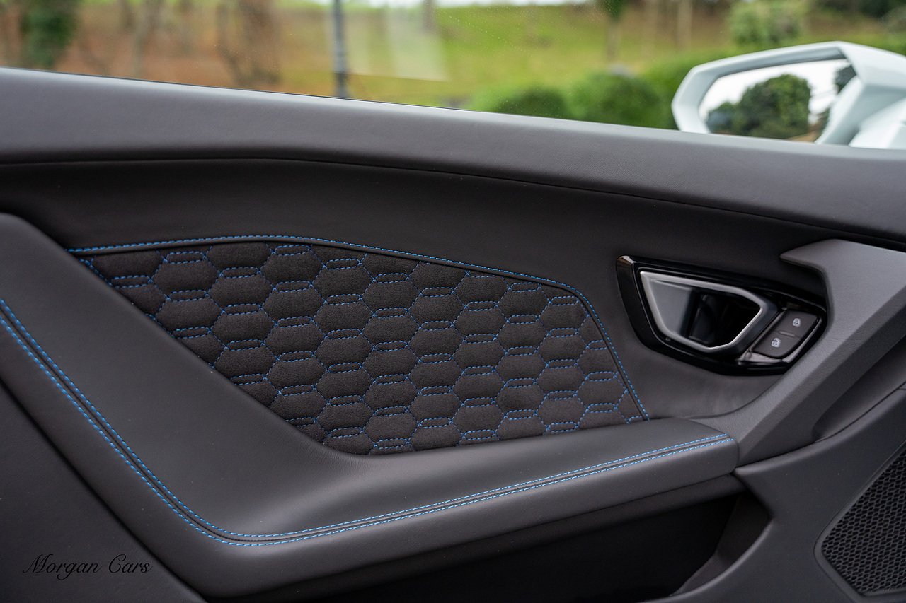 Vat Qualifying for Export | 2020 Lamborghini Huracan LP640-4 EVO finished in Bianco Icarus with Q Citura Nero Leather interior with contrasting Blu Amon stitching | Featured is a full Lamborghini Service history from new and just serviced by Lamborghini Leicester on 01/10/2024 27,540 Miles | Front Vehicle Axle lifting system with Magno Rheological Suspension| Transparent Engine Cover | Rear reversing assist camera | Apple Car play and connected service Infotainment system | 20" Aesir Alloy wheels in Black and Diamond cut | Style Package in Gloss black | Q Citura suede Headliner | Q Citura on Rear parcel shelf with contrast stitch | DAB Radio Tuner | Full Electric and Heated seats | Electro Chromatic exterior mirrors | Ad Personam CCMR Brake Calipers Painted in Blue | LED Light system | Digital Cockpit display.