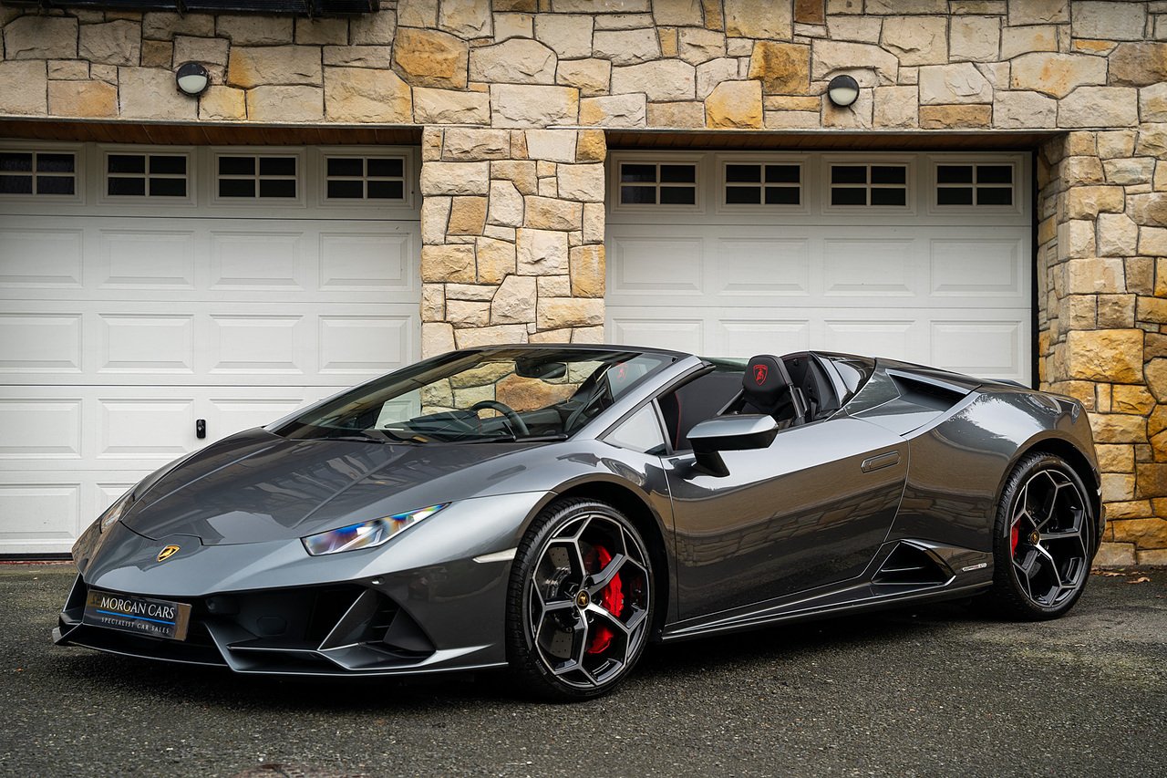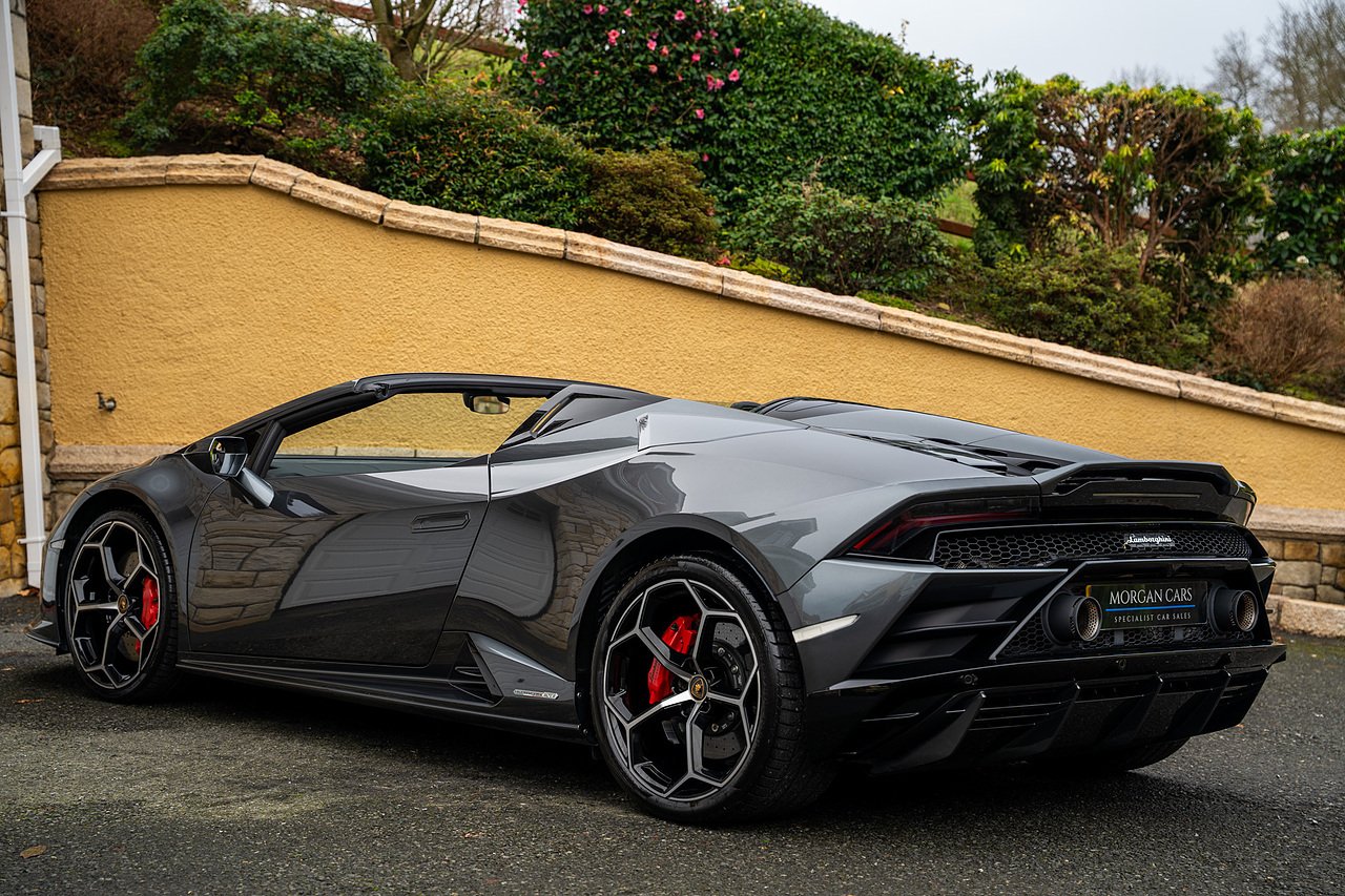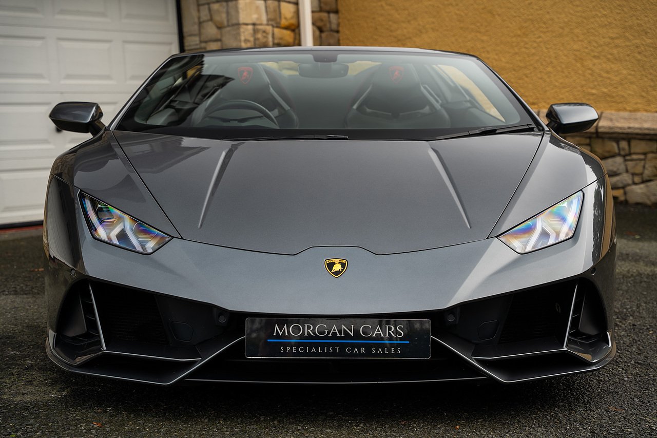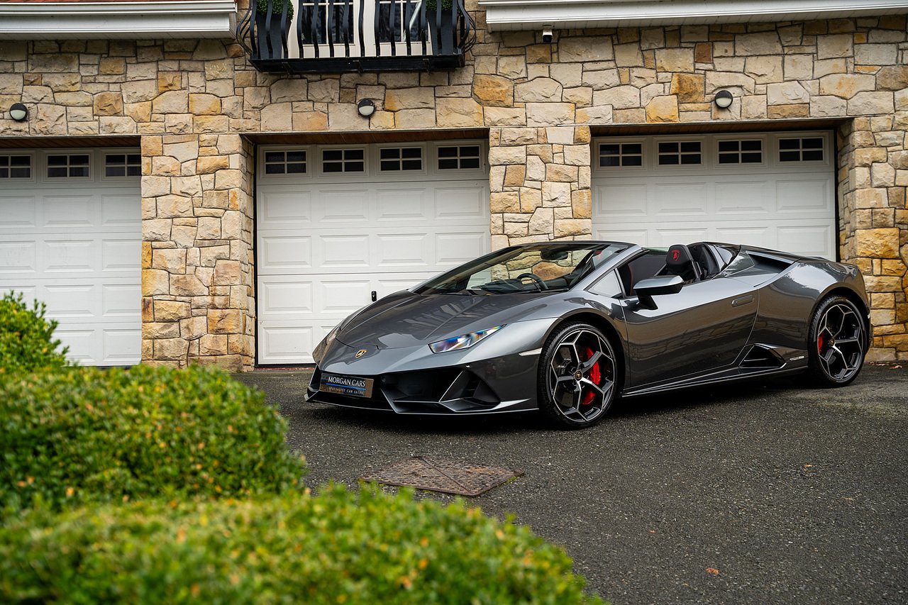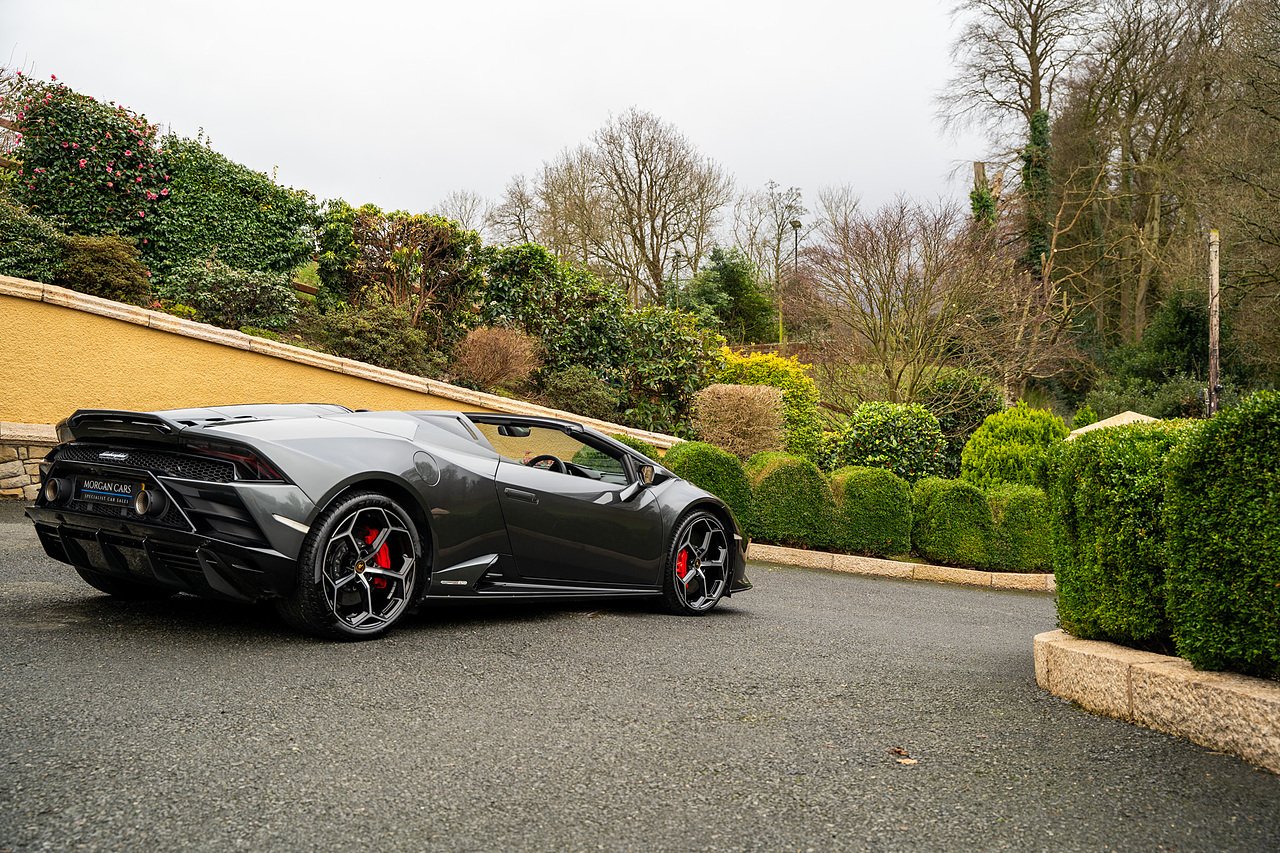 Morgan Cars are Proud To Present Our Lamborghini Huracan Evo 640-4 Spyder. Finished in Nero Lynx with Full Contrasting Nero Black Leather with Rosso Stitching Interior with Upgraded Carbon Fibre Sports Seats.