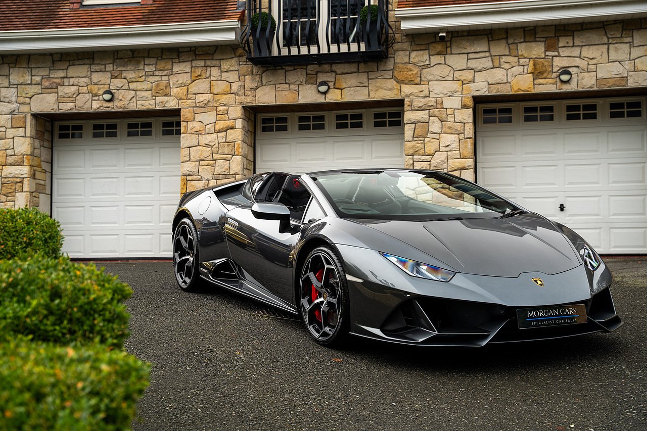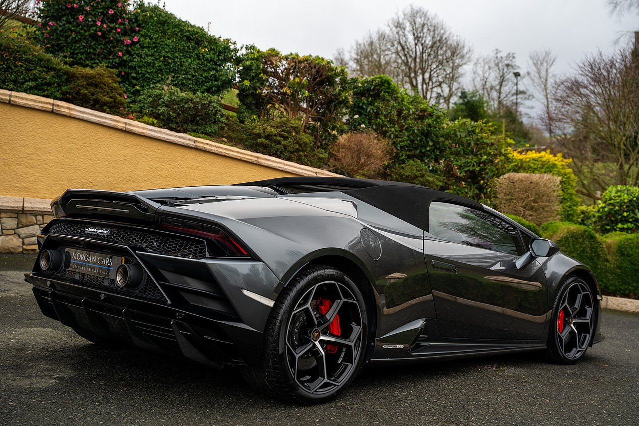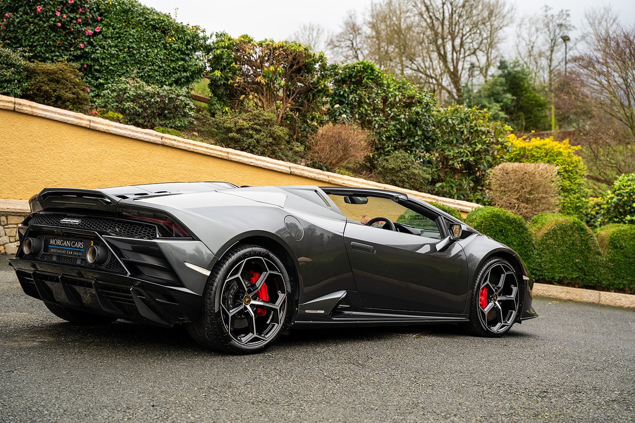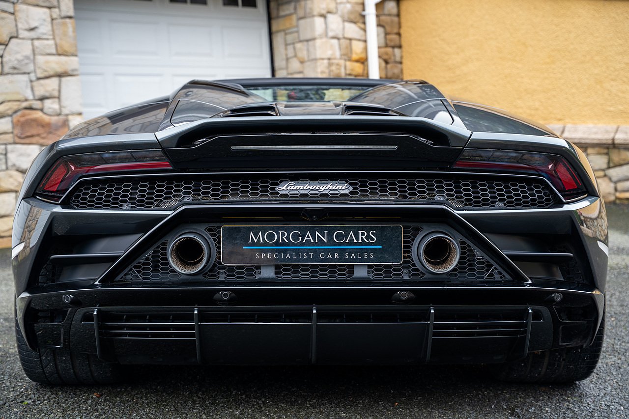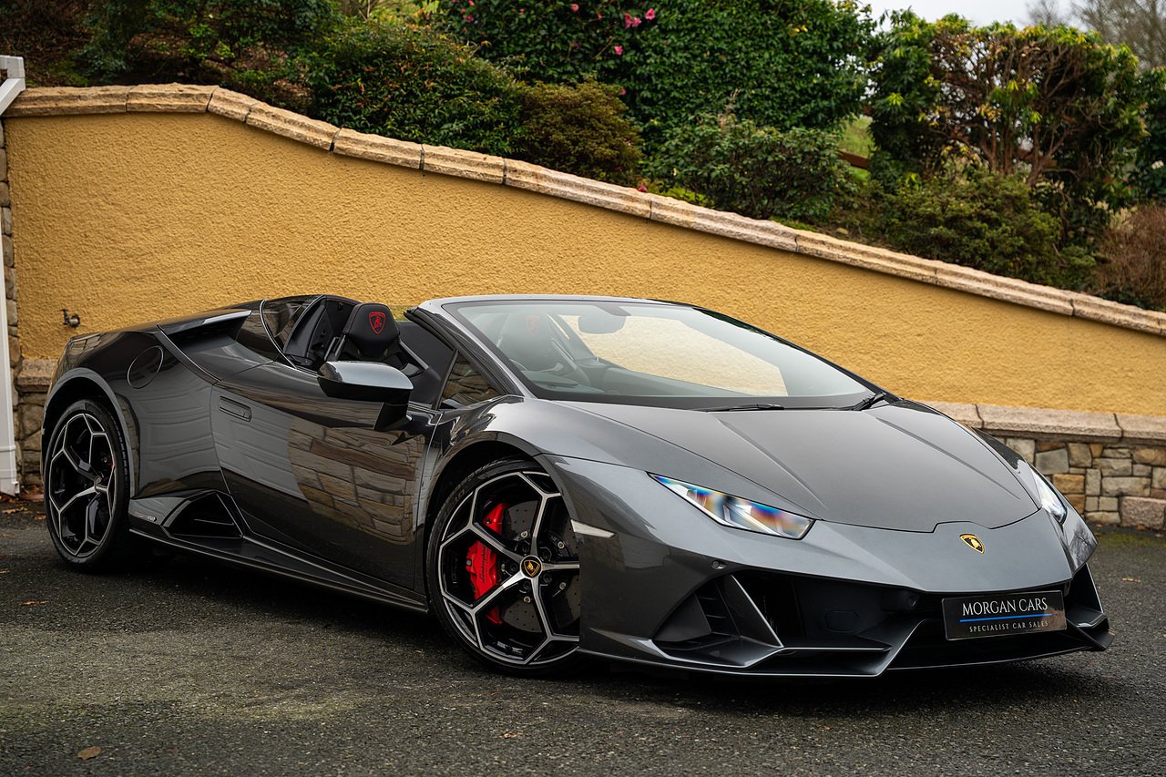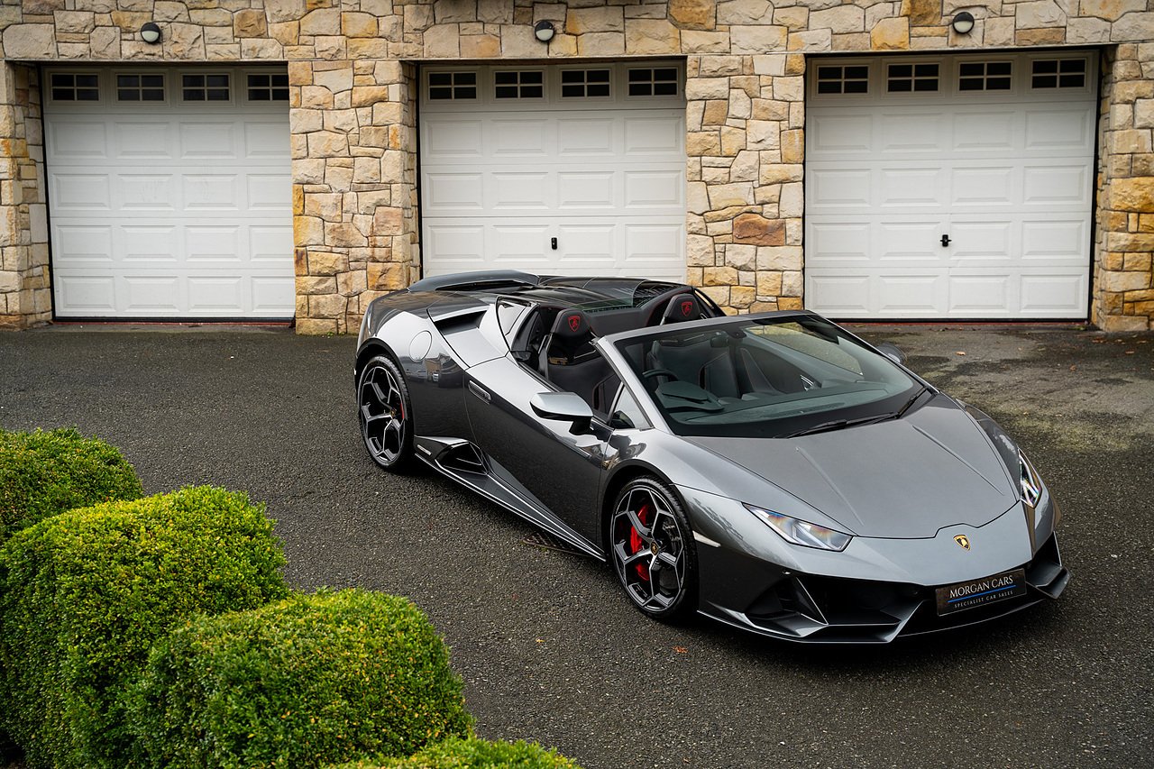 Morgan Cars are Proud To Present Our Lamborghini Huracan Evo 640-4 Spyder. Finished in Nero Lynx with Full Contrasting Nero Black Leather with Rosso Stitching Interior with Upgraded Carbon Fibre Sports Seats.