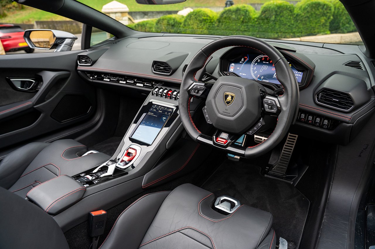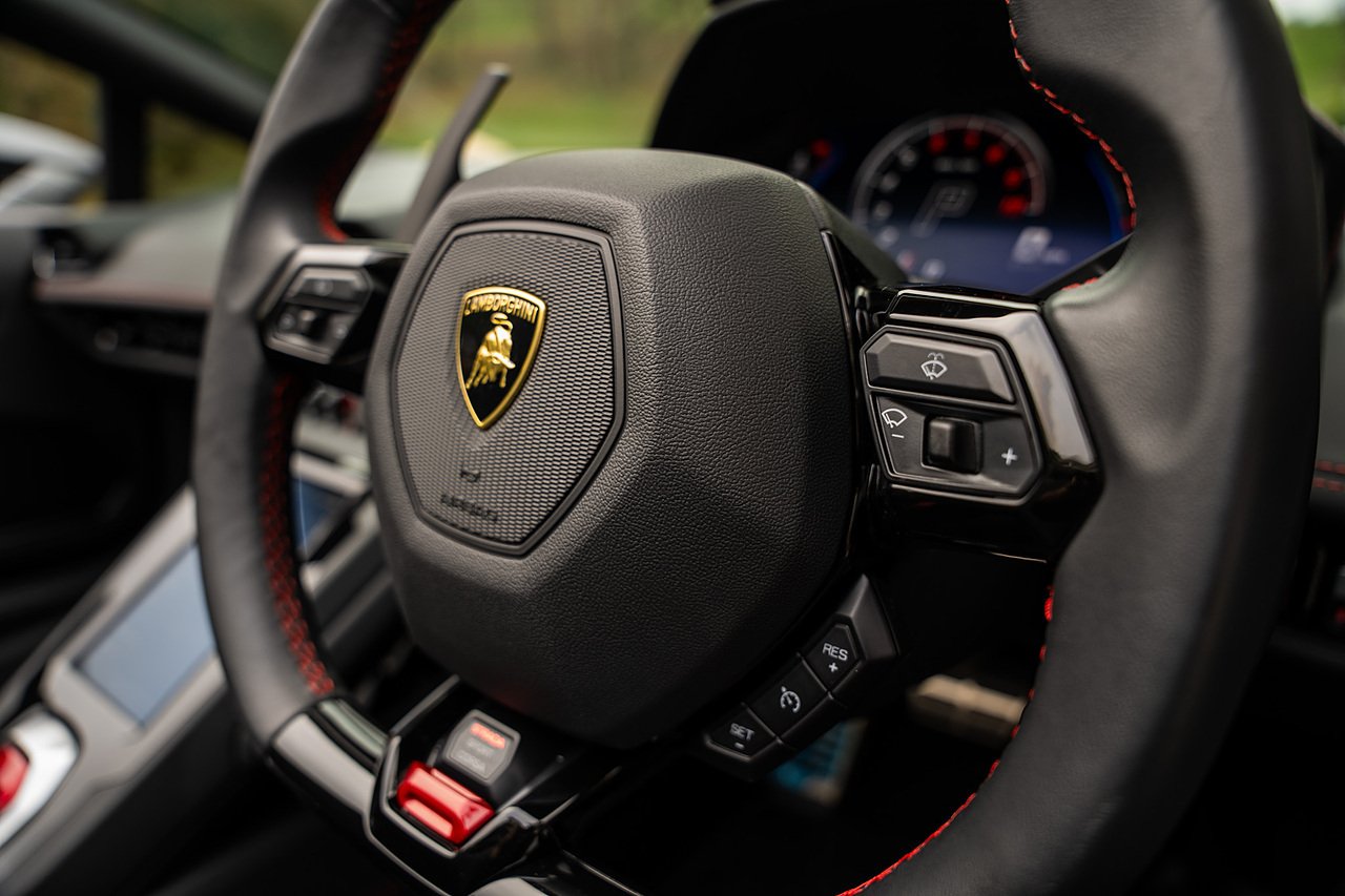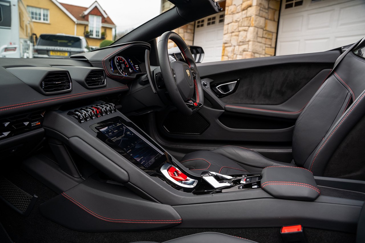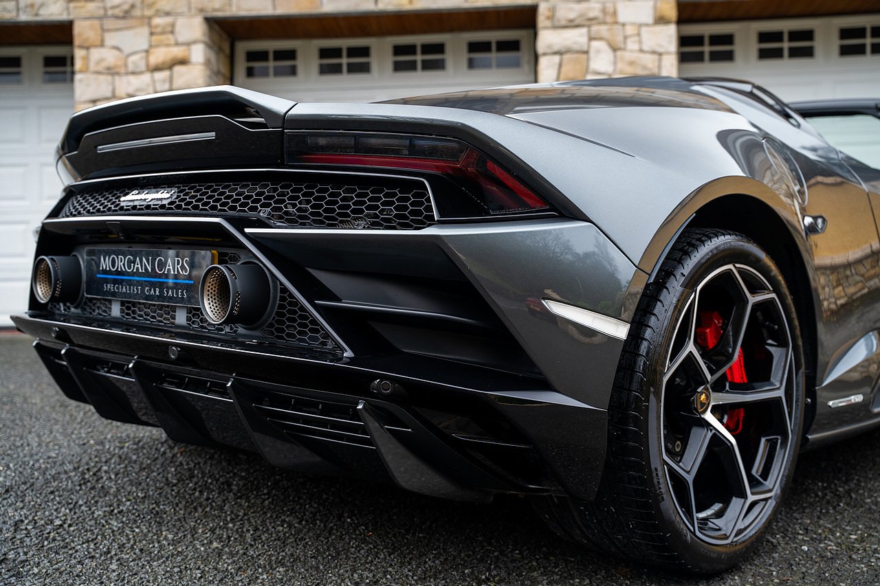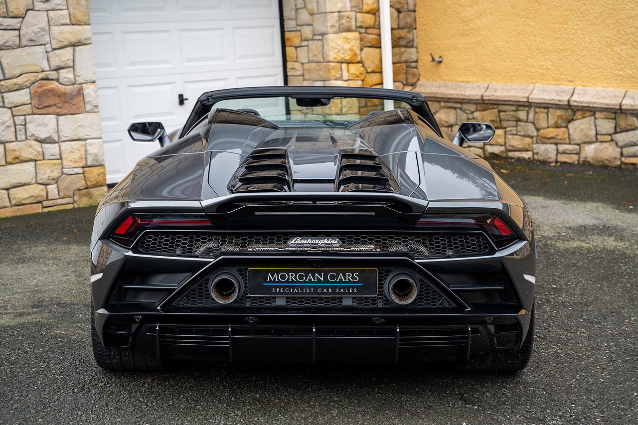Morgan Cars are Proud To Present Our Lamborghini Huracan Evo 640-4 Spyder. Finished in Nero Lynx with Full Contrasting Nero Black Leather with Rosso Stitching Interior with Upgraded Carbon Fibre Sports Seats.