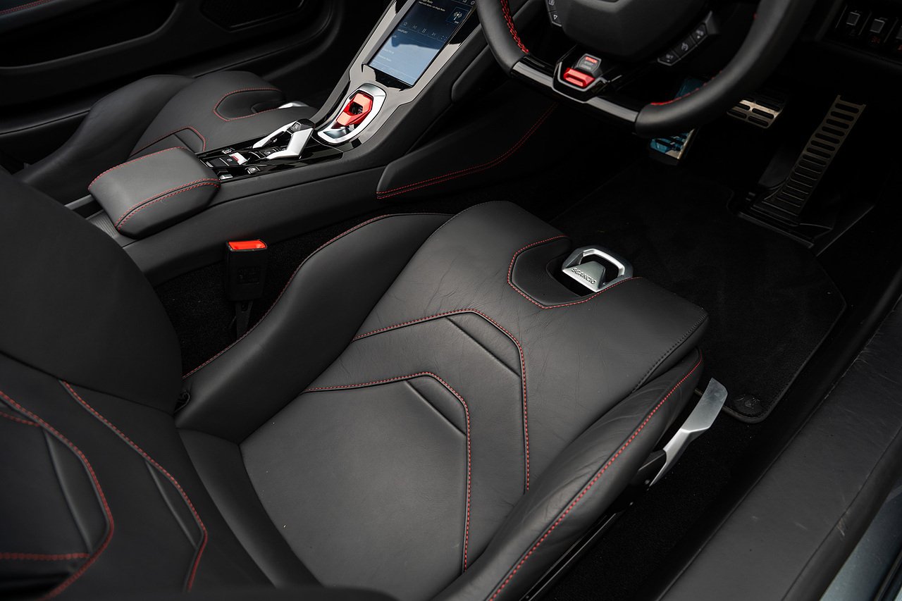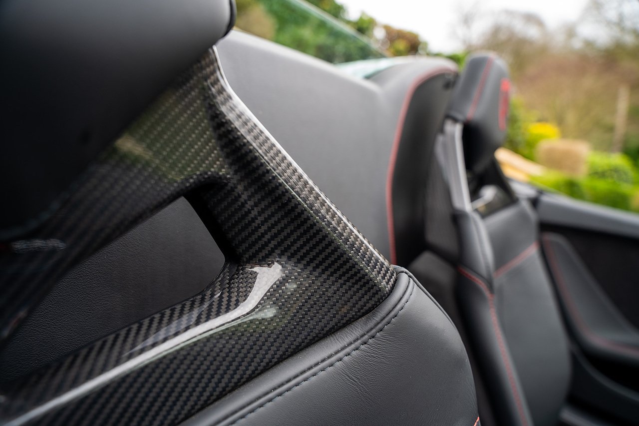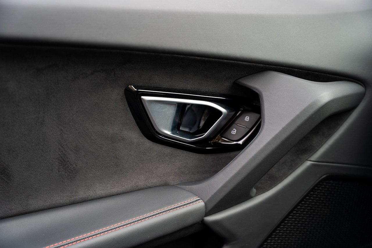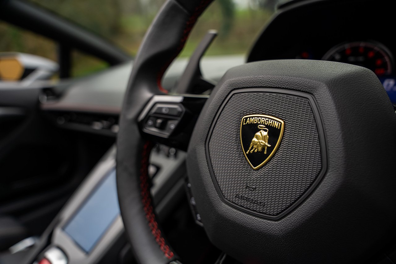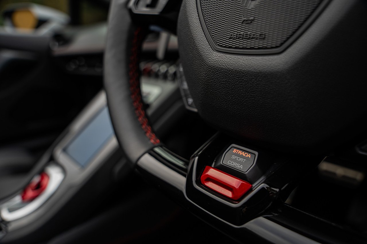 The Specification of this example Includes, The Upgraded Carbon Fibre Evo Race Seats, Front Vehicle Axle lifting system with Magno Rheological Suspension, Style Package with High Gloss Exterior Elements, Rear Reversing Assist Camera with Parking Sensors, Lamborghini Logo Stitched into the Heated Rests in Rosso Red, Apple Car play and connected service Infotainment system, 20" Aesir Alloy wheels in Gloss Black & Polished Face, Black Cloth Roof, Q Citura on Rear parcel shelf with contrast stitch, DAB Radio Tuner, Heated Seats, Electro Chromatic exterior mirrors, Ad Personam CCMR Brake Calipers Painted in Gloss Red , LED Light system, Digital Cockpit display.
