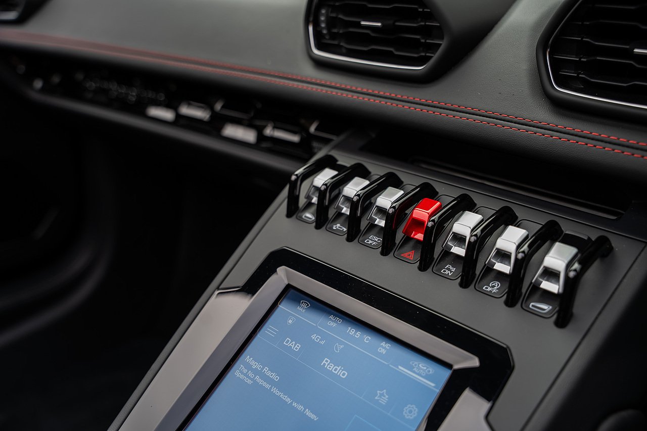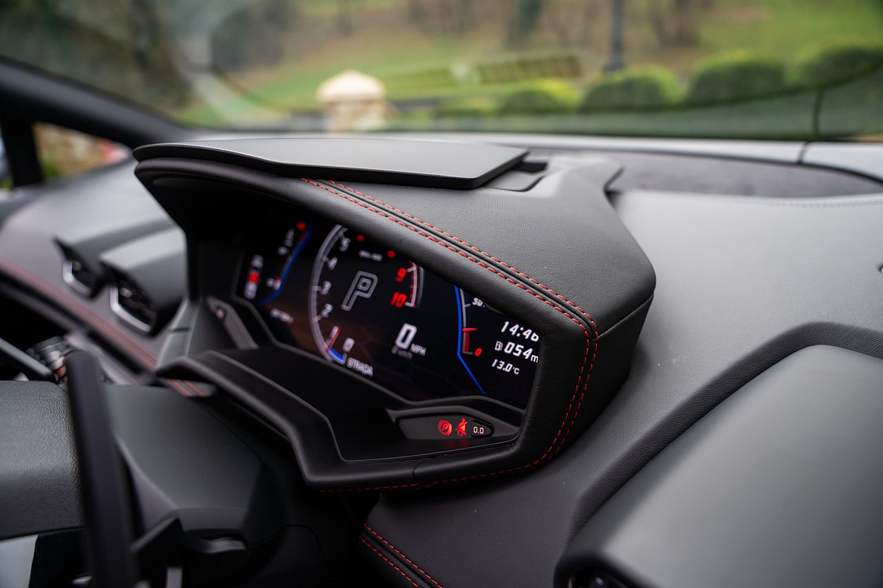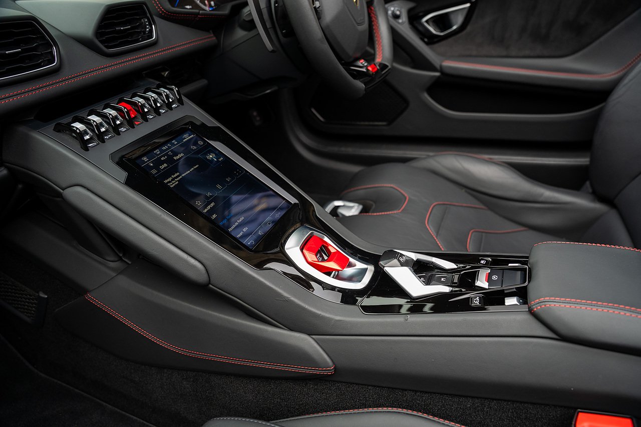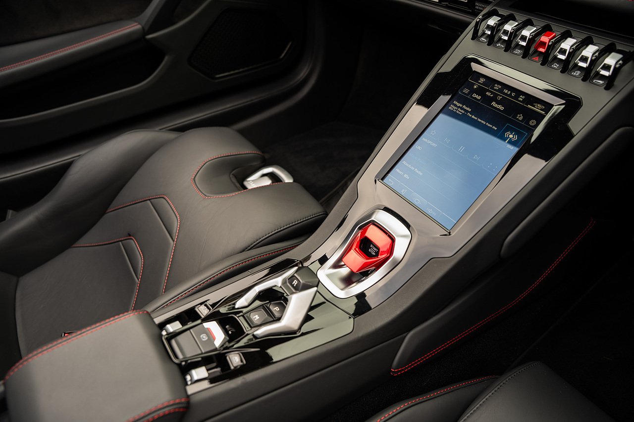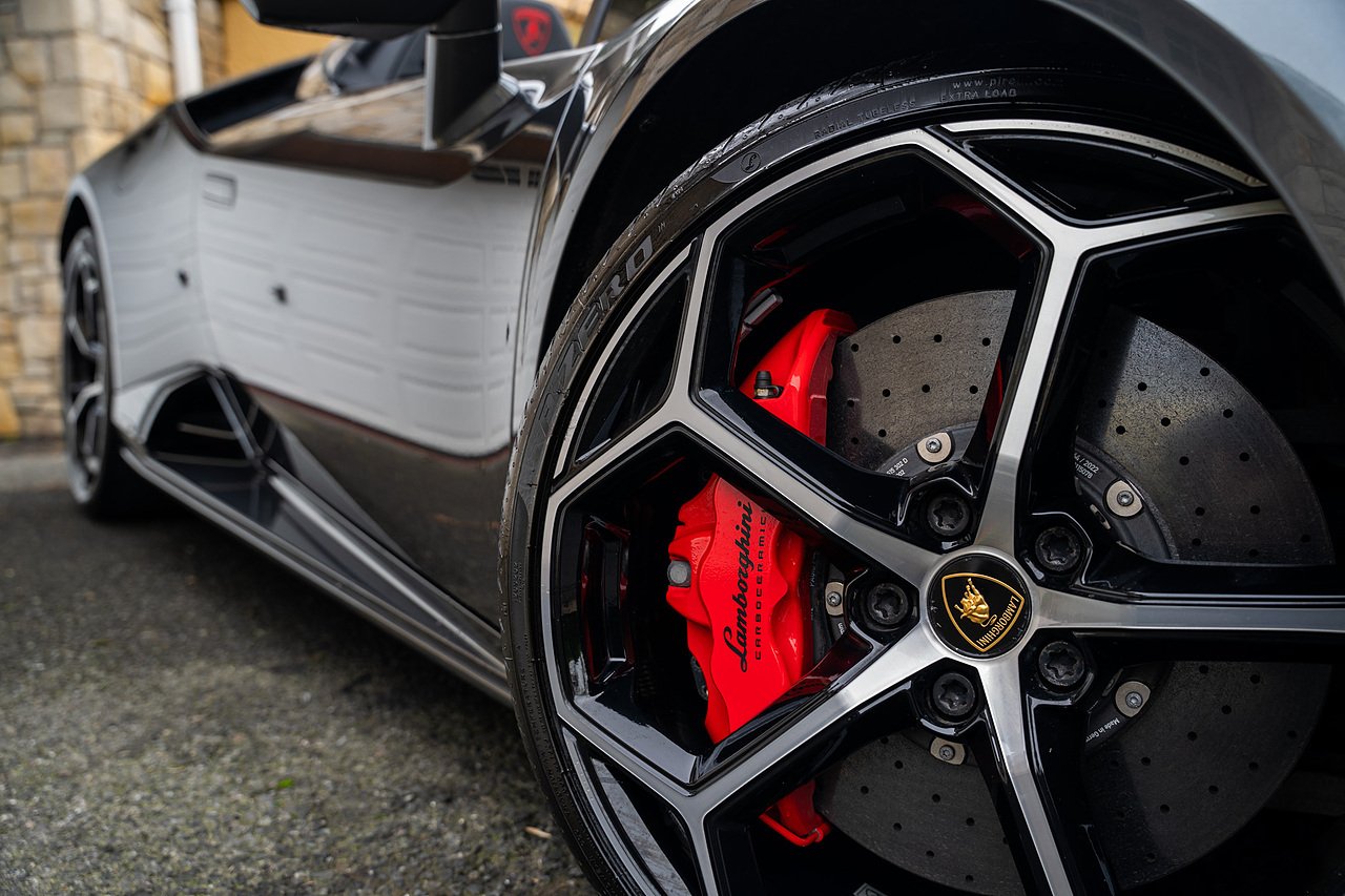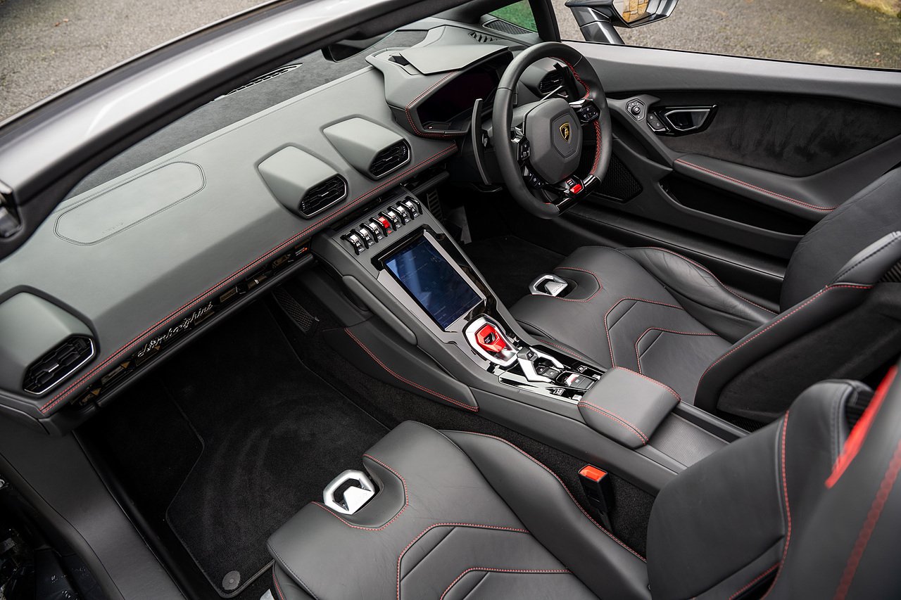 The Specification of this example Includes, The Upgraded Carbon Fibre Evo Race Seats, Front Vehicle Axle lifting system with Magno Rheological Suspension, Style Package with High Gloss Exterior Elements, Rear Reversing Assist Camera with Parking Sensors, Lamborghini Logo Stitched into the Heated Rests in Rosso Red, Apple Car play and connected service Infotainment system, 20" Aesir Alloy wheels in Gloss Black & Polished Face, Black Cloth Roof, Q Citura on Rear parcel shelf with contrast stitch, DAB Radio Tuner, Heated Seats, Electro Chromatic exterior mirrors, Ad Personam CCMR Brake Calipers Painted in Gloss Red , LED Light system, Digital Cockpit display.