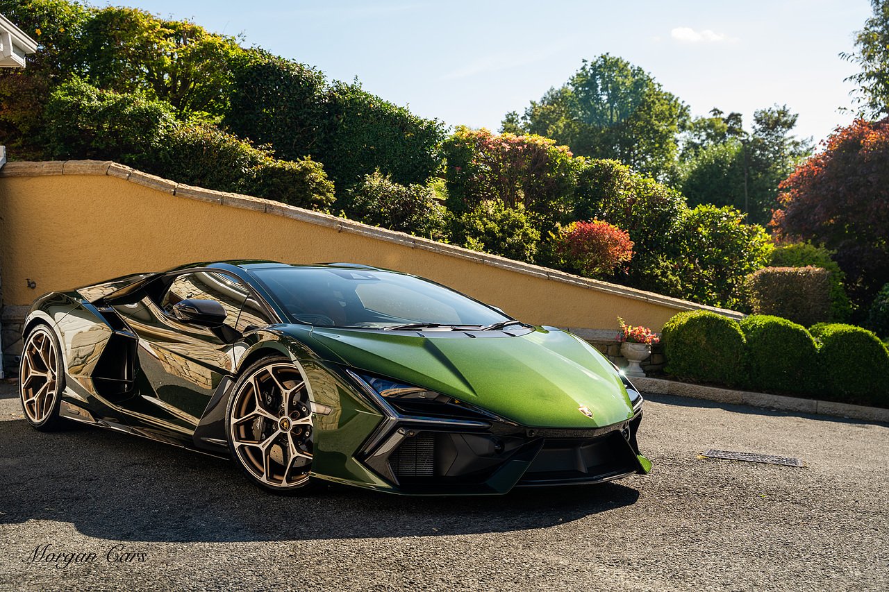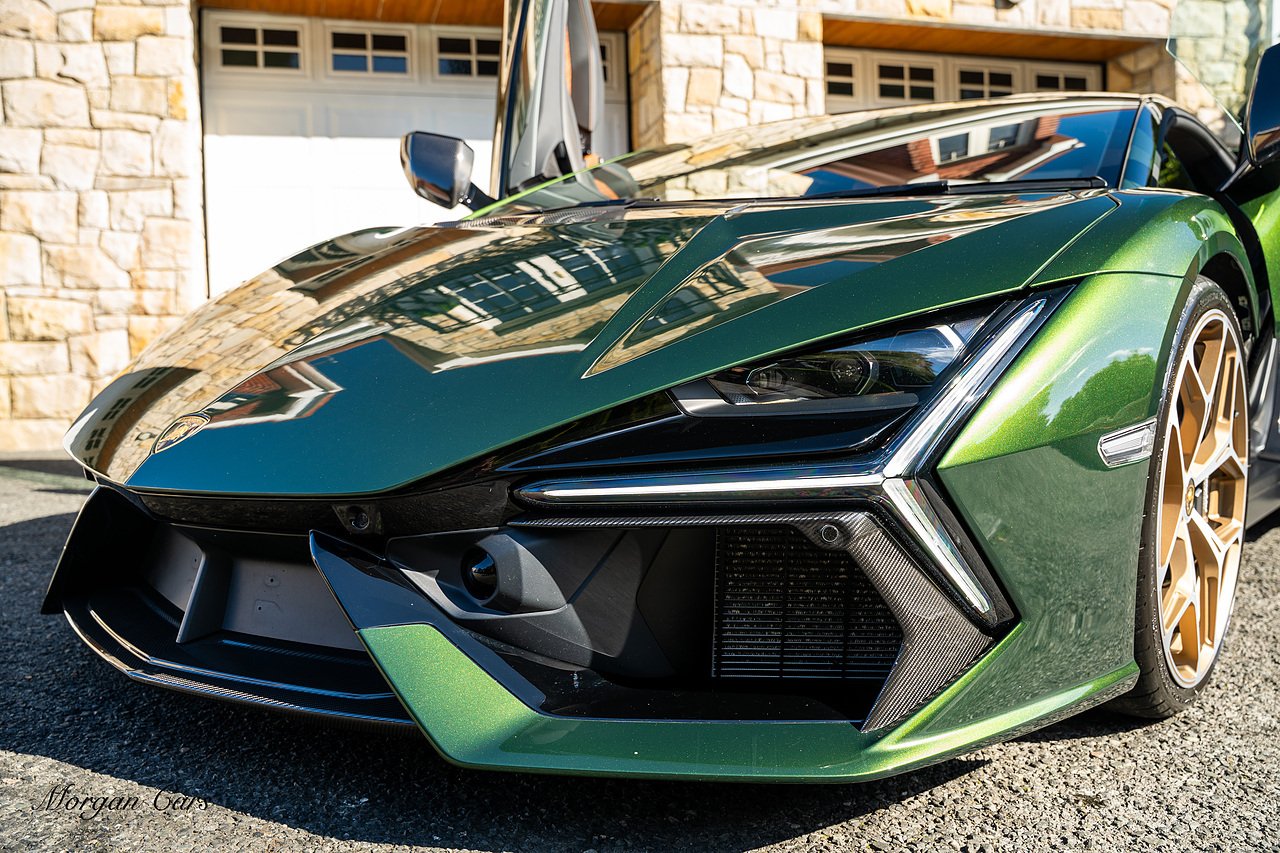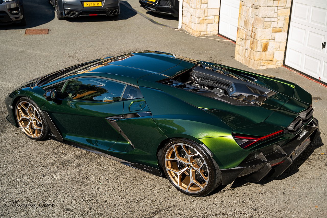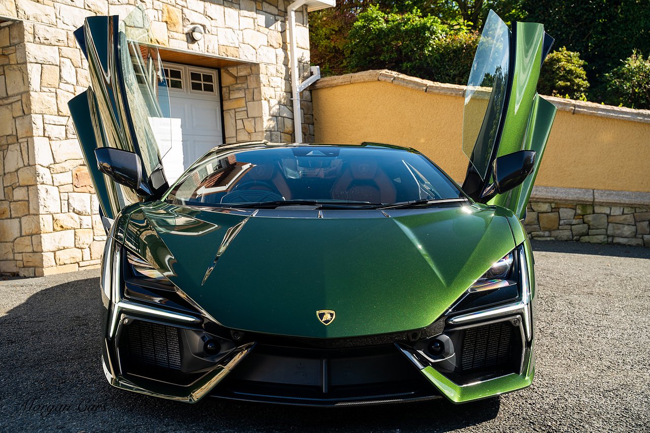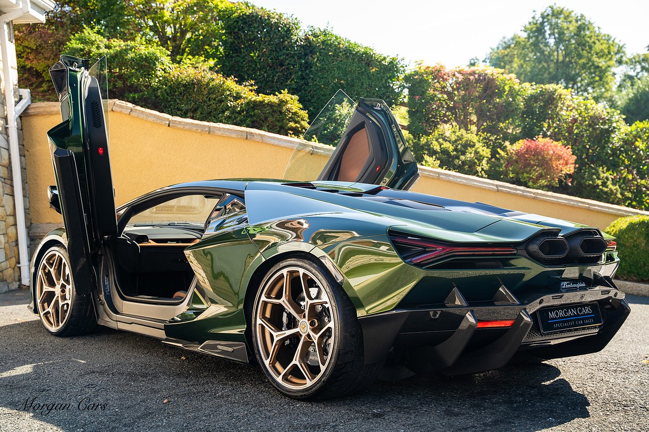 Morgan Cars are proud to present this Stunning Lamborghini Revuelto finished in AD Personam Verdes Ermes Metallic with Full Body Self healing PPF, This Revuelto has Monster Specification which includes full Exterior Carbon Fibre Styling Package with Carbon Fibre engine cover and Additionally the side carbon aero fin in Carbon Fibre , Front Axle Lifting System, Altanero Bronze forged diamond cut alloy wheels 21/22", Full Carbon Fibre interior package, Warranty Extension 5th Year, Headlamps Package, Full Electric Heated seats, Q-Citura on Roof, Exhaust Tailpipes in Satin Black, Rear Reversing Assist camera, Passenger Display, Cupholders package, Lamborghini Embroidery on Headrests, Matt Carbon fibre steering wheel with red 12 O'clock insert,Contrast Stitching in Bronzo Oreadi.