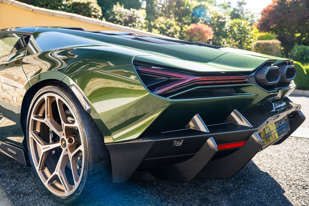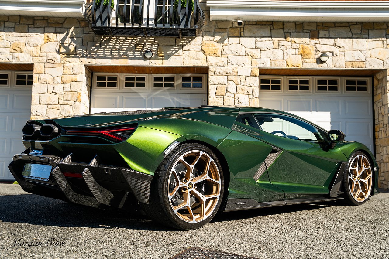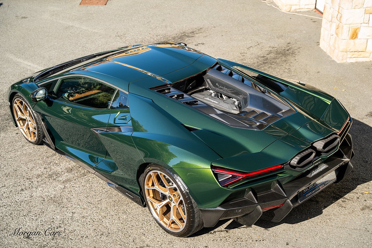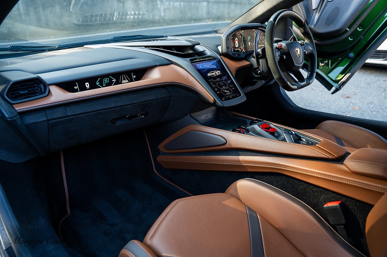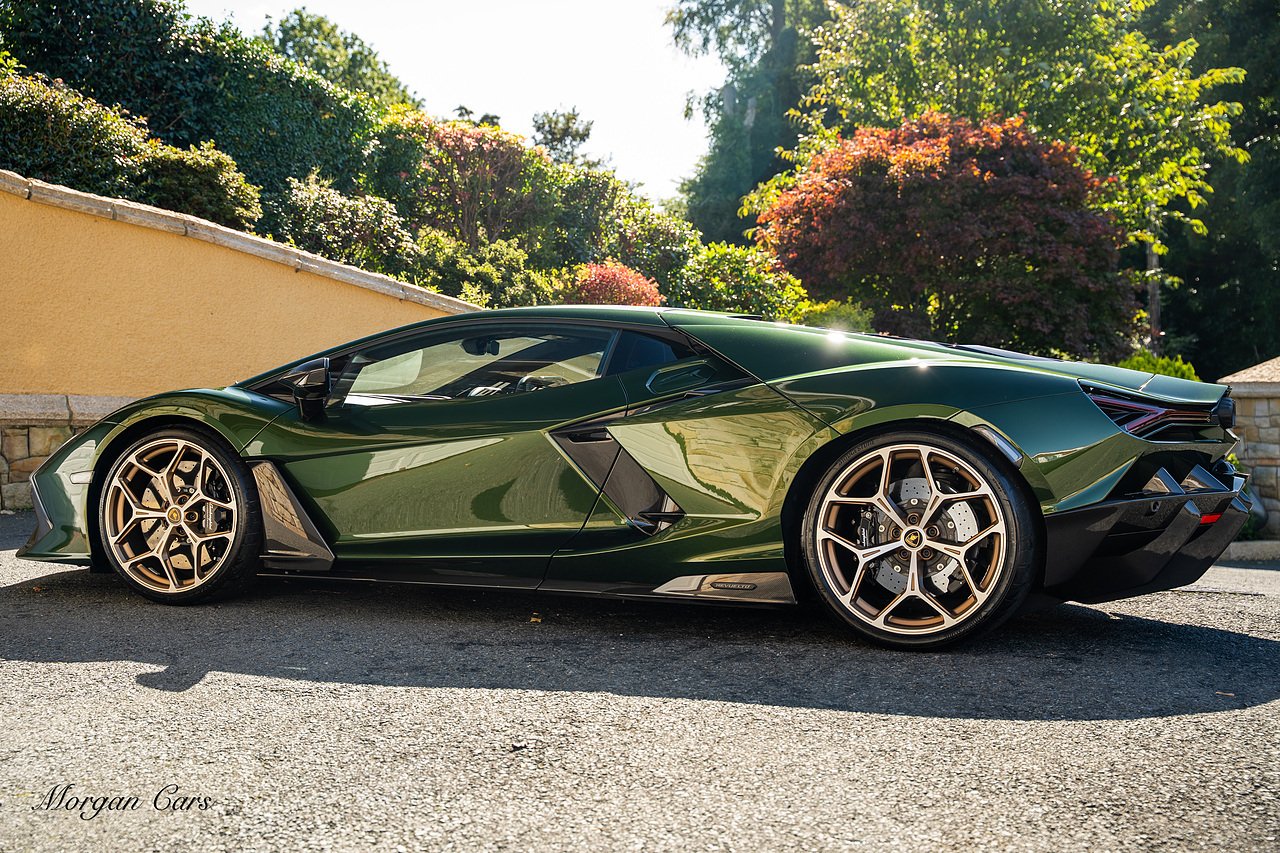 Morgan Cars are proud to present this Stunning Lamborghini Revuelto finished in AD Personam Verdes Ermes Metallic with Full Body Self healing PPF, This Revuelto has Monster Specification which includes full Exterior Carbon Fibre Styling Package with Carbon Fibre engine cover and Additionally the side carbon aero fin in Carbon Fibre , Front Axle Lifting System, Altanero Bronze forged diamond cut alloy wheels 21/22", Full Carbon Fibre interior package, Warranty Extension 5th Year, Headlamps Package, Full Electric Heated seats, Q-Citura on Roof, Exhaust Tailpipes in Satin Black, Rear Reversing Assist camera, Passenger Display, Cupholders package, Lamborghini Embroidery on Headrests, Matt Carbon fibre steering wheel with red 12 O'clock insert,Contrast Stitching in Bronzo Oreadi.