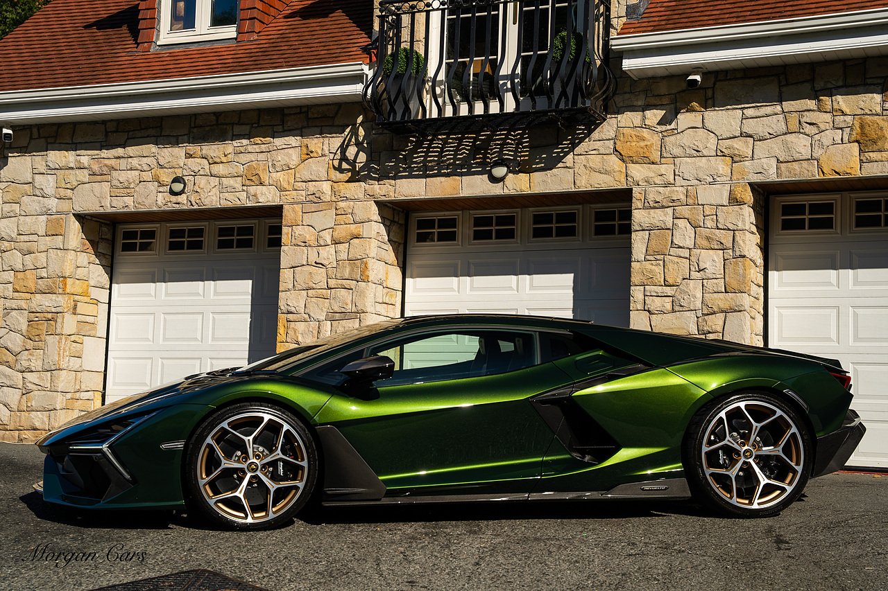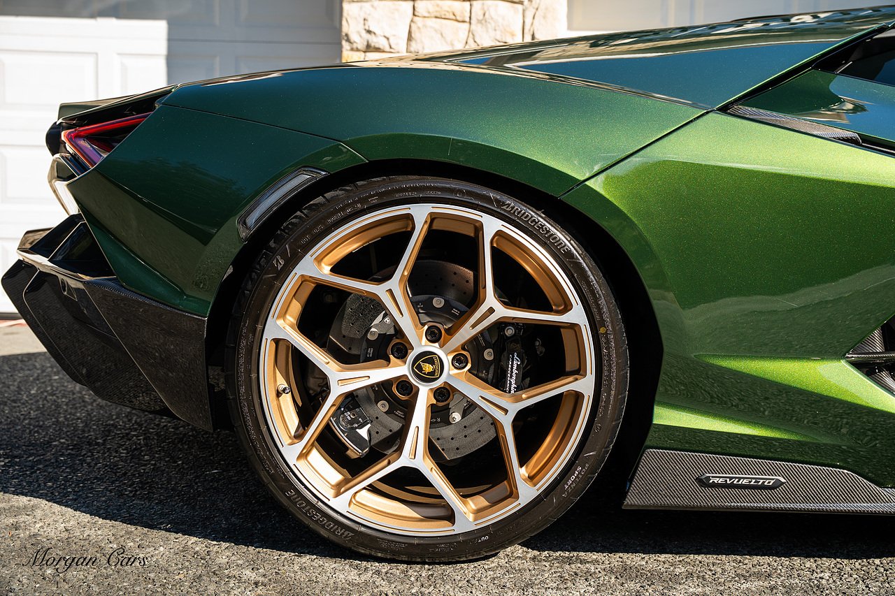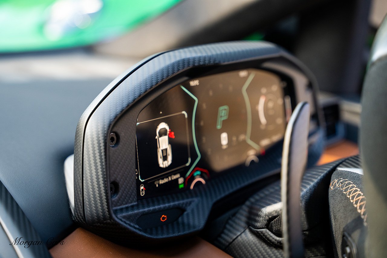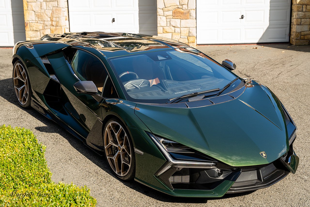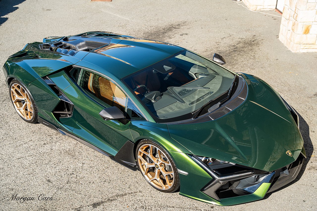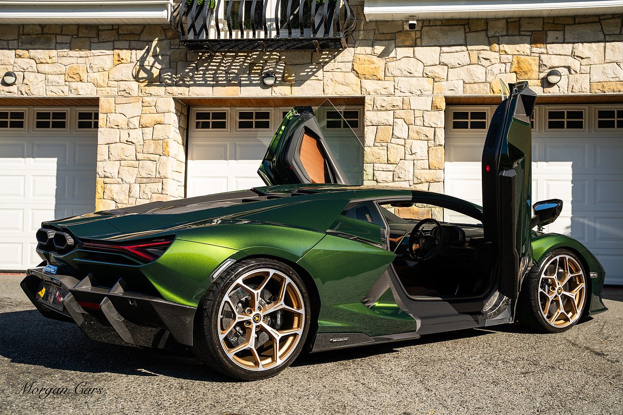 Morgan Cars are proud to present this Stunning Lamborghini Revuelto finished in AD Personam Verdes Ermes Metallic with Full Body Self healing PPF, This Revuelto has Monster Specification which includes full Exterior Carbon Fibre Styling Package with Carbon Fibre engine cover and Additionally the side carbon aero fin in Carbon Fibre , Front Axle Lifting System, Altanero Bronze forged diamond cut alloy wheels 21/22", Full Carbon Fibre interior package, Warranty Extension 5th Year, Headlamps Package, Full Electric Heated seats, Q-Citura on Roof, Exhaust Tailpipes in Satin Black, Rear Reversing Assist camera, Passenger Display, Cupholders package, Lamborghini Embroidery on Headrests, Matt Carbon fibre steering wheel with red 12 O'clock insert,Contrast Stitching in Bronzo Oreadi.