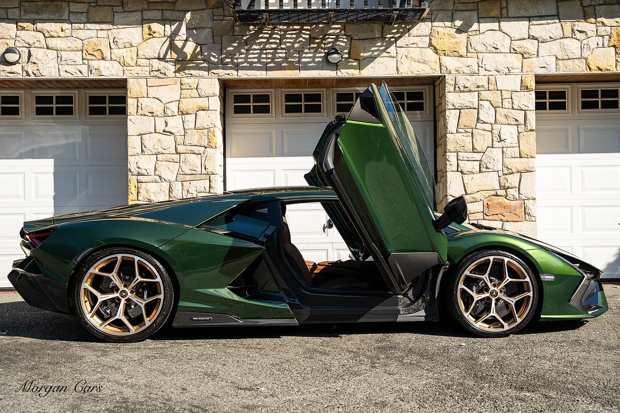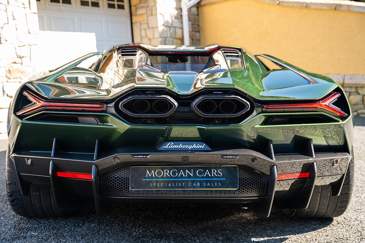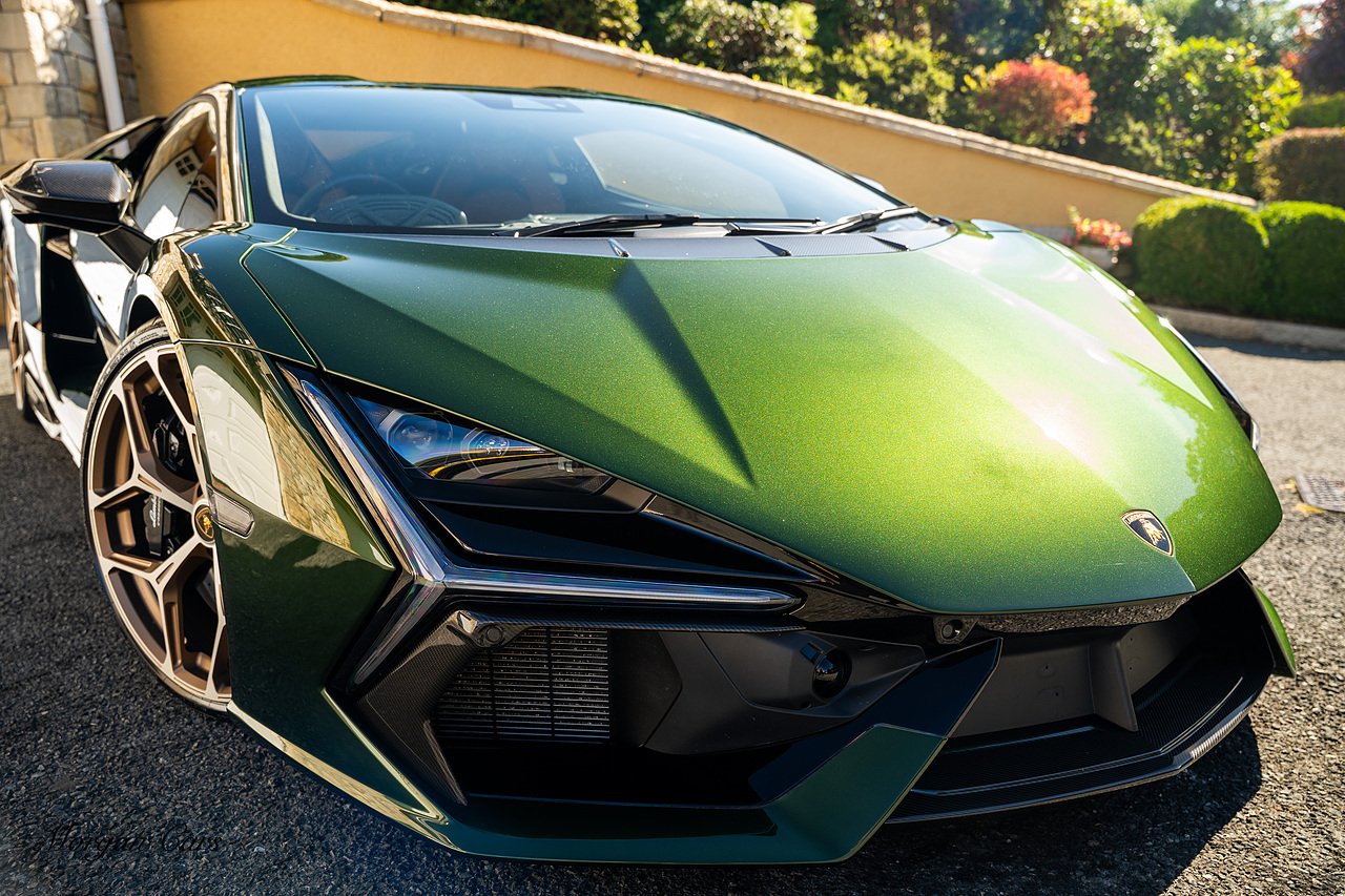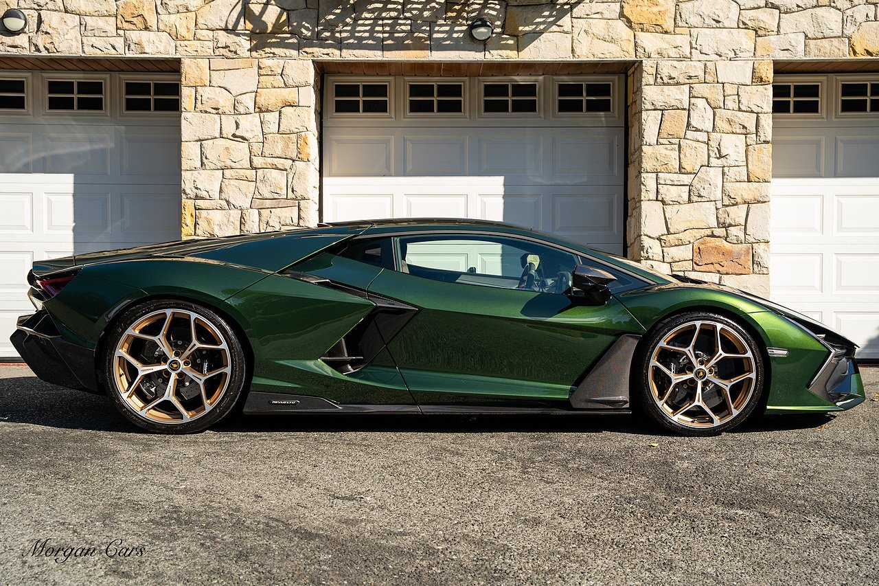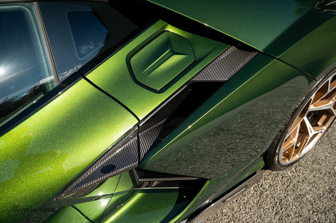 Morgan Cars are proud to present this Stunning Lamborghini Revuelto finished in AD Personam Verdes Ermes Metallic with Full Body Self healing PPF, This Revuelto has Monster Specification which includes full Exterior Carbon Fibre Styling Package with Carbon Fibre engine cover and Additionally the side carbon aero fin in Carbon Fibre , Front Axle Lifting System, Altanero Bronze forged diamond cut alloy wheels 21/22", Full Carbon Fibre interior package, Warranty Extension 5th Year, Headlamps Package, Full Electric Heated seats, Q-Citura on Roof, Exhaust Tailpipes in Satin Black, Rear Reversing Assist camera, Passenger Display, Cupholders package, Lamborghini Embroidery on Headrests, Matt Carbon fibre steering wheel with red 12 O'clock insert,Contrast Stitching in Bronzo Oreadi.