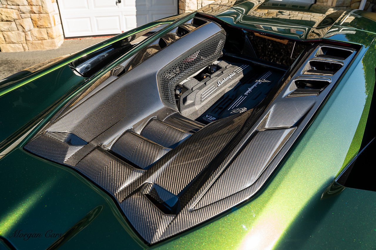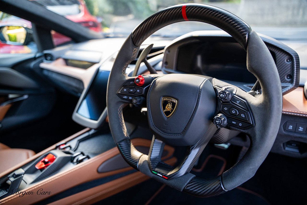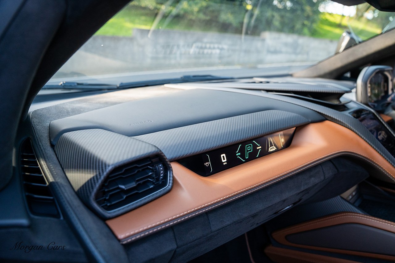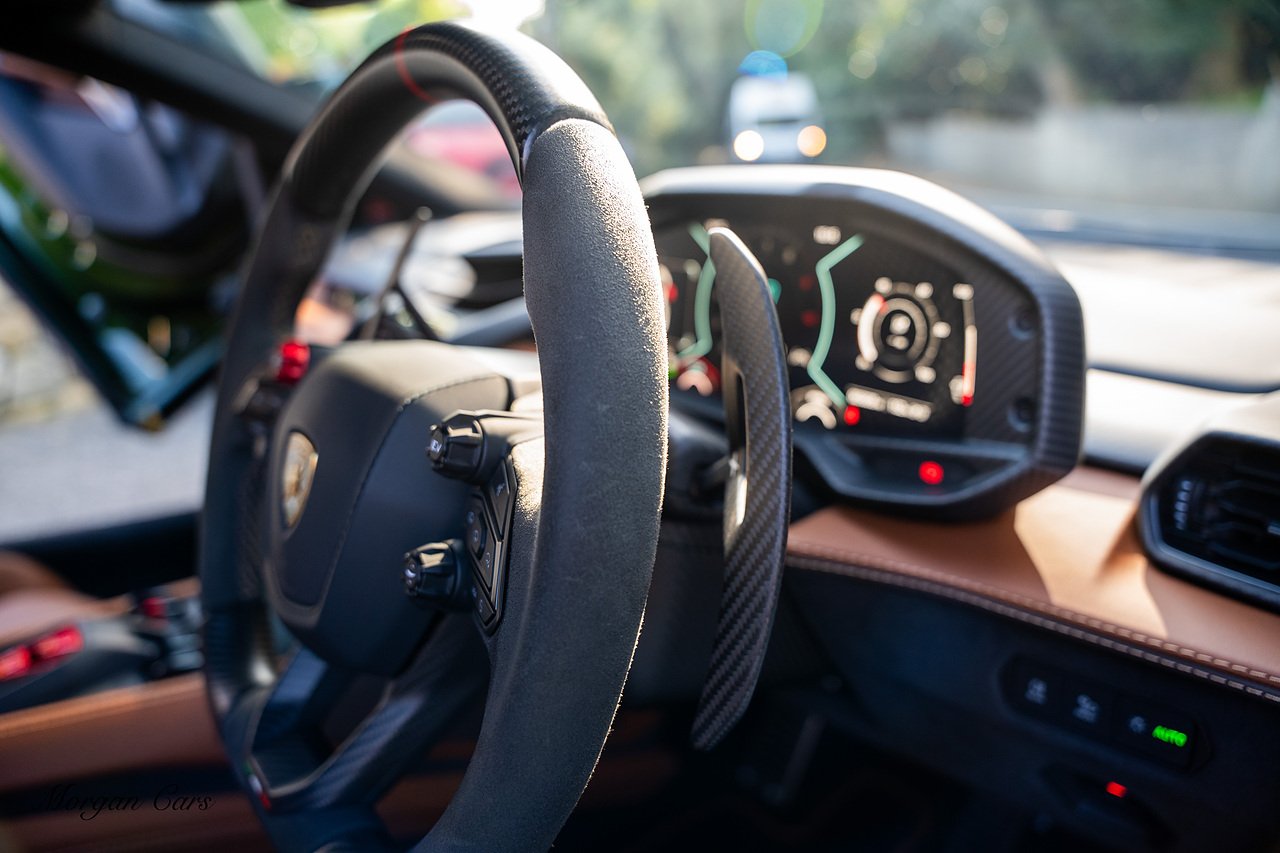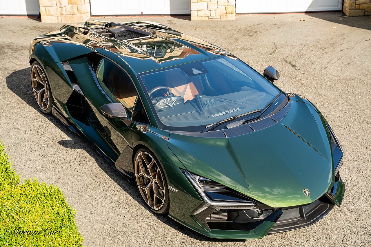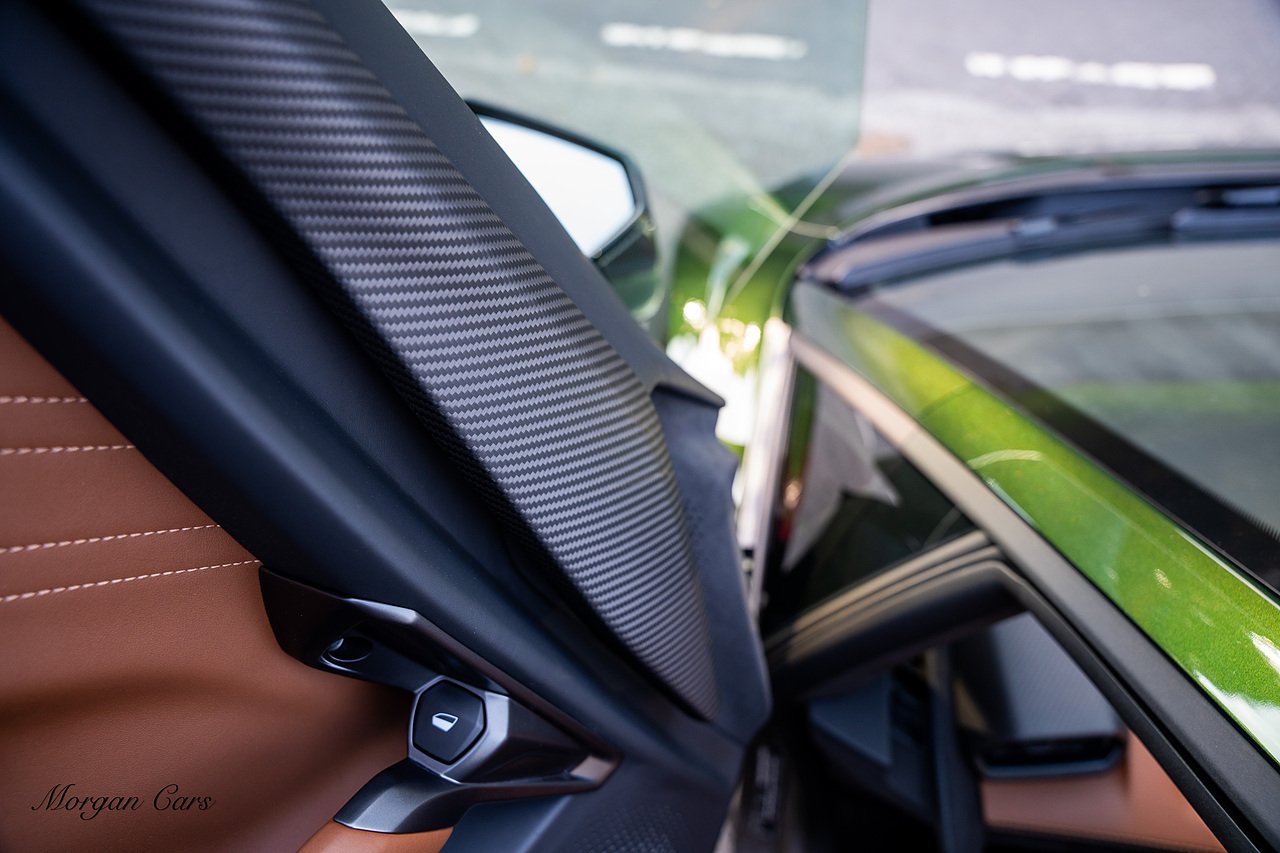 Morgan Cars are proud to present this Stunning Lamborghini Revuelto finished in AD Personam Verdes Ermes Metallic with Full Body Self healing PPF, This Revuelto has Monster Specification which includes full Exterior Carbon Fibre Styling Package with Carbon Fibre engine cover and Additionally the side carbon aero fin in Carbon Fibre , Front Axle Lifting System, Altanero Bronze forged diamond cut alloy wheels 21/22", Full Carbon Fibre interior package, Warranty Extension 5th Year, Headlamps Package, Full Electric Heated seats, Q-Citura on Roof, Exhaust Tailpipes in Satin Black, Rear Reversing Assist camera, Passenger Display, Cupholders package, Lamborghini Embroidery on Headrests, Matt Carbon fibre steering wheel with red 12 O'clock insert,Contrast Stitching in Bronzo Oreadi.
