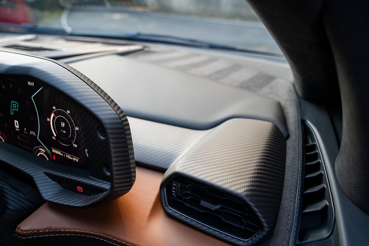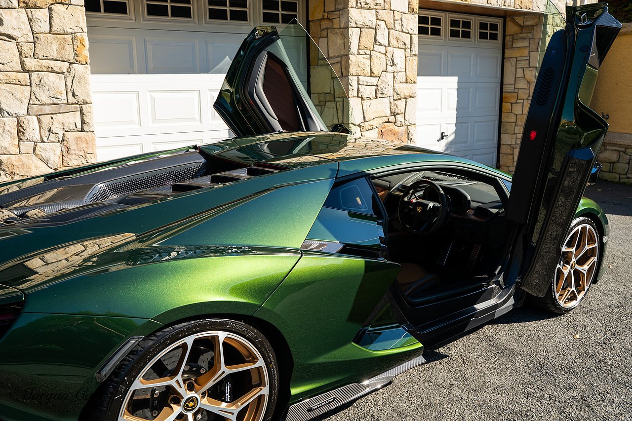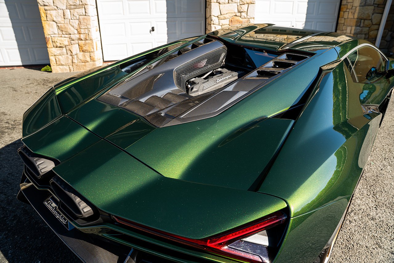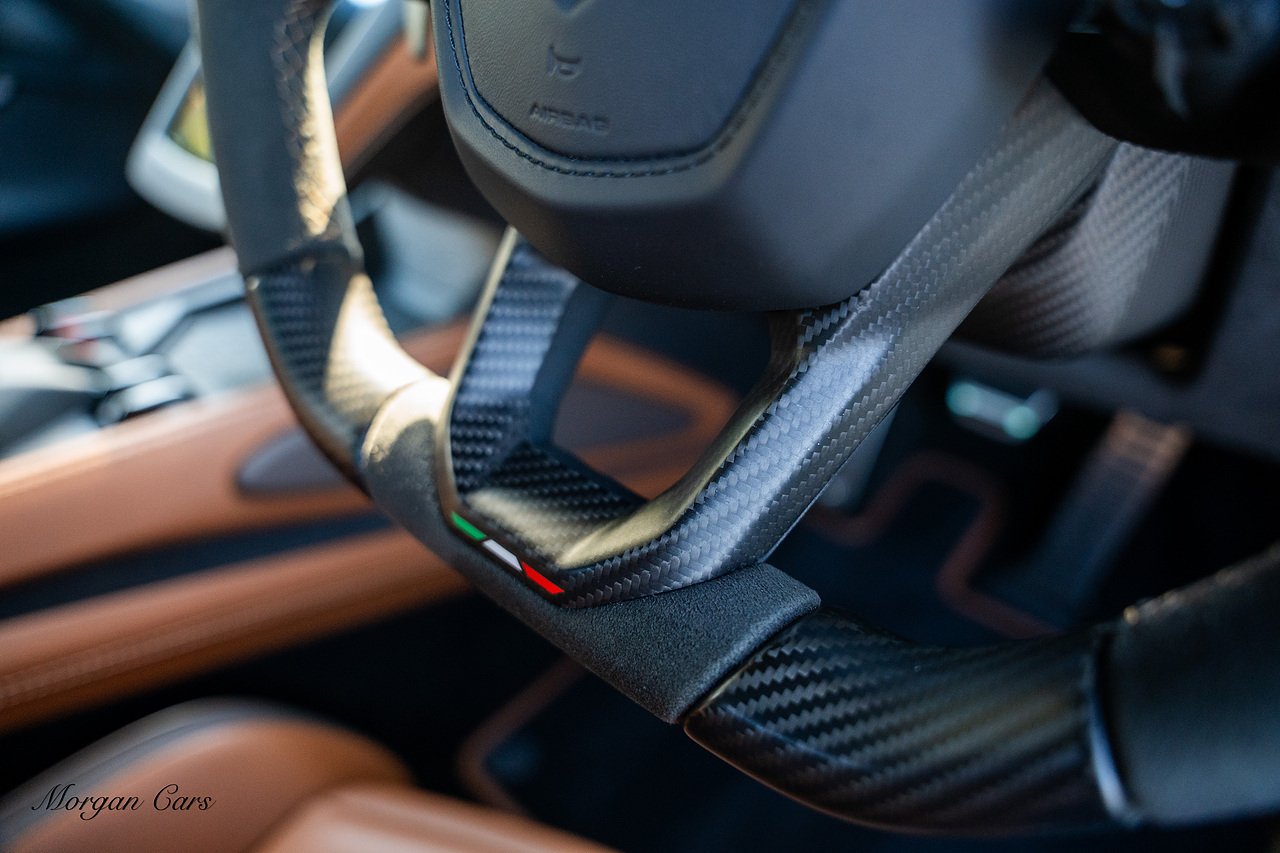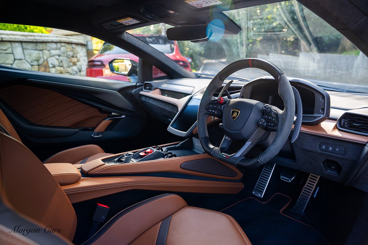 Morgan Cars are proud to present this Stunning Lamborghini Revuelto finished in AD Personam Verdes Ermes Metallic with Full Body Self healing PPF, This Revuelto has Monster Specification which includes full Exterior Carbon Fibre Styling Package with Carbon Fibre engine cover and Additionally the side carbon aero fin in Carbon Fibre , Front Axle Lifting System, Altanero Bronze forged diamond cut alloy wheels 21/22", Full Carbon Fibre interior package, Warranty Extension 5th Year, Headlamps Package, Full Electric Heated seats, Q-Citura on Roof, Exhaust Tailpipes in Satin Black, Rear Reversing Assist camera, Passenger Display, Cupholders package, Lamborghini Embroidery on Headrests, Matt Carbon fibre steering wheel with red 12 O'clock insert,Contrast Stitching in Bronzo Oreadi.