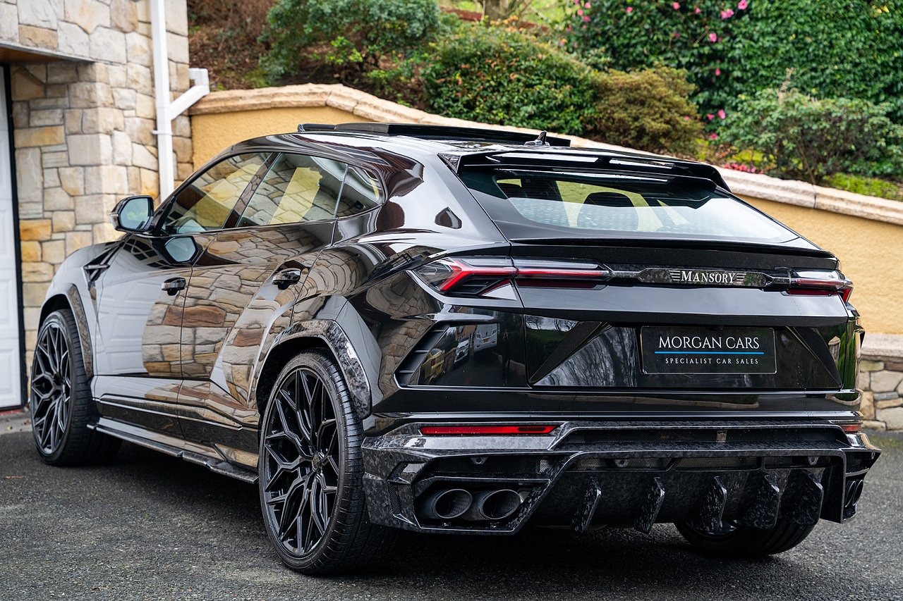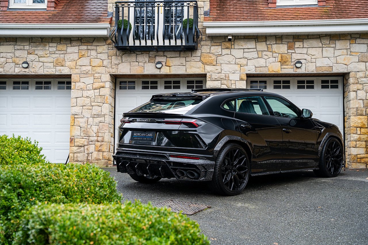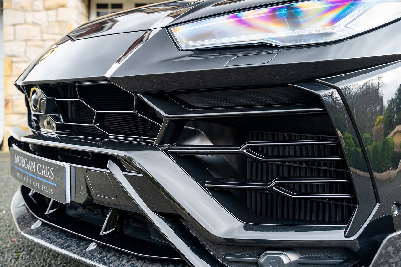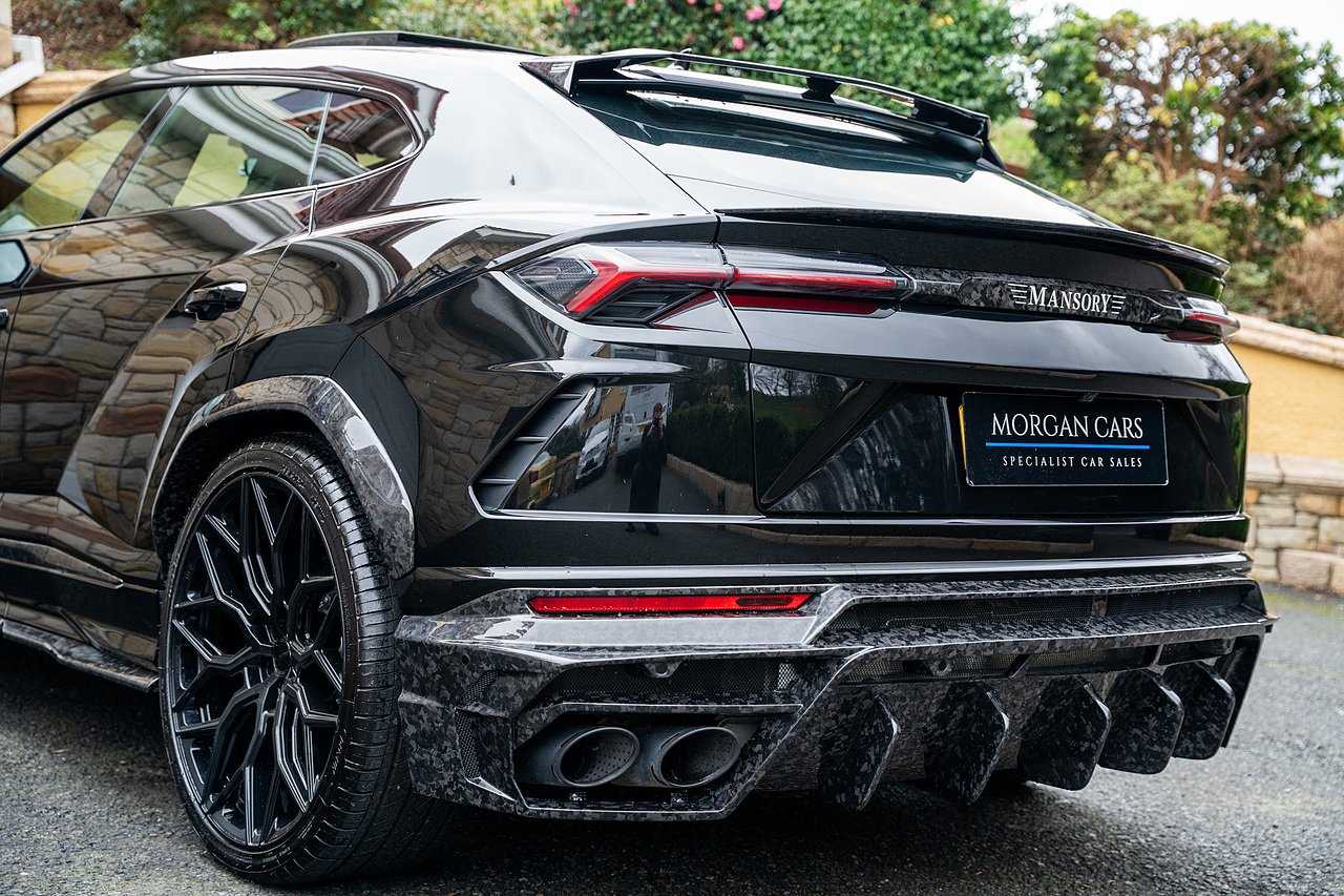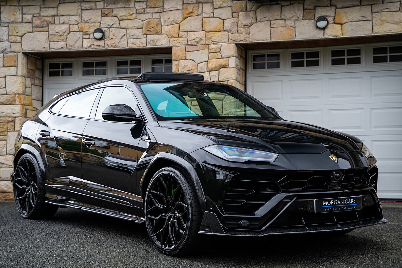 This Lamborghini Urus features a Massive Specification list Complete Mansory Forged Carbon Fibre Exterior Body Kit which involves, Lower Front Splitter, Side Extensions and Side Moulding, Side Vents with Mansory Logo, Wing Mirrors, Complete Rear Diffuser, Upper Boot Spoiler and Upgraded Spoiler, Optional Extra 24" Gloss Black Vossen Style Alloy Wheels In Gloss Black, Full ADAS Package With Heads Up Display, Bang & Olufson Sound System, Panoramic Glass Sunroof | Q Citura Interior in Verde Green, Front Ventilated and Heated seats with Massage Function, Top View Reversing Camera System, Green Painted Brake Calipers, Anima with off road Modes | LED Adaptive headlights | Radar Guided Adaptive Cruise Control, DAB Radio Tuner, Branding Package, Lamborghini LED Headlight, Lamborghini Embroided Headrests in Verde, Gloss Black interior trims, Leather Steering wheel with 12 O'Clock Marker.