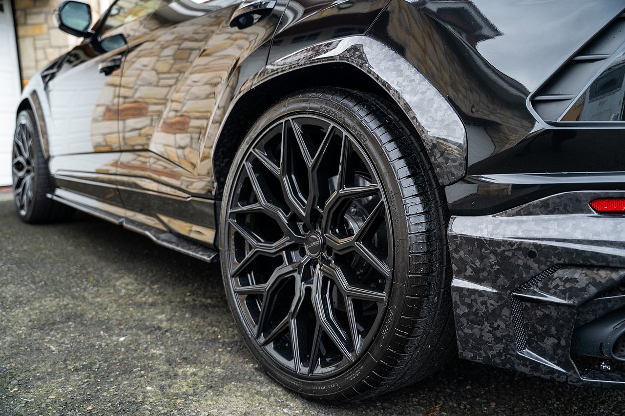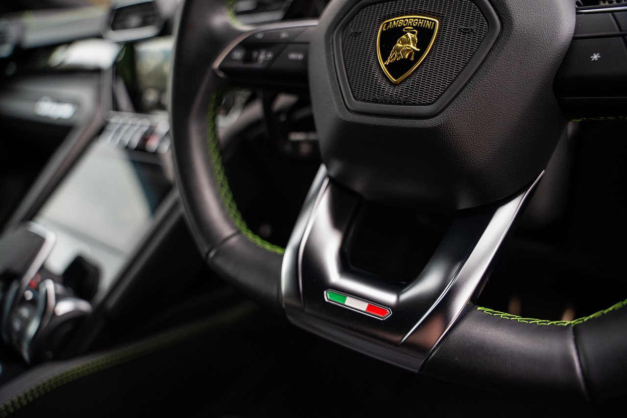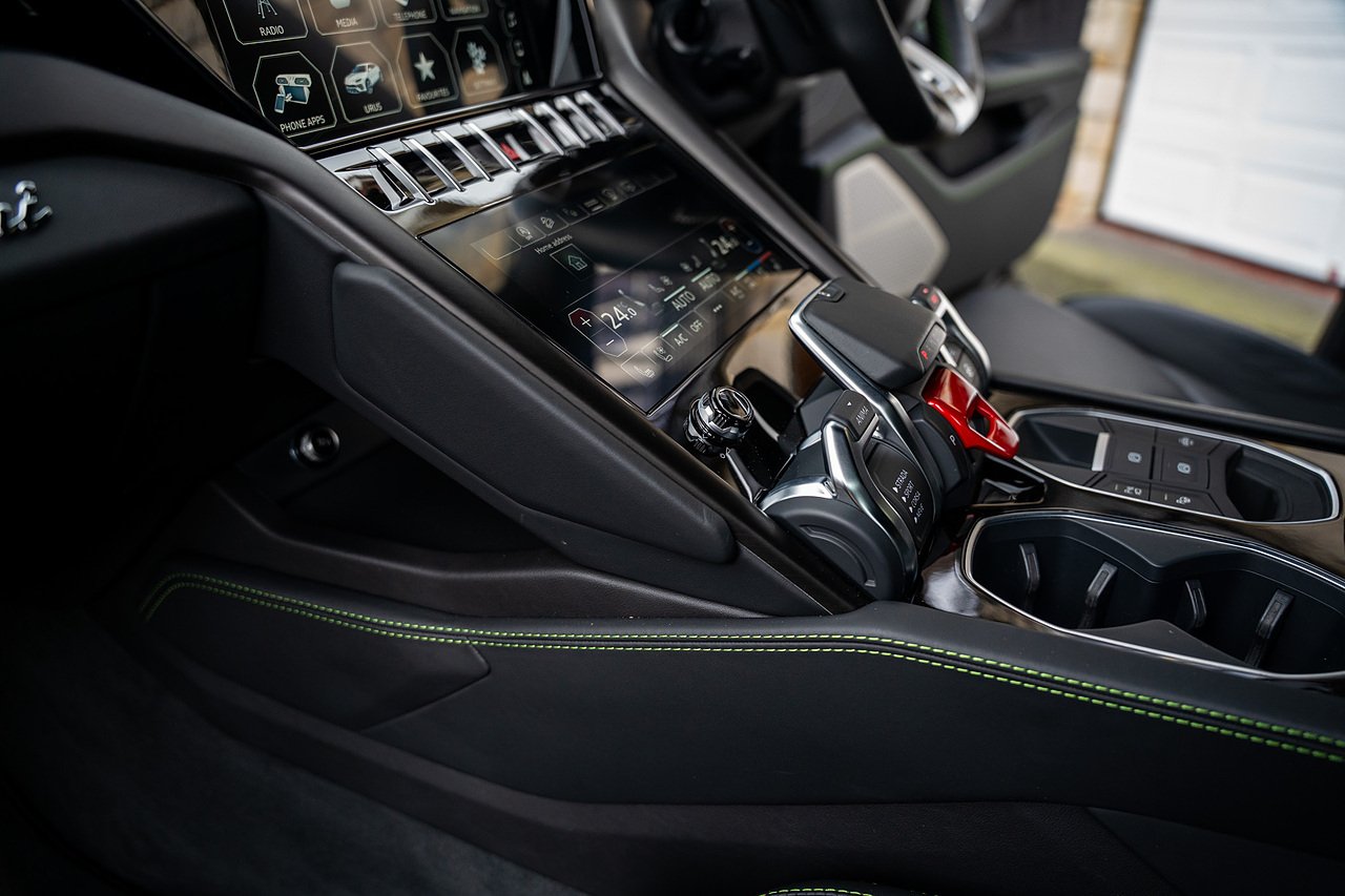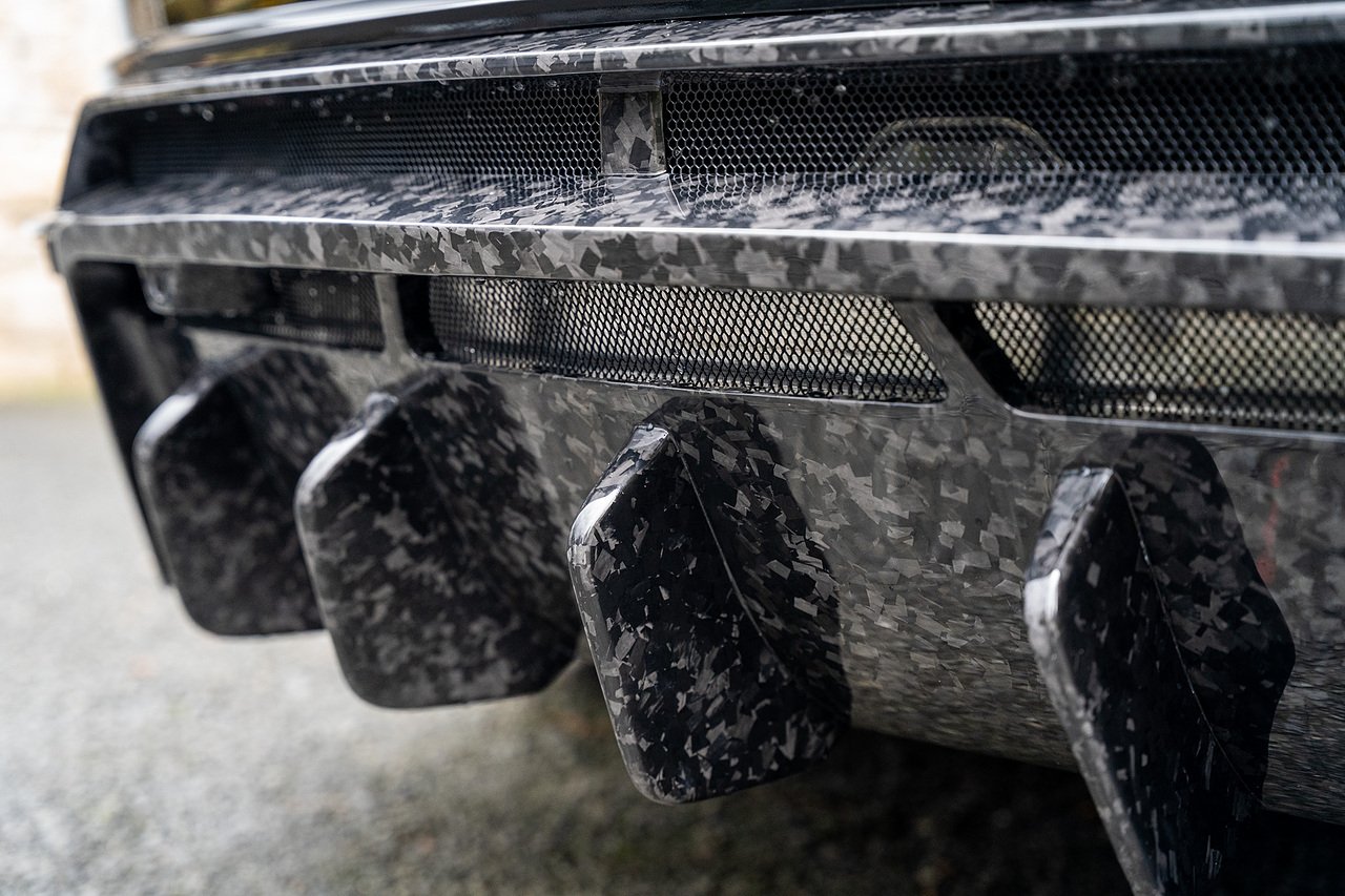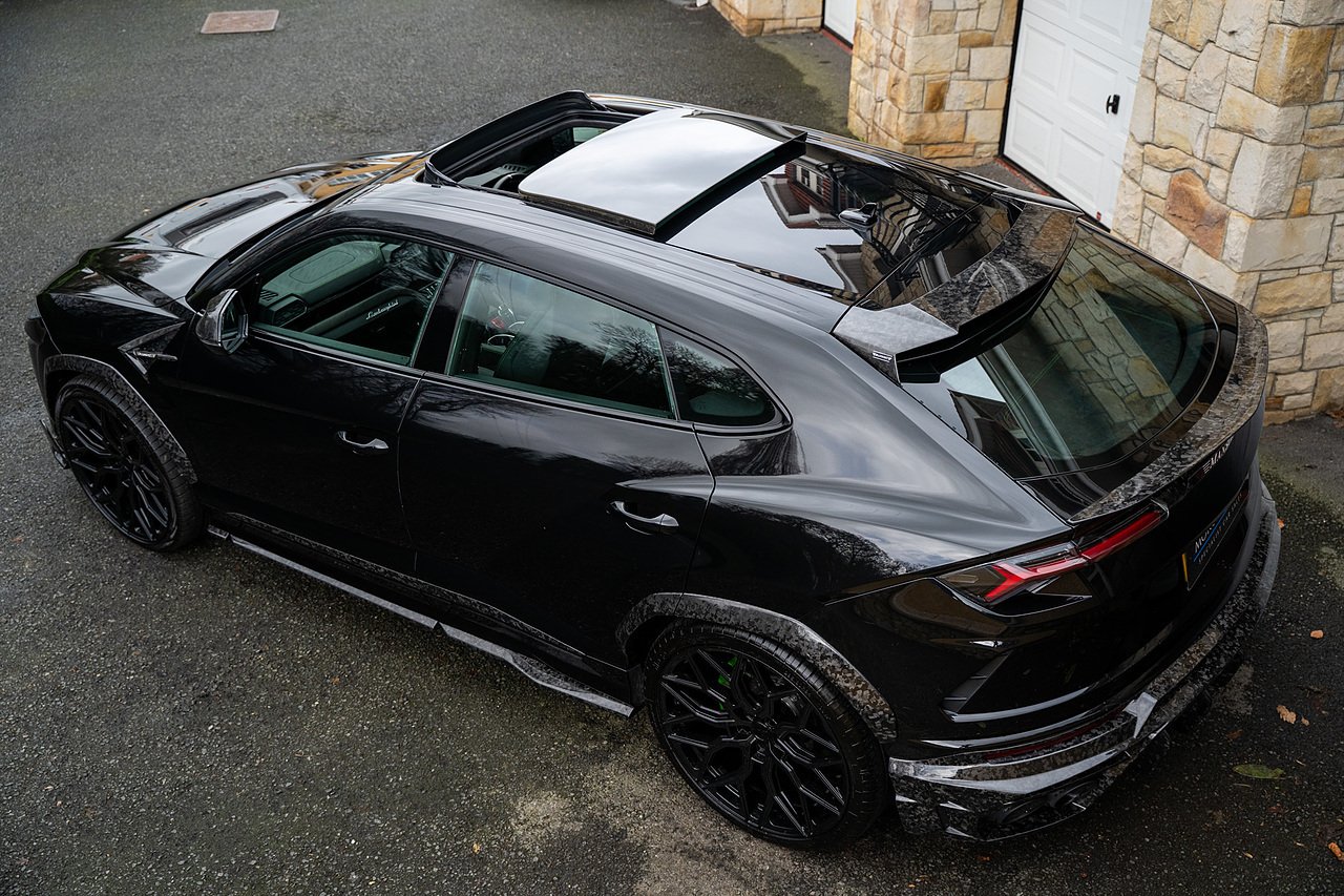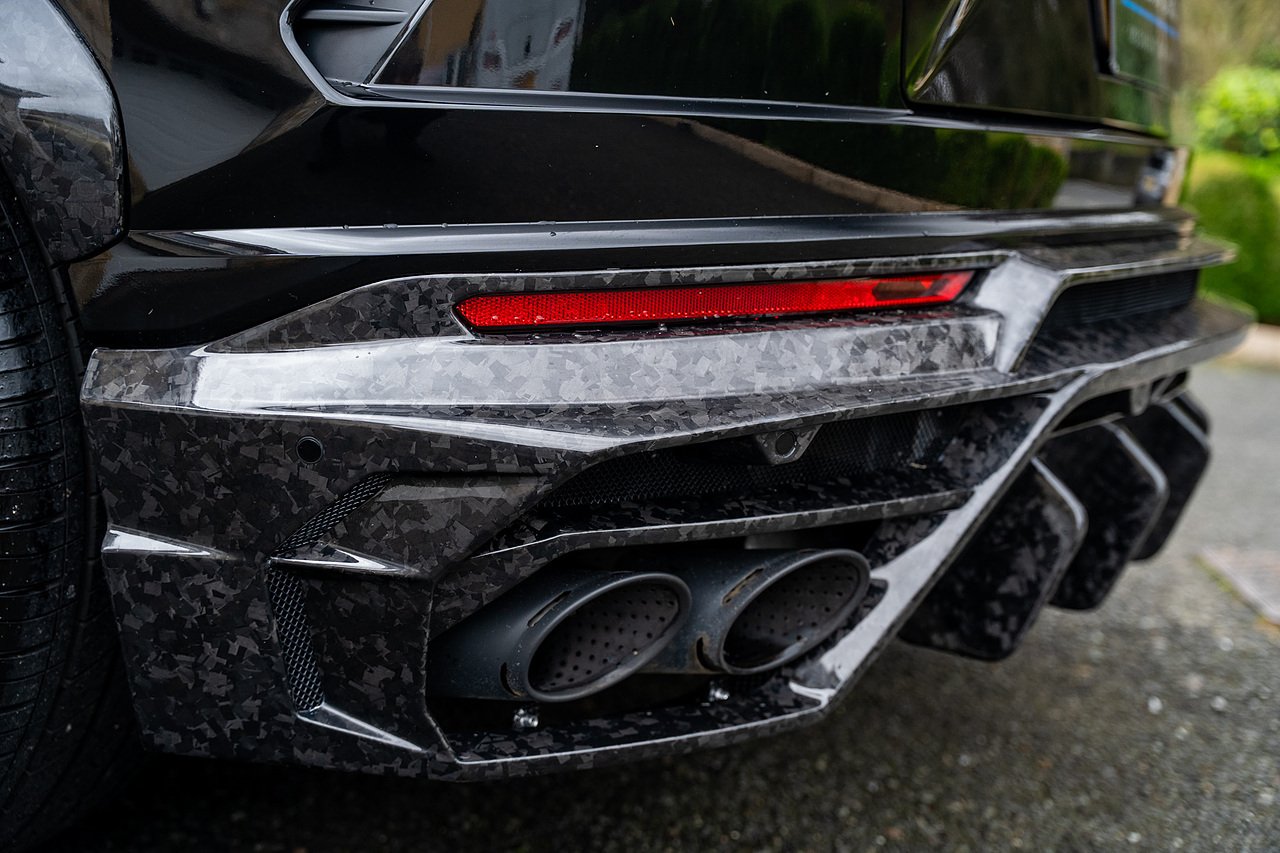 This Lamborghini Urus features a Massive Specification list Complete Mansory Forged Carbon Fibre Exterior Body Kit which involves, Lower Front Splitter, Side Extensions and Side Moulding, Side Vents with Mansory Logo, Wing Mirrors, Complete Rear Diffuser, Upper Boot Spoiler and Upgraded Spoiler, Optional Extra 24" Gloss Black Vossen Style Alloy Wheels In Gloss Black, Full ADAS Package With Heads Up Display, Bang & Olufson Sound System, Panoramic Glass Sunroof | Q Citura Interior in Verde Green, Front Ventilated and Heated seats with Massage Function, Top View Reversing Camera System, Green Painted Brake Calipers, Anima with off road Modes | LED Adaptive headlights | Radar Guided Adaptive Cruise Control, DAB Radio Tuner, Branding Package, Lamborghini LED Headlight, Lamborghini Embroided Headrests in Verde, Gloss Black interior trims, Leather Steering wheel with 12 O'Clock Marker.