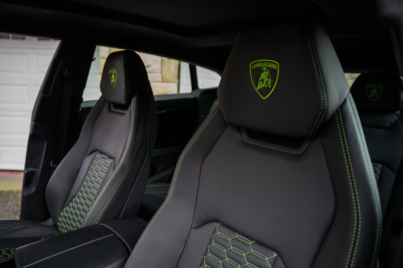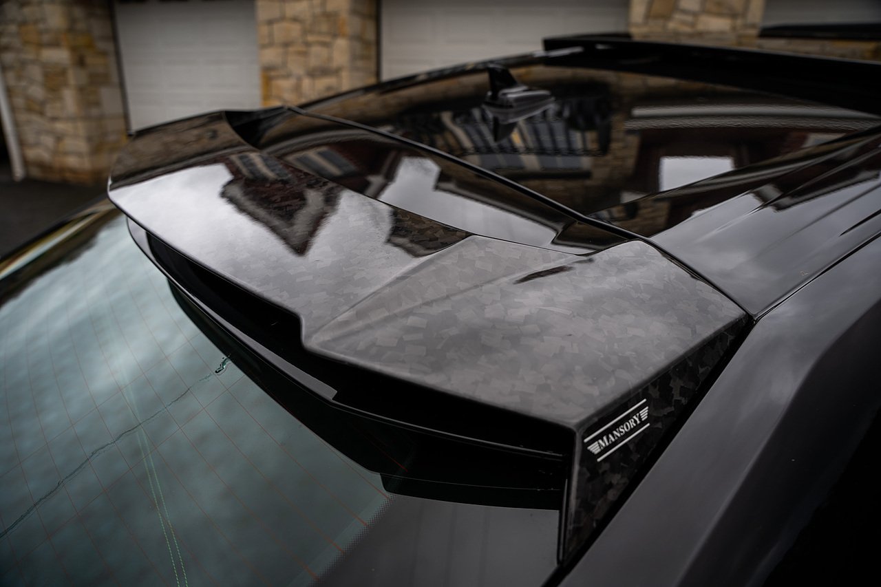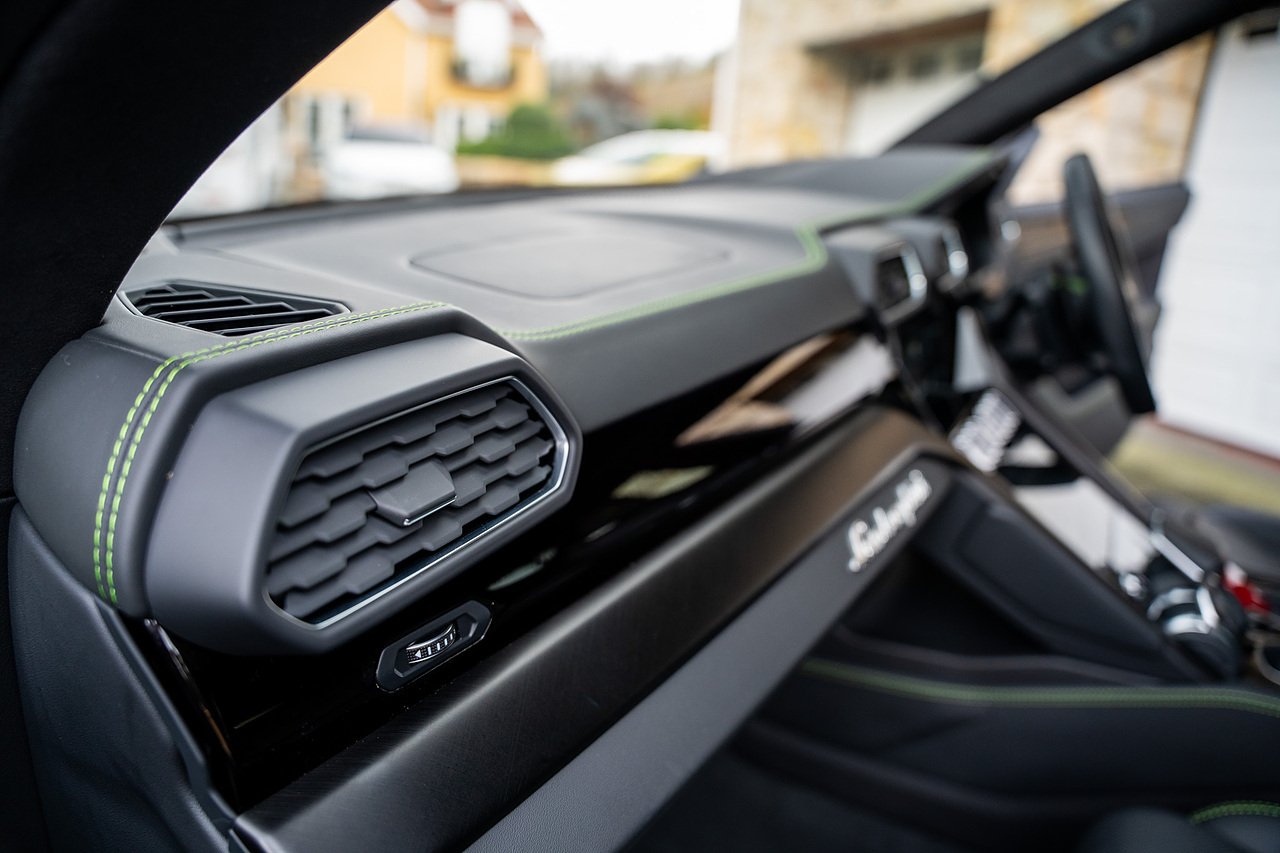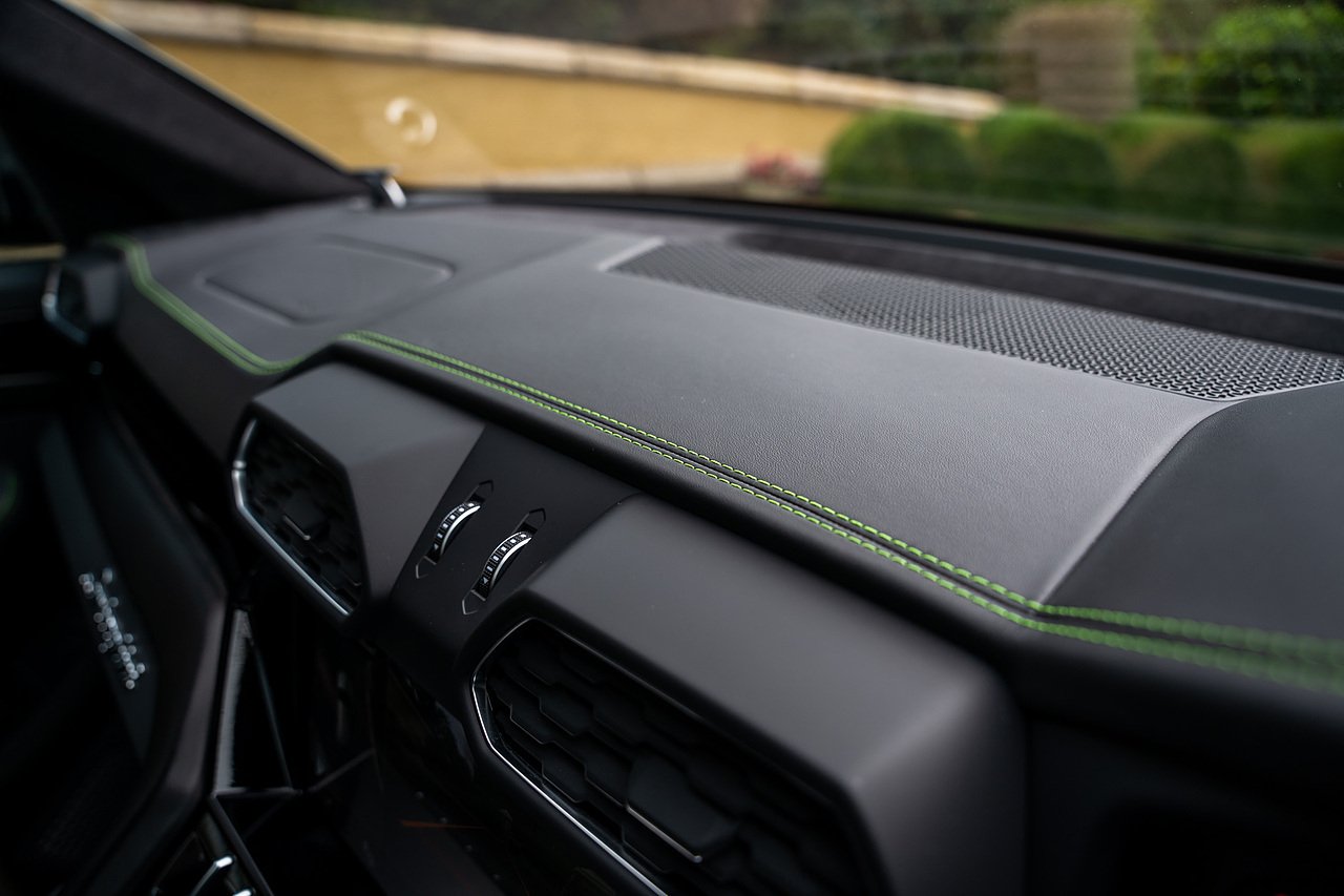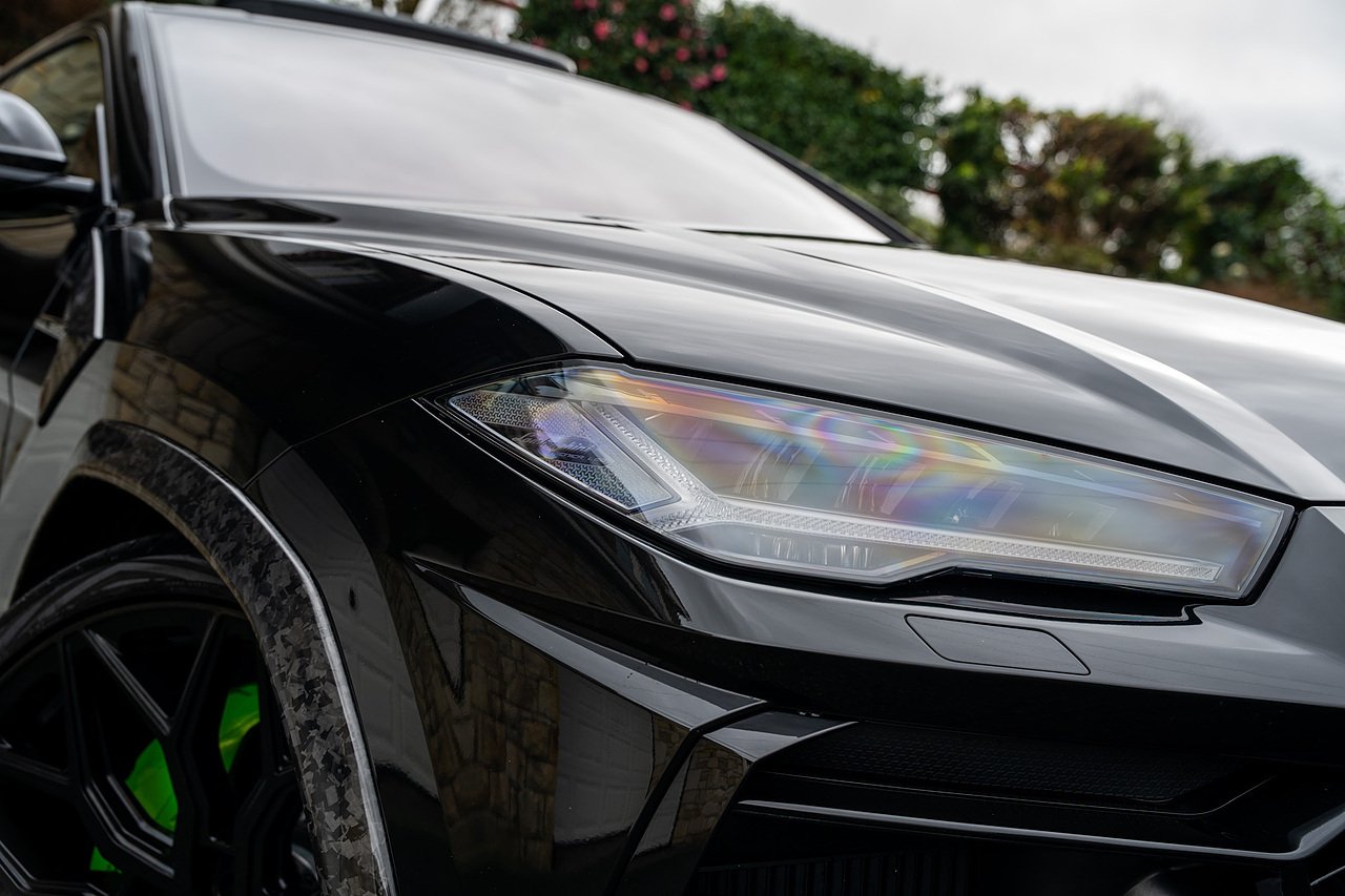 This Lamborghini Urus features a Massive Specification list Complete Mansory Forged Carbon Fibre Exterior Body Kit which involves, Lower Front Splitter, Side Extensions and Side Moulding, Side Vents with Mansory Logo, Wing Mirrors, Complete Rear Diffuser, Upper Boot Spoiler and Upgraded Spoiler, Optional Extra 24" Gloss Black Vossen Style Alloy Wheels In Gloss Black, Full ADAS Package With Heads Up Display, Bang & Olufson Sound System, Panoramic Glass Sunroof | Q Citura Interior in Verde Green, Front Ventilated and Heated seats with Massage Function, Top View Reversing Camera System, Green Painted Brake Calipers, Anima with off road Modes | LED Adaptive headlights | Radar Guided Adaptive Cruise Control, DAB Radio Tuner, Branding Package, Lamborghini LED Headlight, Lamborghini Embroided Headrests in Verde, Gloss Black interior trims, Leather Steering wheel with 12 O'Clock Marker.