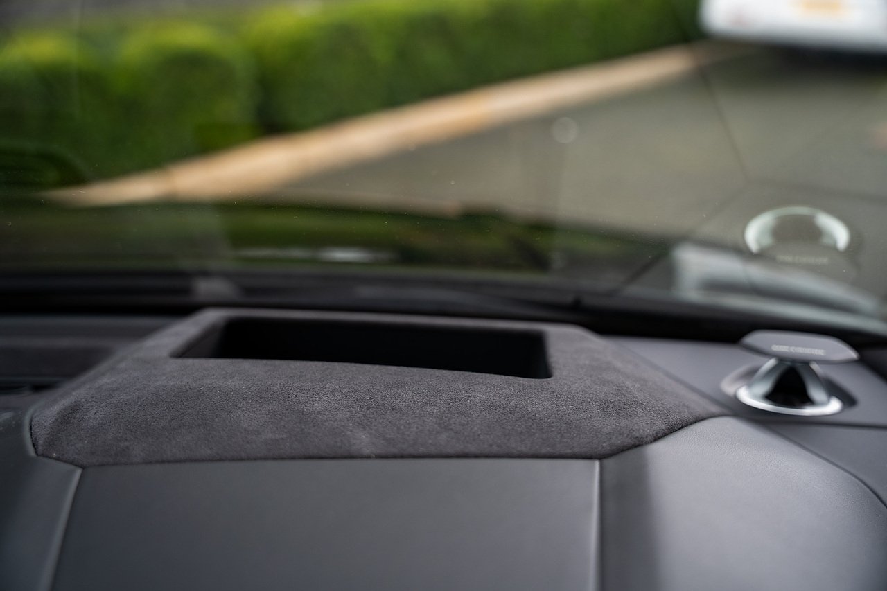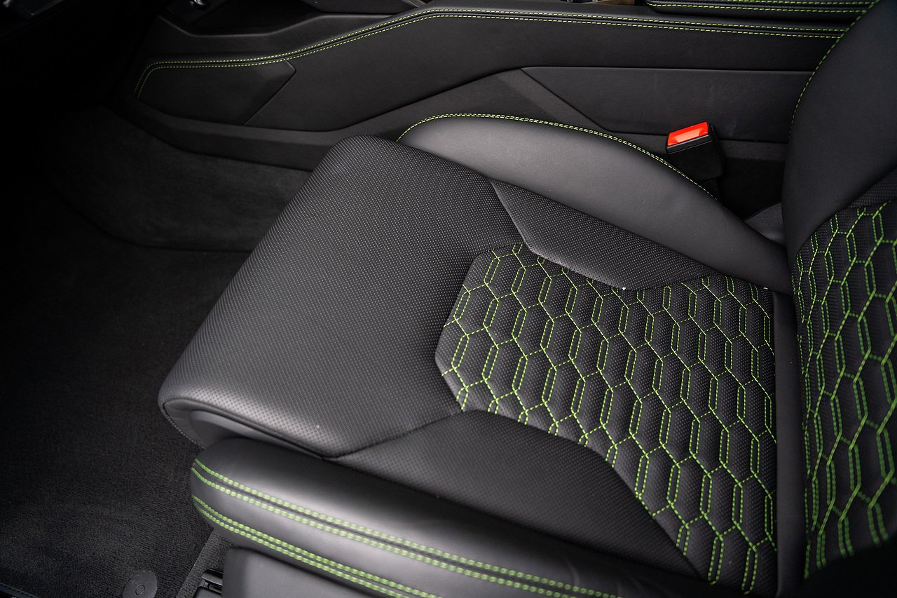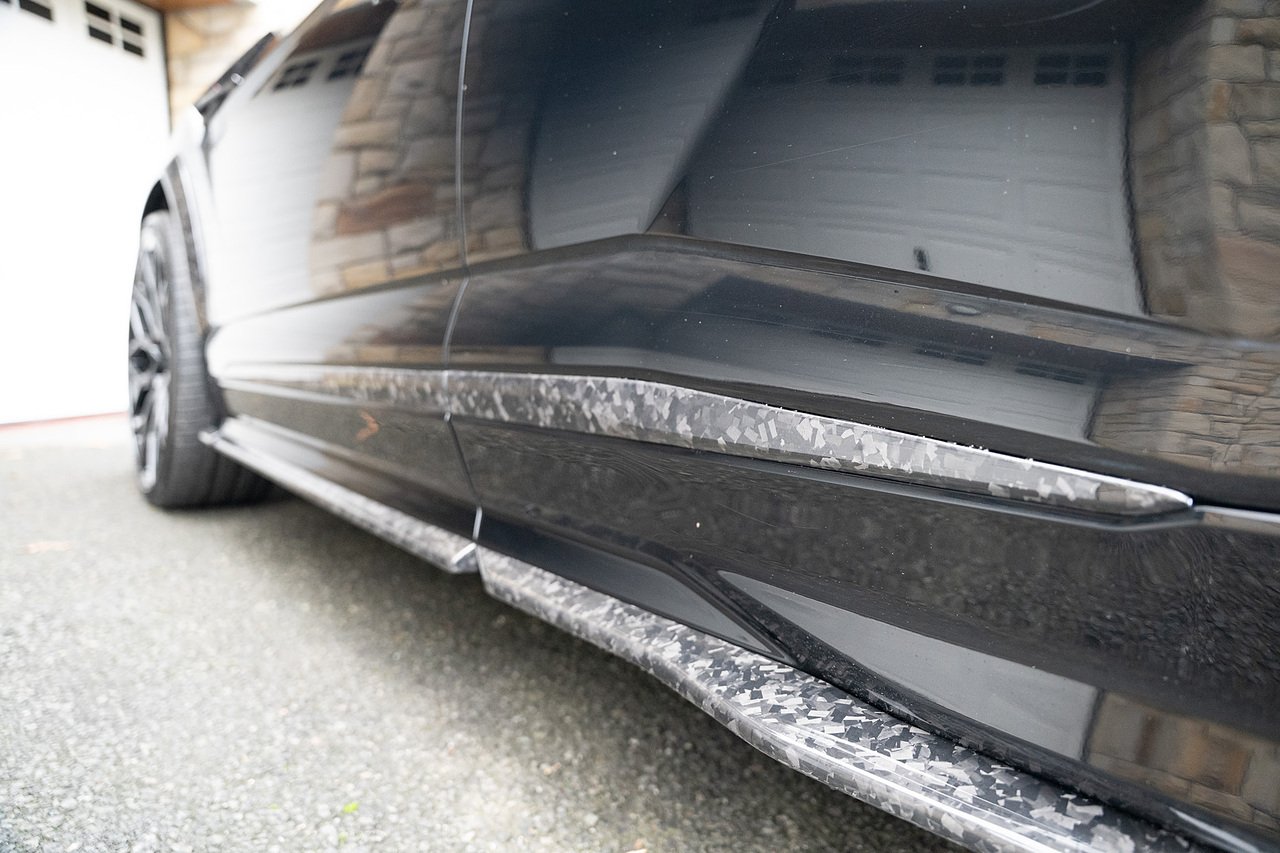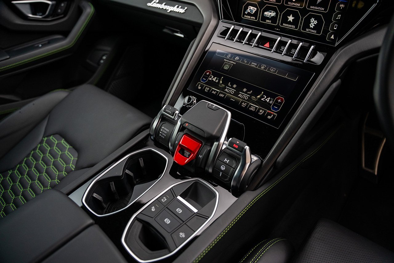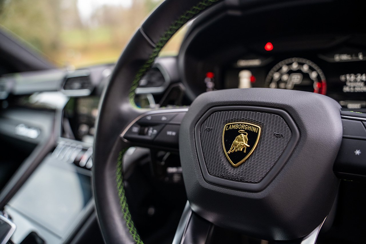 This Lamborghini Urus features a Massive Specification list Complete Mansory Forged Carbon Fibre Exterior Body Kit which involves, Lower Front Splitter, Side Extensions and Side Moulding, Side Vents with Mansory Logo, Wing Mirrors, Complete Rear Diffuser, Upper Boot Spoiler and Upgraded Spoiler, Optional Extra 24" Gloss Black Vossen Style Alloy Wheels In Gloss Black, Full ADAS Package With Heads Up Display, Bang & Olufson Sound System, Panoramic Glass Sunroof | Q Citura Interior in Verde Green, Front Ventilated and Heated seats with Massage Function, Top View Reversing Camera System, Green Painted Brake Calipers, Anima with off road Modes | LED Adaptive headlights | Radar Guided Adaptive Cruise Control, DAB Radio Tuner, Branding Package, Lamborghini LED Headlight, Lamborghini Embroided Headrests in Verde, Gloss Black interior trims, Leather Steering wheel with 12 O'Clock Marker.
