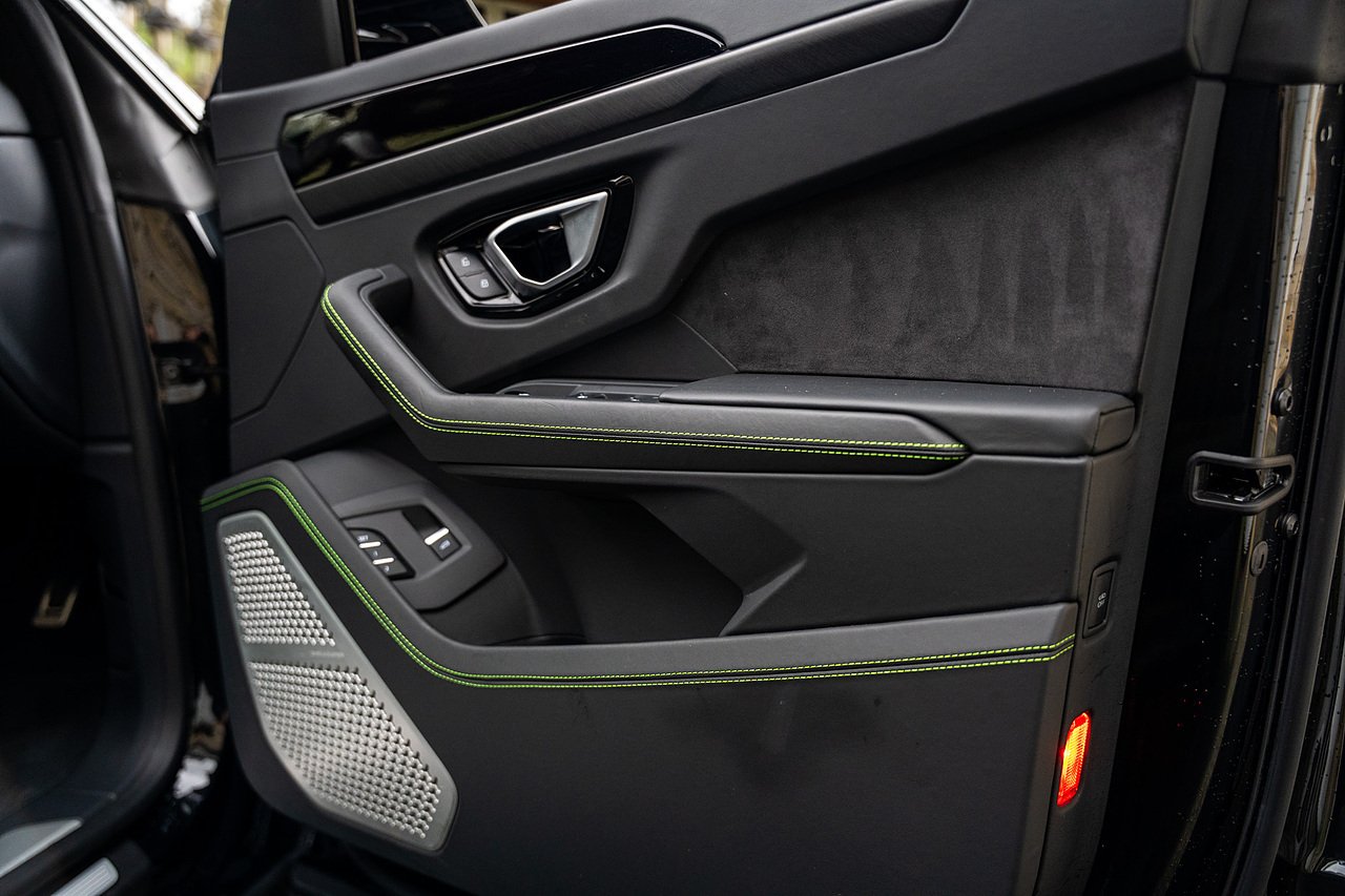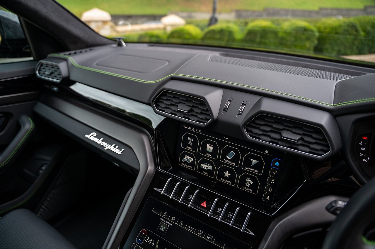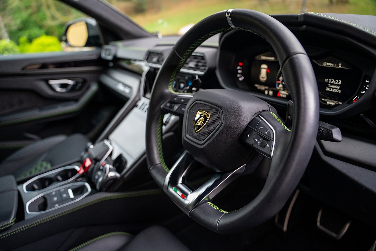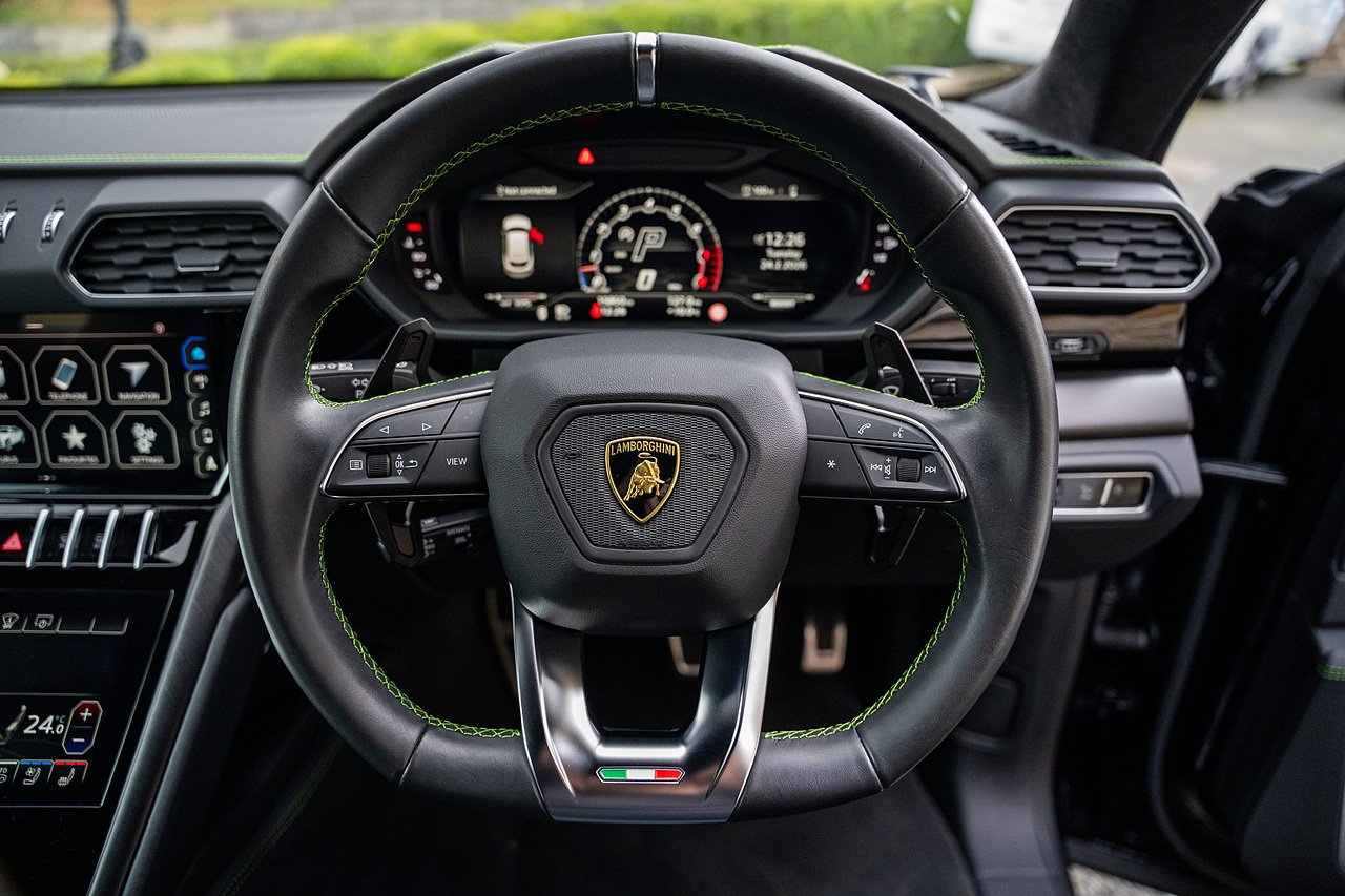Morgan Cars are Proud to Present this Massive Spec Lamborghini Urus Finished in Nero Helene with Full Black leather interior and Verde Green Stitching with Gloss Black Interior Trim.