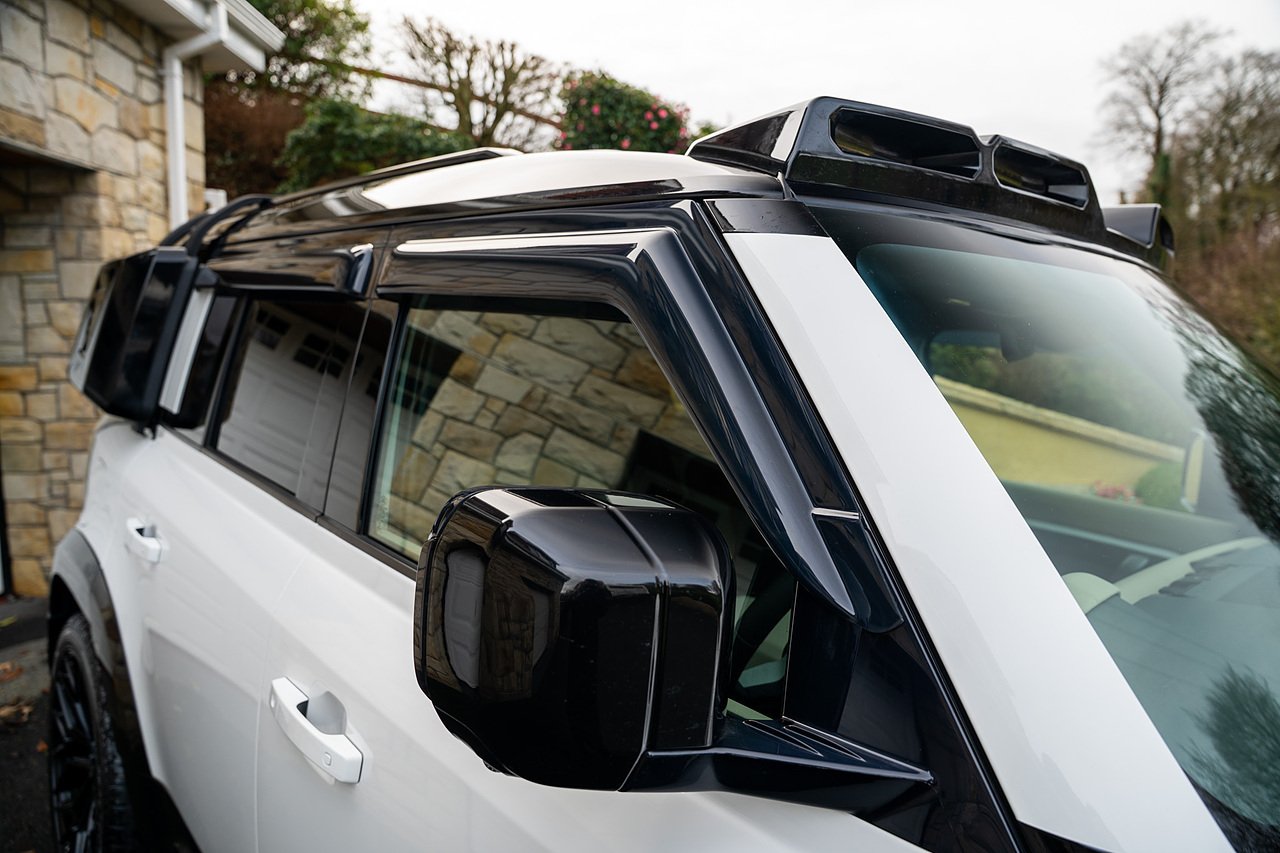 The Specification of this example Includes, Complete Exterior Explorer Pack with Ladder, Side Box, Upper Light Bar and Gloss Black Arches, Front Splitter with Lower LED Function, Rear Boot Spoiler, Gloss Black Spare Wheel Cover, Complete Gloss Black Lower Section Colour Code Throughout, Upgraded Gloss Black Vented Bonnet Vents, Gloss Black Side Steps, Height Adjustable Air Suspension, Meridian Surround Sound, Optional Extra 23' Arura Alloy Wheels and Tyres, Opening Tilt and Slide Panoramic Glass Roof, Rear Reversing Camera with 360 Surround View Assist, Detachable Tow Bar, Heated Front Seating, Apple/Android Car Play, Gloss Black Mirror Covers, Wind Deflectors, DAB Digital Radio, Heated multifunction steering wheel, Adjustable Rear Suspension, Climate Control.