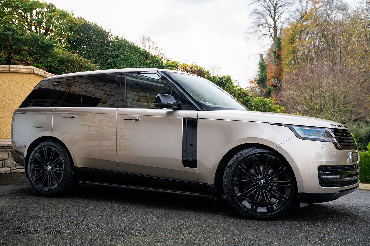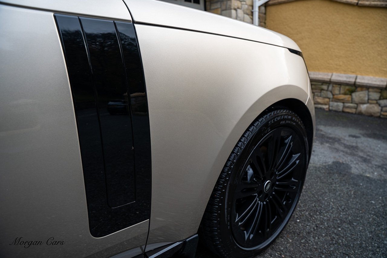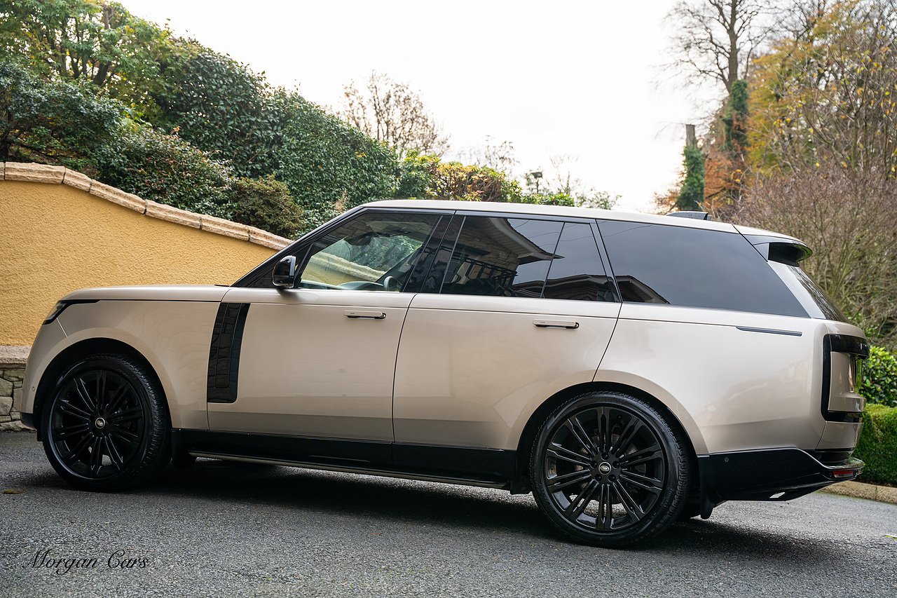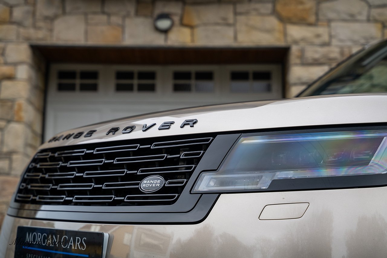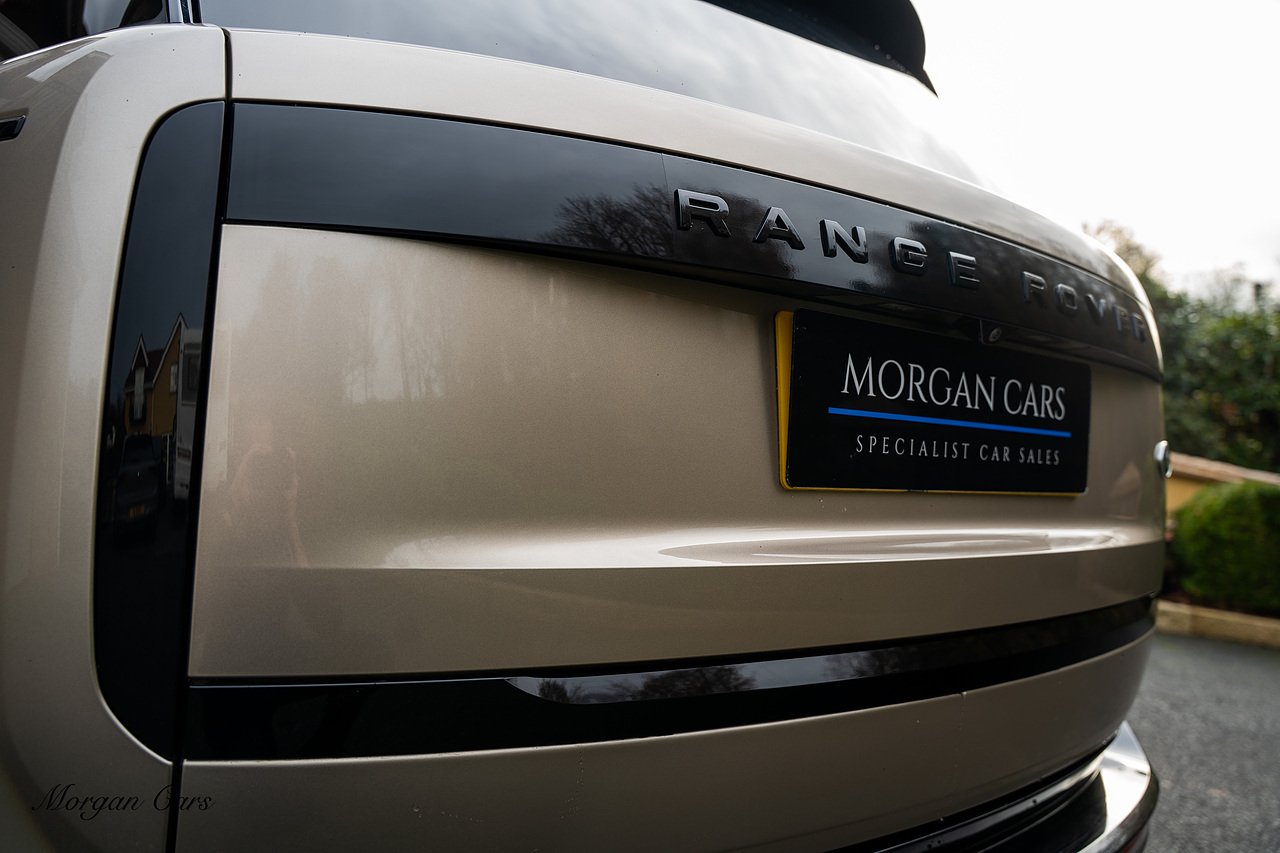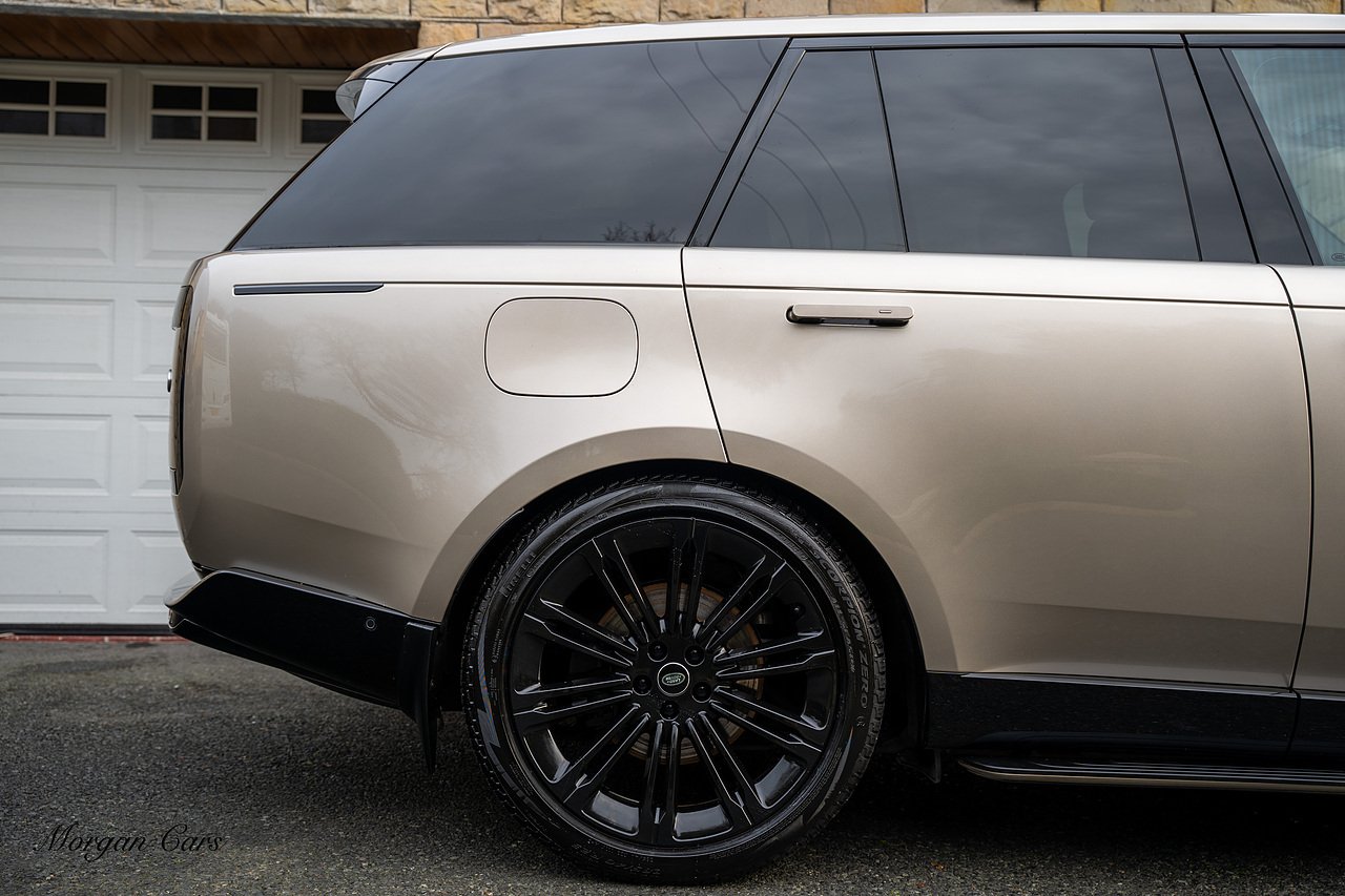 Morgan Cars are proud to present this Range Rover D300 SE finished in stunning Batumi Gold Metallic with Full Ebony leather interior | This Range Rover is a 1 owner vehicle from new with a full Land Rover Service history and is specified with 23" Black Multispoke wheels as pictured as an optional extra or 21" Multispoke alloy wheels in black with polished face, Panoramic Fixed glass sunroof, Piano Black wood interior trim, Meridian 3D Surround sound system, Privacy Glass, 360 Surround view camera system, Gloss Black lower half styling, Fixed side steps, Heated Multifunction steering wheel, Self levelling height adjustable air suspension system.