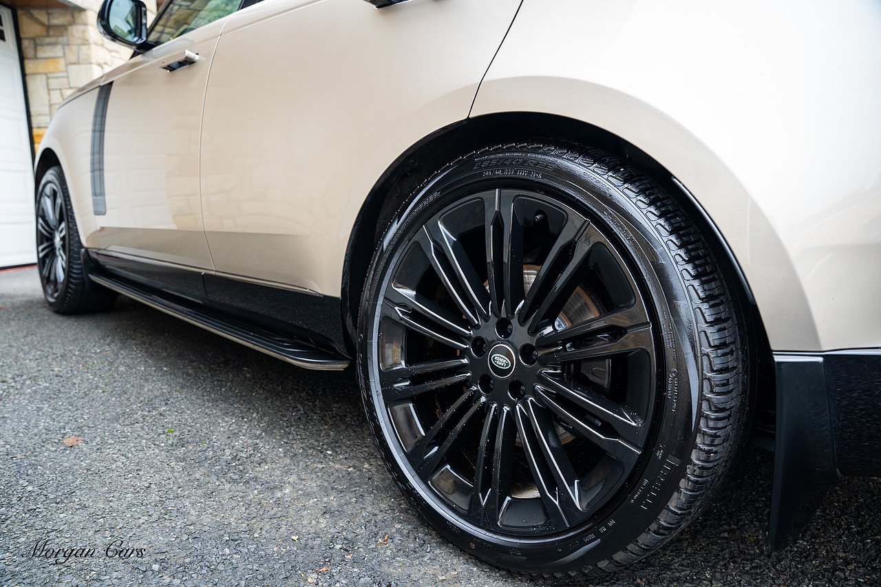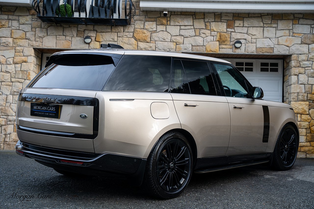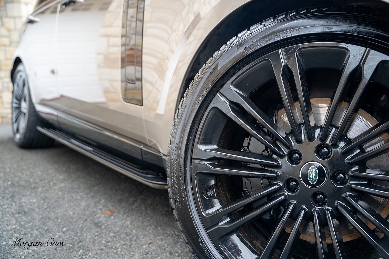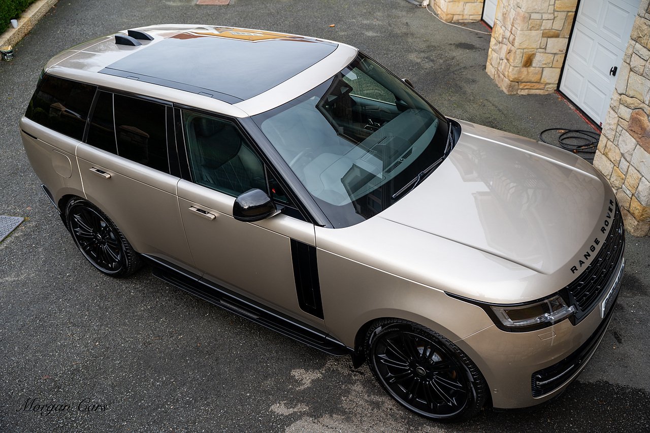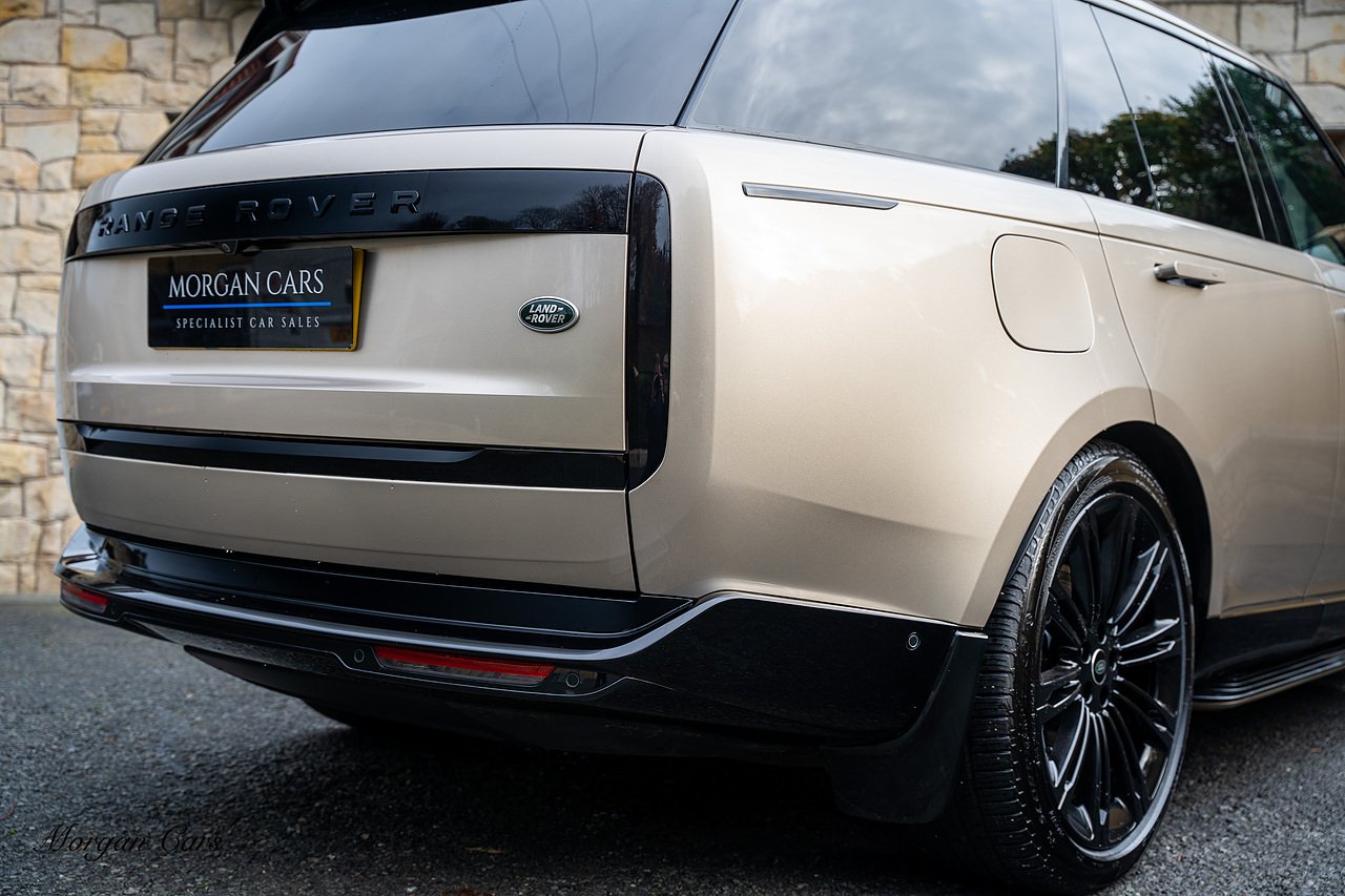 Morgan Cars are proud to present this Range Rover D300 SE finished in stunning Batumi Gold Metallic with Full Ebony leather interior | This Range Rover is a 1 owner vehicle from new with a full Land Rover Service history and is specified with 23" Black Multispoke wheels as pictured as an optional extra or 21" Multispoke alloy wheels in black with polished face, Panoramic Fixed glass sunroof, Piano Black wood interior trim, Meridian 3D Surround sound system, Privacy Glass, 360 Surround view camera system, Gloss Black lower half styling, Fixed side steps, Heated Multifunction steering wheel, Self levelling height adjustable air suspension system.