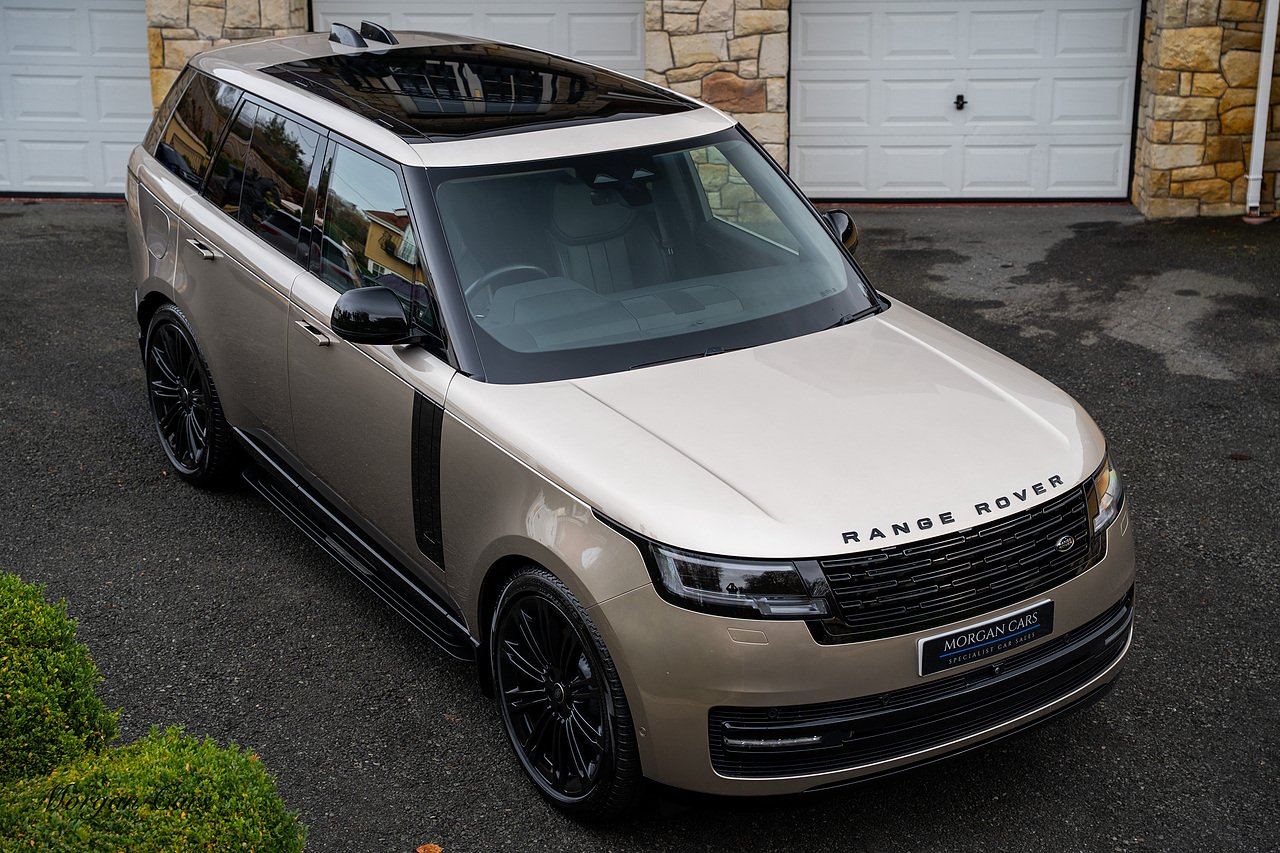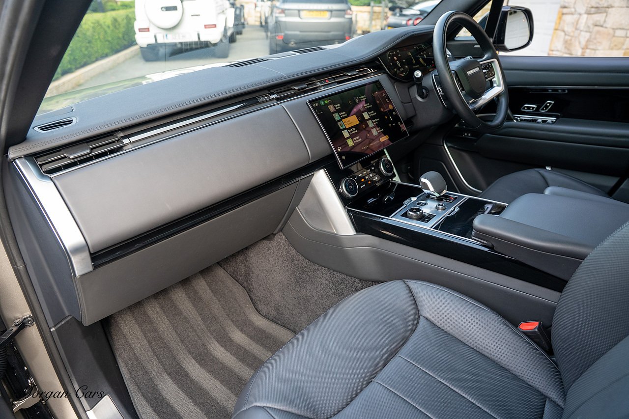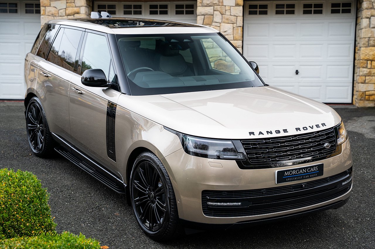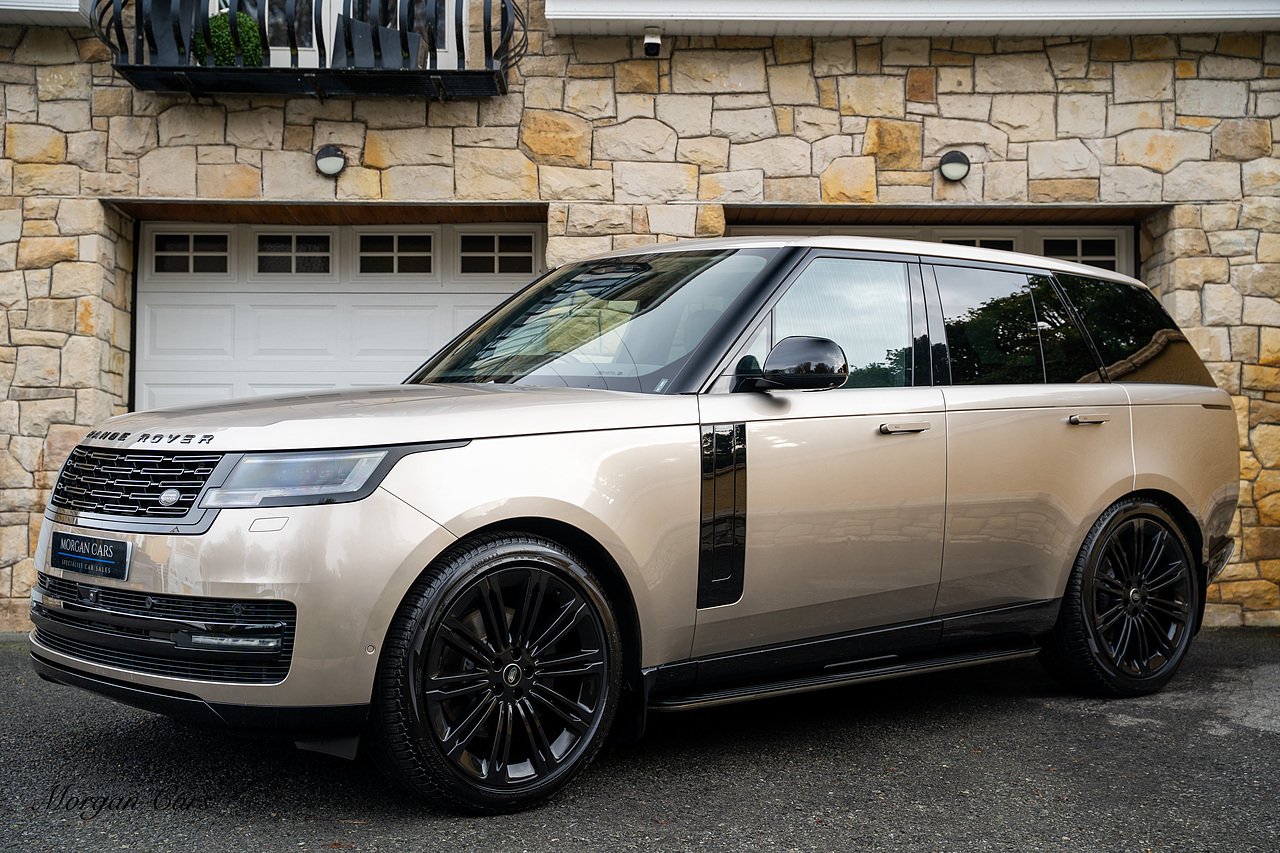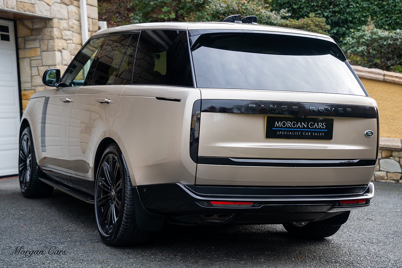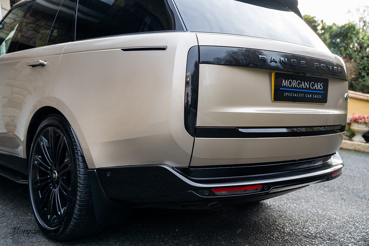 Morgan Cars are proud to present this Range Rover D300 SE finished in stunning Batumi Gold Metallic with Full Ebony leather interior | This Range Rover is a 1 owner vehicle from new with a full Land Rover Service history and is specified with 23" Black Multispoke wheels as pictured as an optional extra or 21" Multispoke alloy wheels in black with polished face, Panoramic Fixed glass sunroof, Piano Black wood interior trim, Meridian 3D Surround sound system, Privacy Glass, 360 Surround view camera system, Gloss Black lower half styling, Fixed side steps, Heated Multifunction steering wheel, Self levelling height adjustable air suspension system.