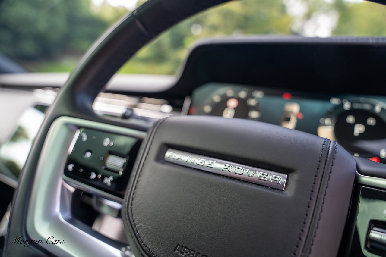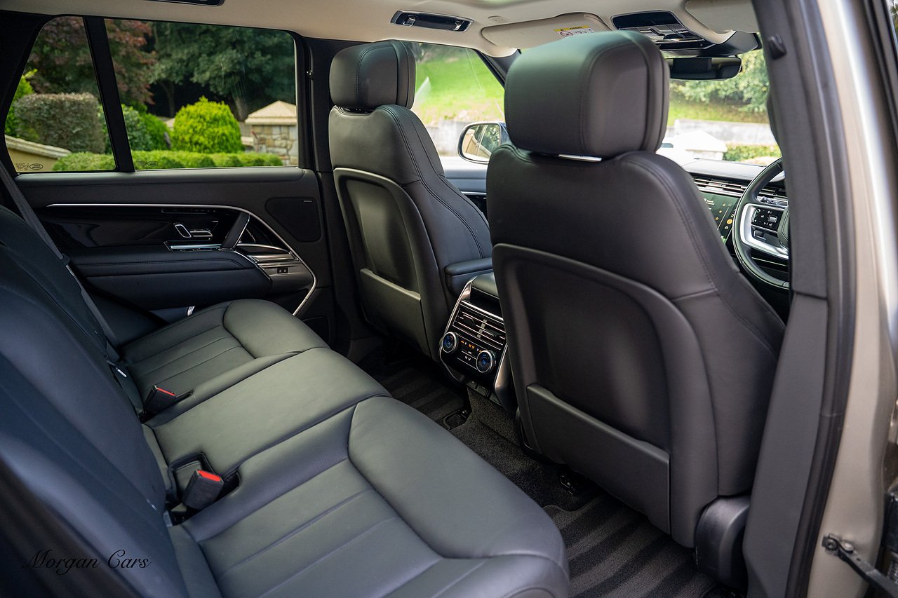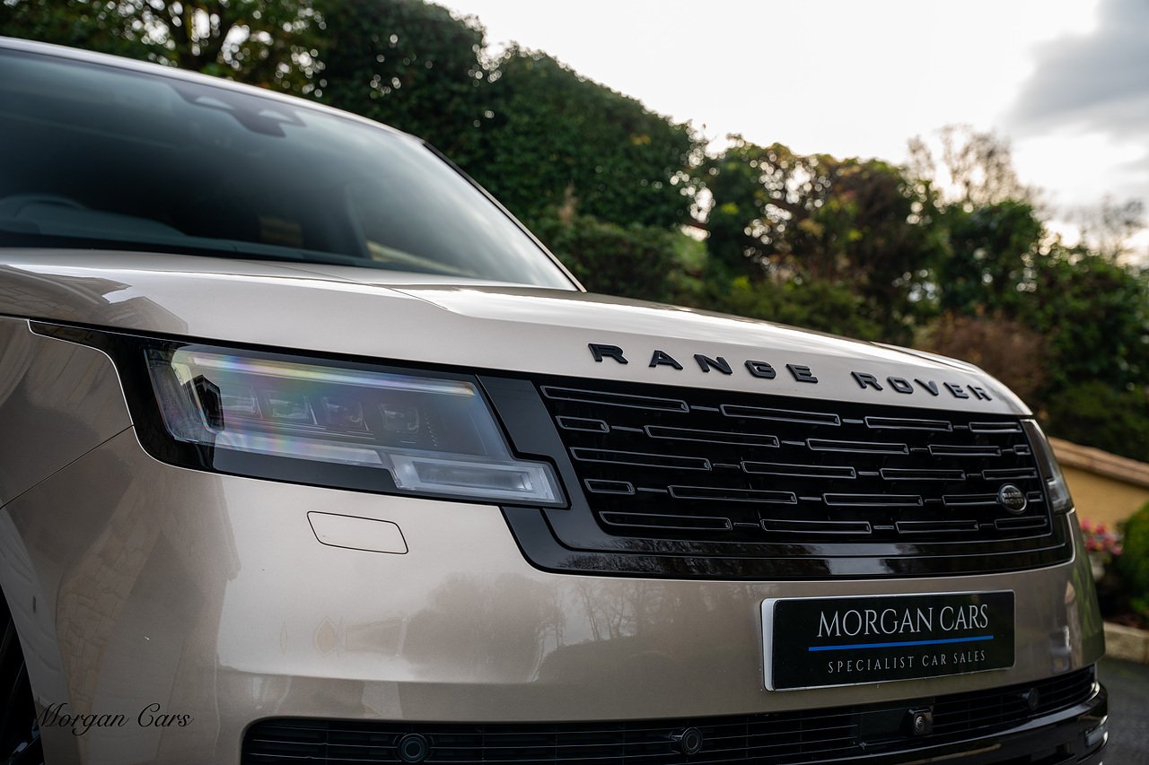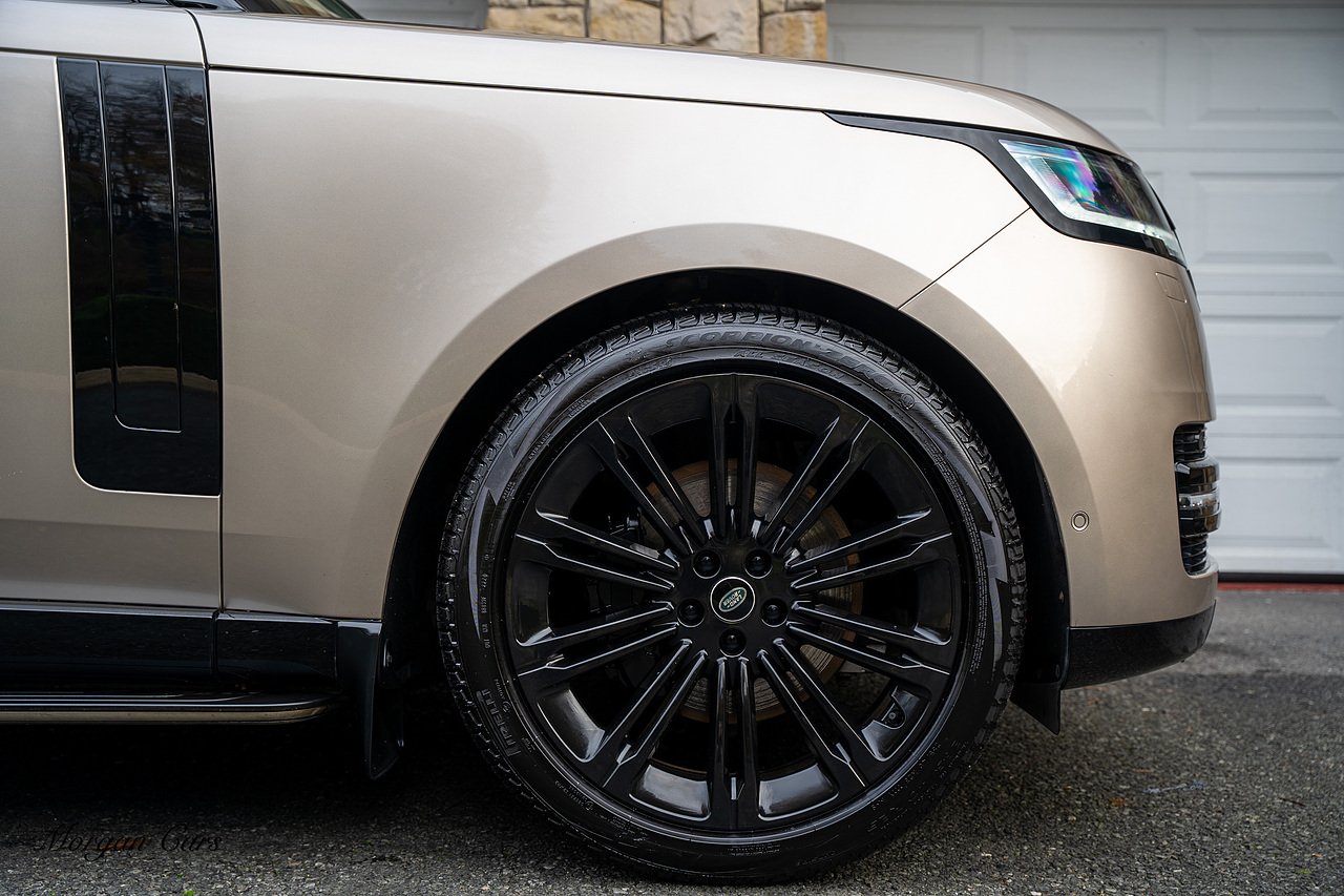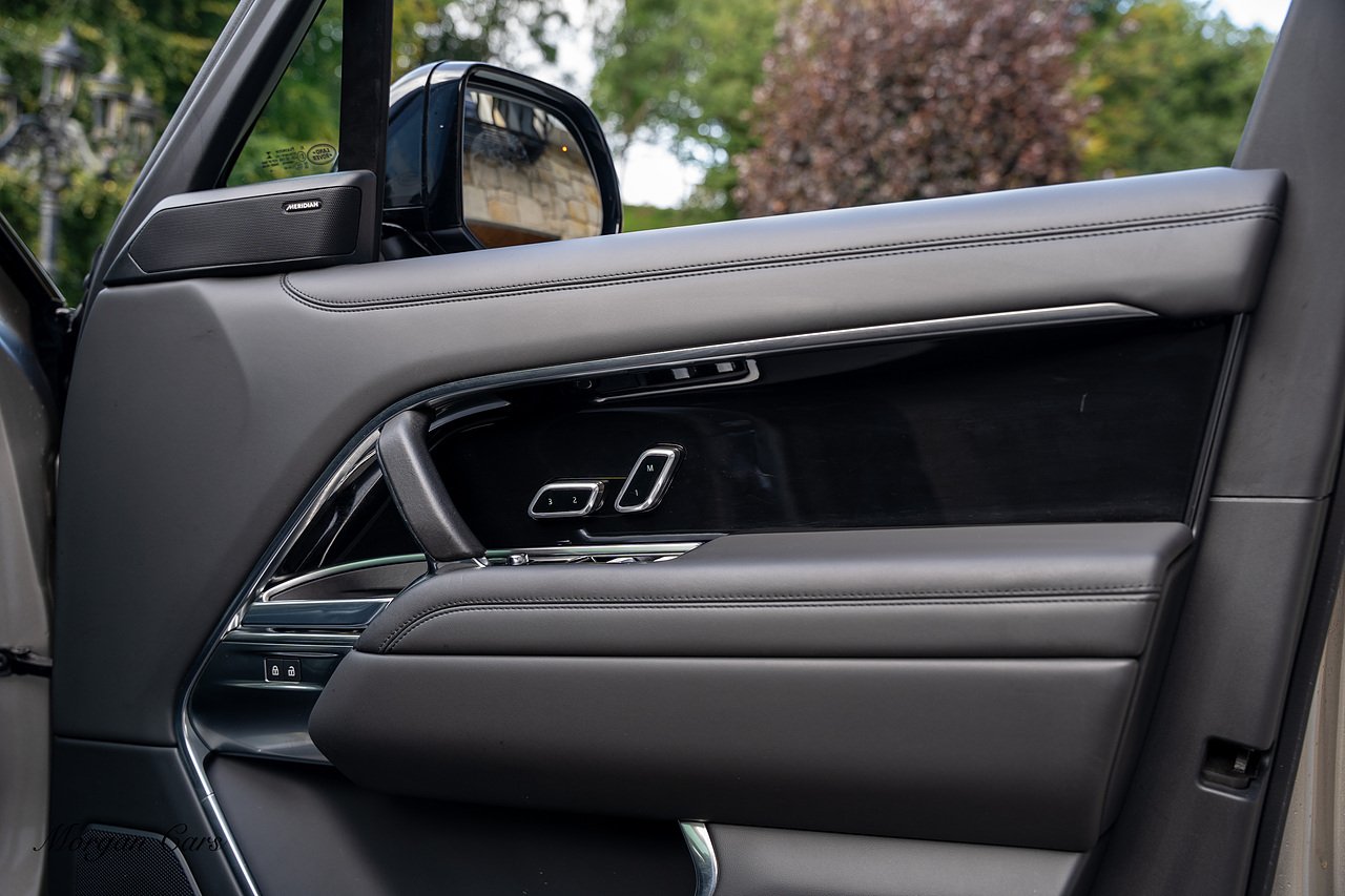 Morgan Cars are proud to present this Range Rover D300 SE finished in stunning Batumi Gold Metallic with Full Ebony leather interior | This Range Rover is a 1 owner vehicle from new with a full Land Rover Service history and is specified with 23" Black Multispoke wheels as pictured as an optional extra or 21" Multispoke alloy wheels in black with polished face, Panoramic Fixed glass sunroof, Piano Black wood interior trim, Meridian 3D Surround sound system, Privacy Glass, 360 Surround view camera system, Gloss Black lower half styling, Fixed side steps, Heated Multifunction steering wheel, Self levelling height adjustable air suspension system.
