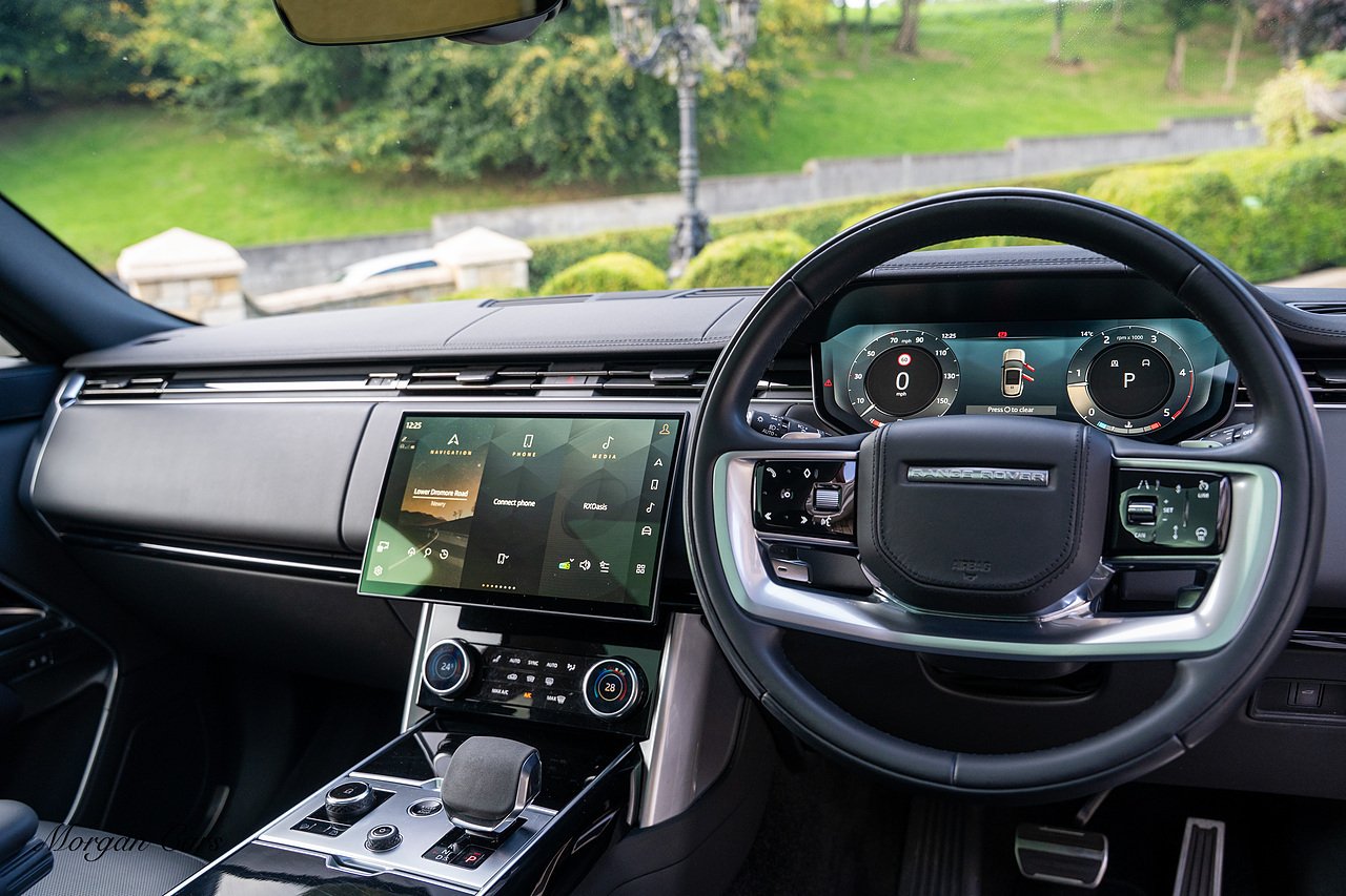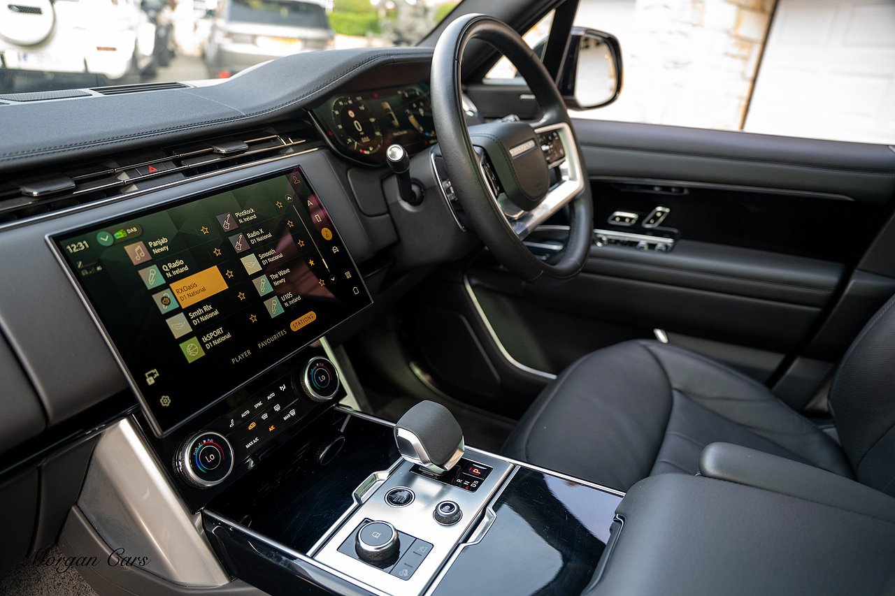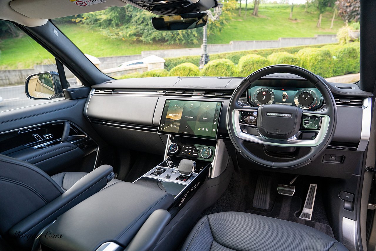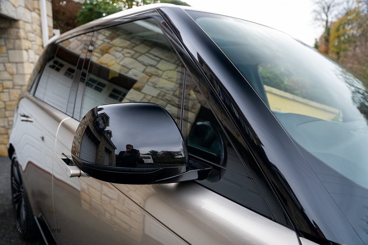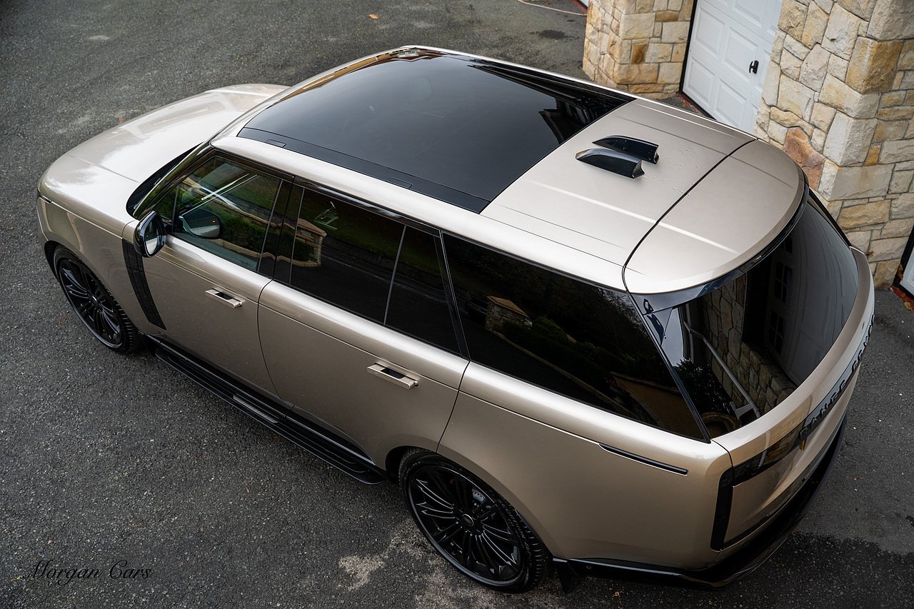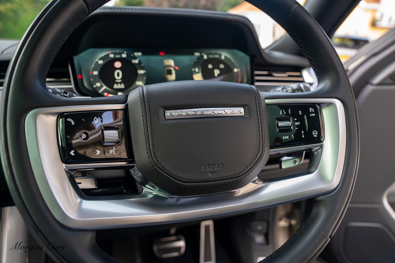 Morgan Cars are proud to present this Range Rover D300 SE finished in stunning Batumi Gold Metallic with Full Ebony leather interior | This Range Rover is a 1 owner vehicle from new with a full Land Rover Service history and is specified with 23" Black Multispoke wheels as pictured as an optional extra or 21" Multispoke alloy wheels in black with polished face, Panoramic Fixed glass sunroof, Piano Black wood interior trim, Meridian 3D Surround sound system, Privacy Glass, 360 Surround view camera system, Gloss Black lower half styling, Fixed side steps, Heated Multifunction steering wheel, Self levelling height adjustable air suspension system.