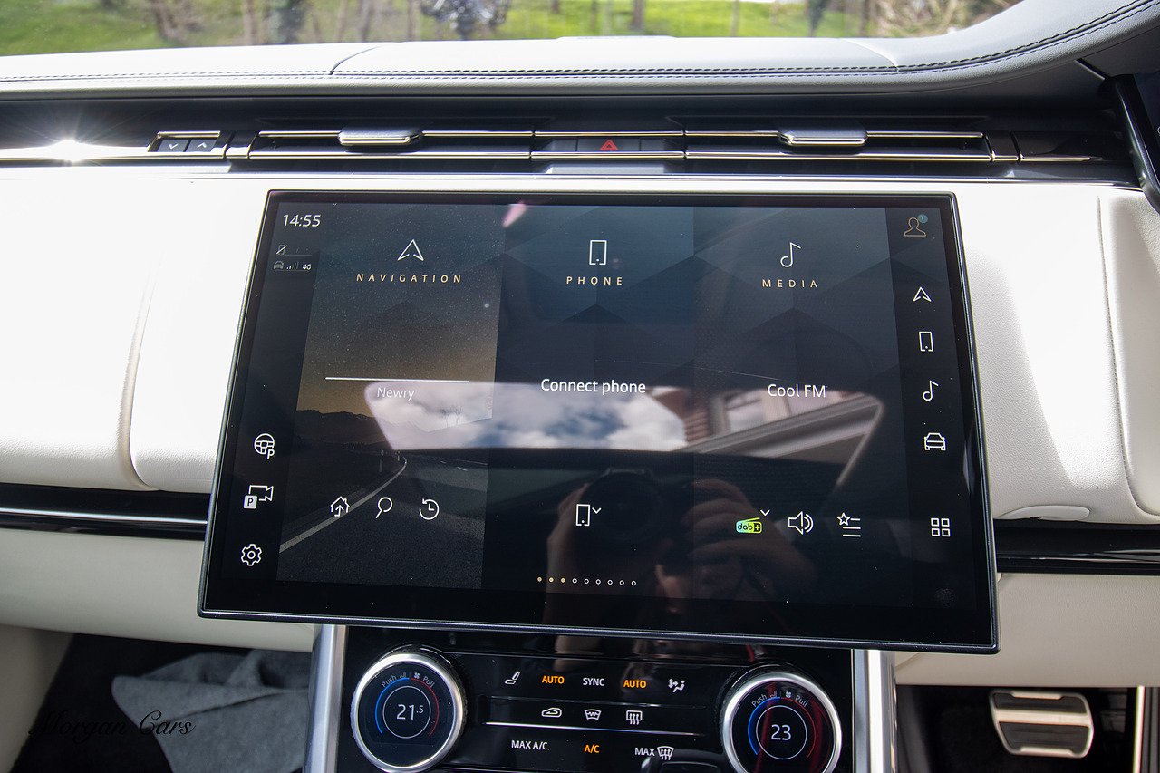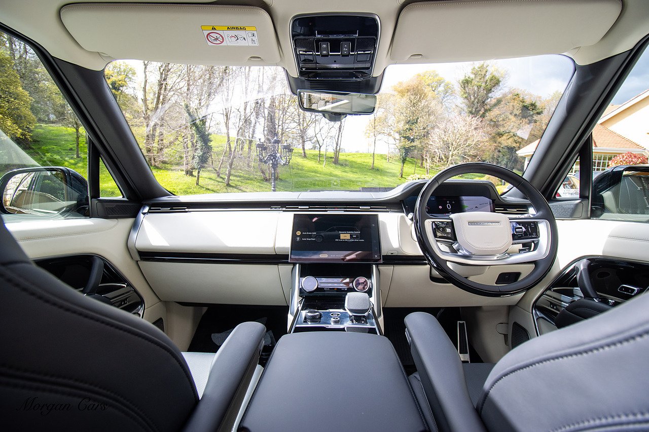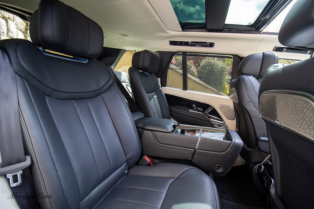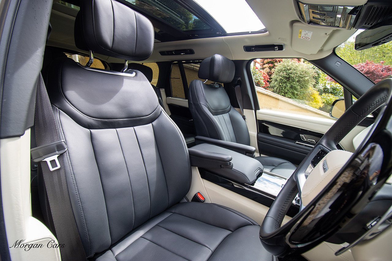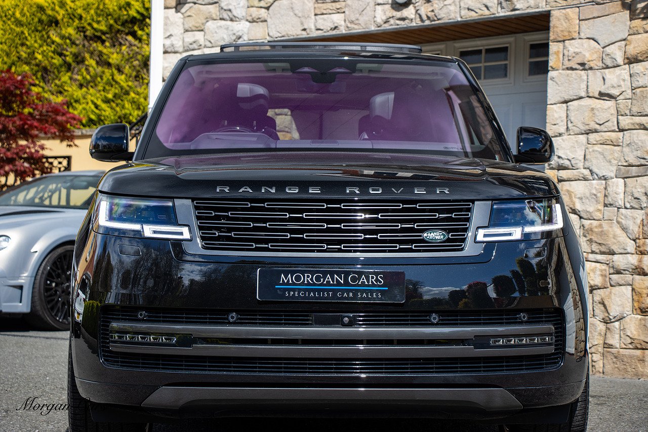 Morgan Cars are Proud to Present this Stunning Range Rover Autobiography P530 finished in Santorini Black Metallic with Ebony and Ivory Leather Interior | This Massive Spec Range Rover Autobiography features the Upgraded 23" Multispoke alloy wheels in Gloss Black | Tilt and Slide Panoramic Glass Sunroof | Shadow Exterior Package | Electronically Deployable Side Steps | Meridian Signature Sound Package | Front Central Fridge compartment | Front End self healing Paint Protection Film | Front heated and ventilated Hot Stone Massage 14 way memory seats | Grand Black Gloss Veneer | Gloss Black Veneer Steering wheel| Executive Rear Seat package with reclining rear seats with heat ventilation and massage | Pixel LED Laser Auto headlights |Rear Axle Steering system | Radar guided cruise control.