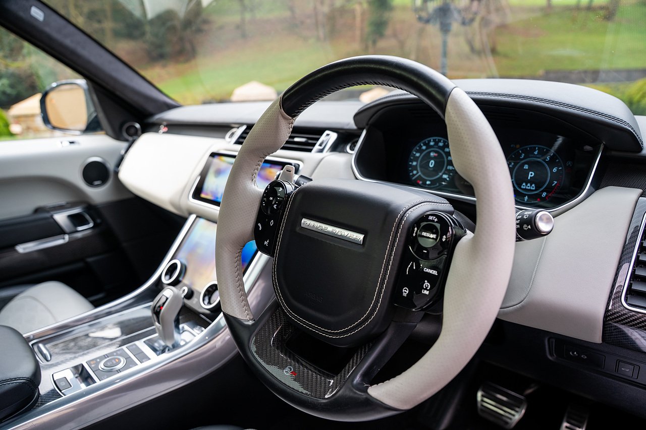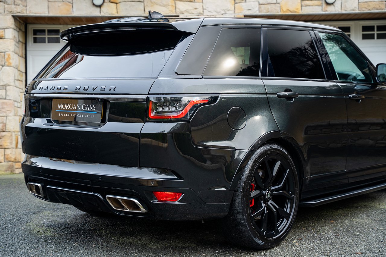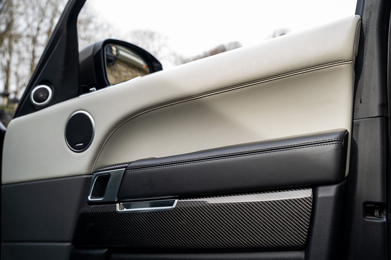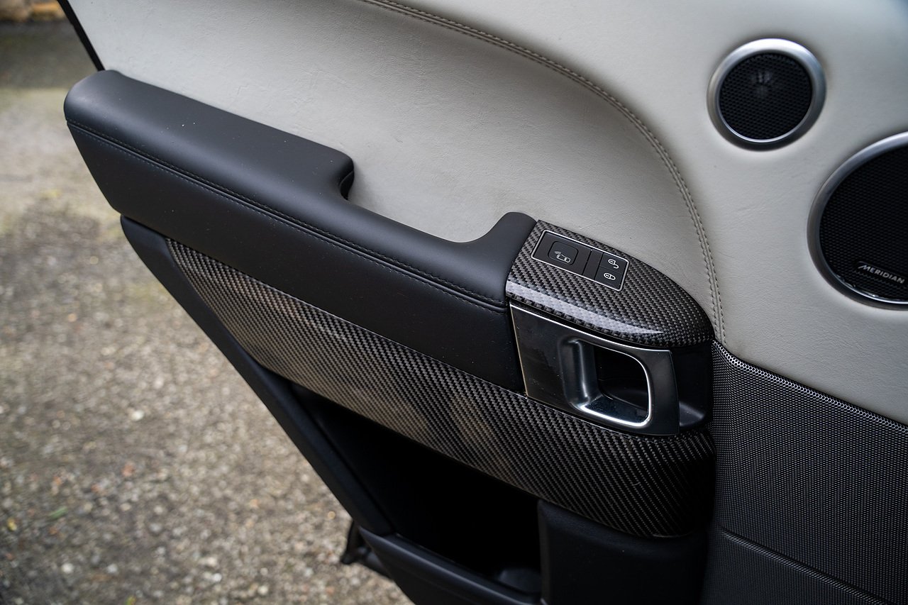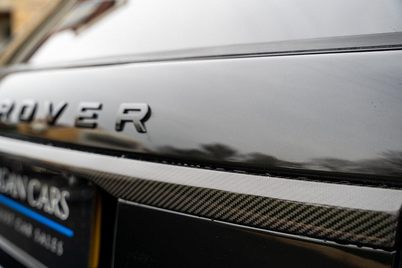 The Specification of this example involves, Exterior Carbon Fibre Pack with Front Bumper Grills, Wing Vents, Rear Boot Trim and Door Mirrors, Vented Carbon Fibre Non Exposed Bonnet, A Fixed Panoramic Glass Roof, Upgraded Meridian 825 Watt HiF Surround Sound System, Complete Carbon Fibre Interior Package, 22" 5 Split Spoke Alloy Wheels In Gloss Black, Centre Console Fridge, Heated Steering Wheel and Heated Front and Rear Seats, Full Reversing Camera, Satellite Navigation, DAB Radio, Bluetooth with Full Audio Streaming, Fixed Side Steps in Gloss Black, Privacy glass, Gloss Red SV painted Callipers, Gloss Black Range rover Lettering and Much More.