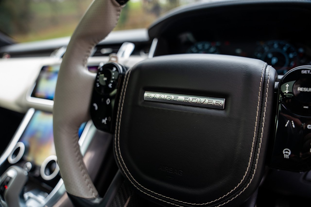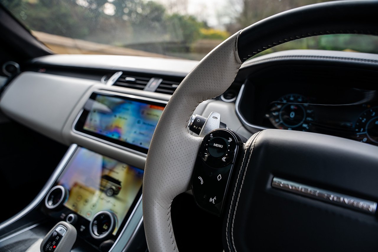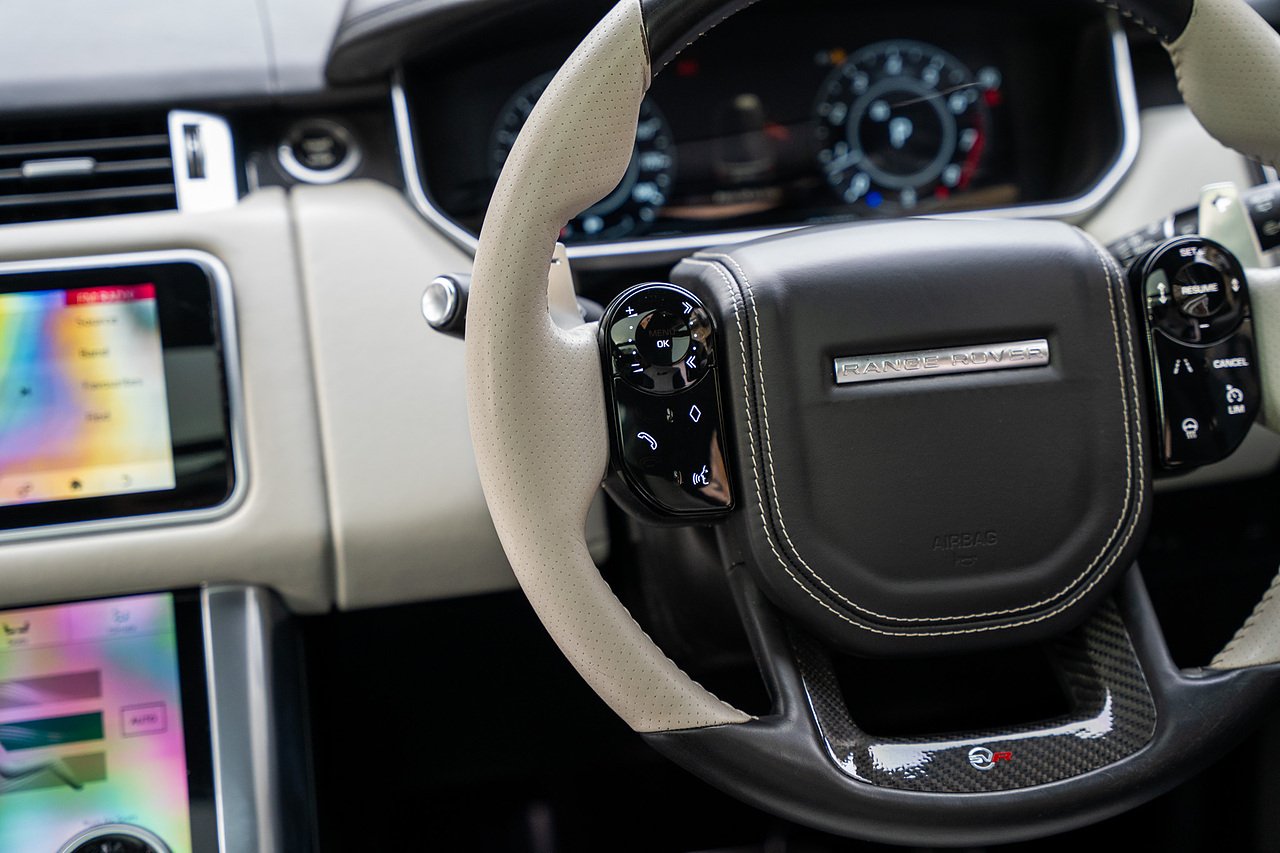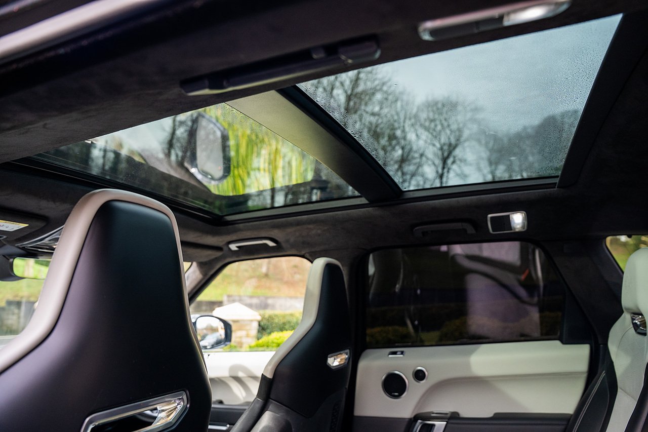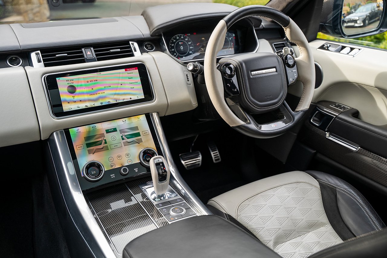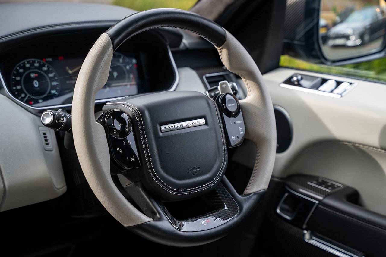 The Specification of this example involves, Exterior Carbon Fibre Pack with Front Bumper Grills, Wing Vents, Rear Boot Trim and Door Mirrors, Vented Carbon Fibre Non Exposed Bonnet, A Fixed Panoramic Glass Roof, Upgraded Meridian 825 Watt HiF Surround Sound System, Complete Carbon Fibre Interior Package, 22" 5 Split Spoke Alloy Wheels In Gloss Black, Centre Console Fridge, Heated Steering Wheel and Heated Front and Rear Seats, Full Reversing Camera, Satellite Navigation, DAB Radio, Bluetooth with Full Audio Streaming, Fixed Side Steps in Gloss Black, Privacy glass, Gloss Red SV painted Callipers, Gloss Black Range rover Lettering and Much More.