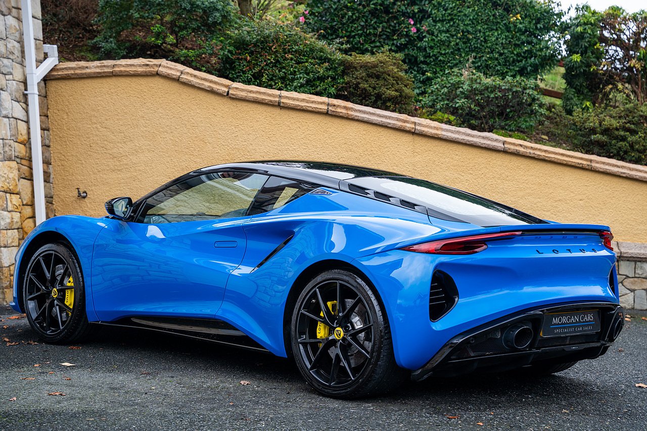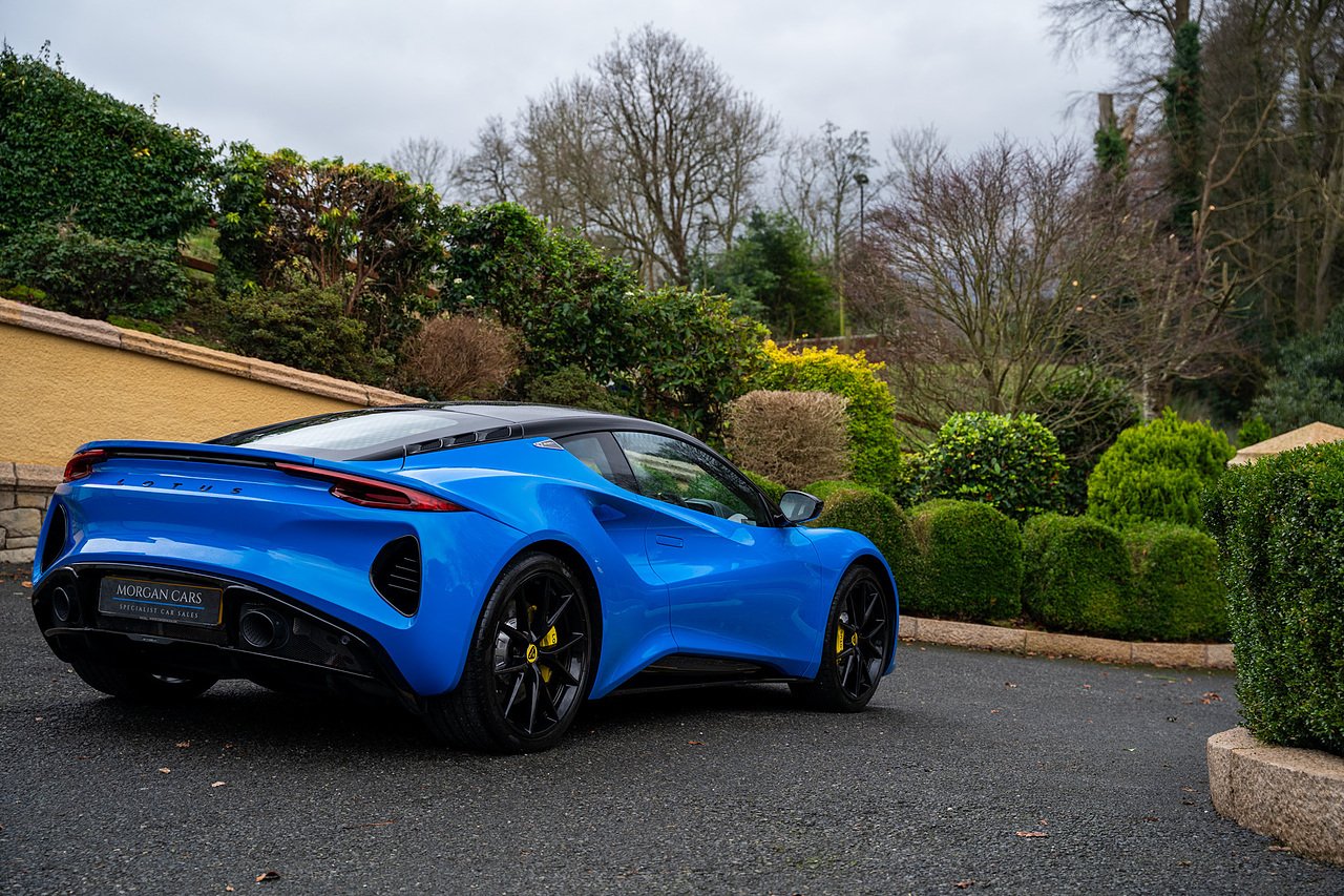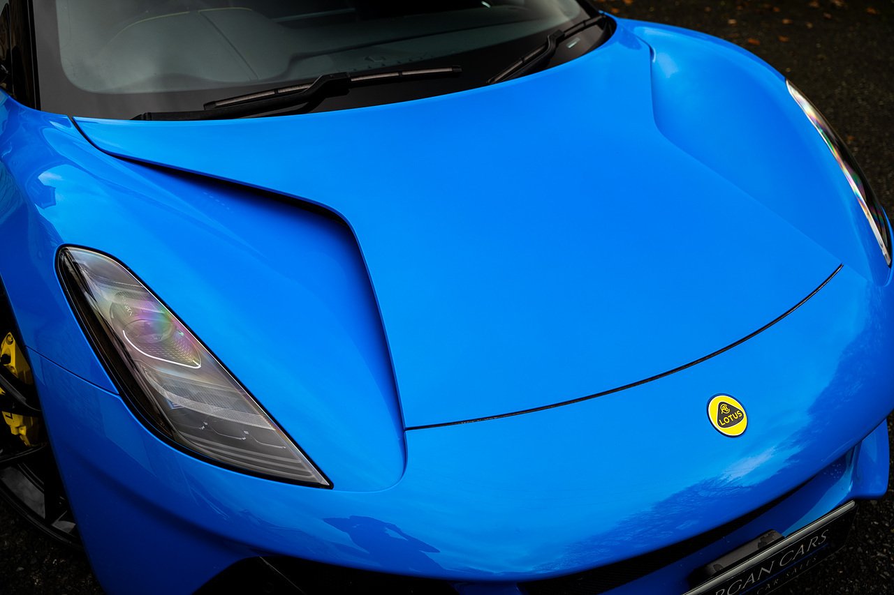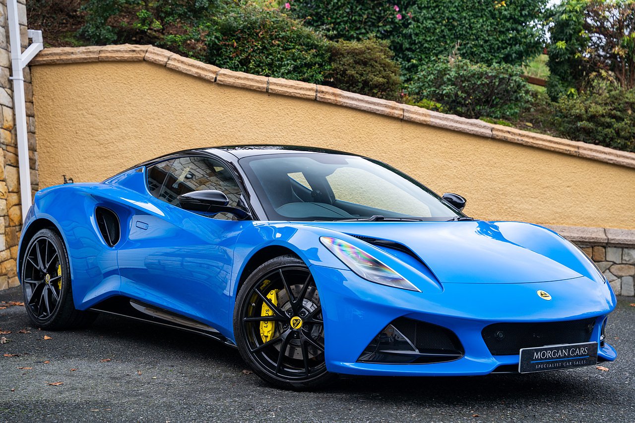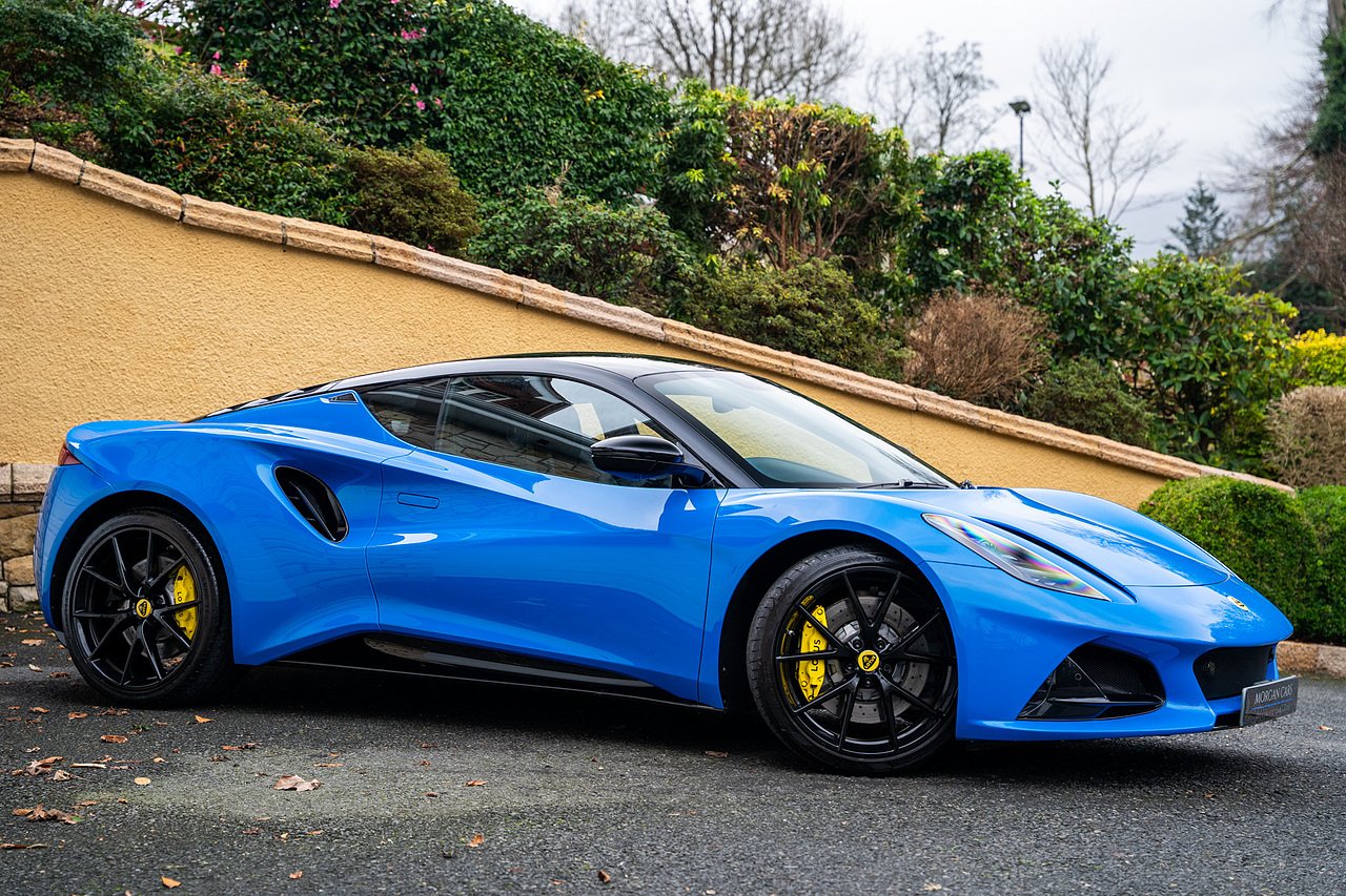 Morgan Cars are Proud To Present our Lotus Emira First Edition, Finished in Senaca Blue metallic and contrasting Alcantara and Black Leather Interior with Yellow Stitching and Pipping Elements.