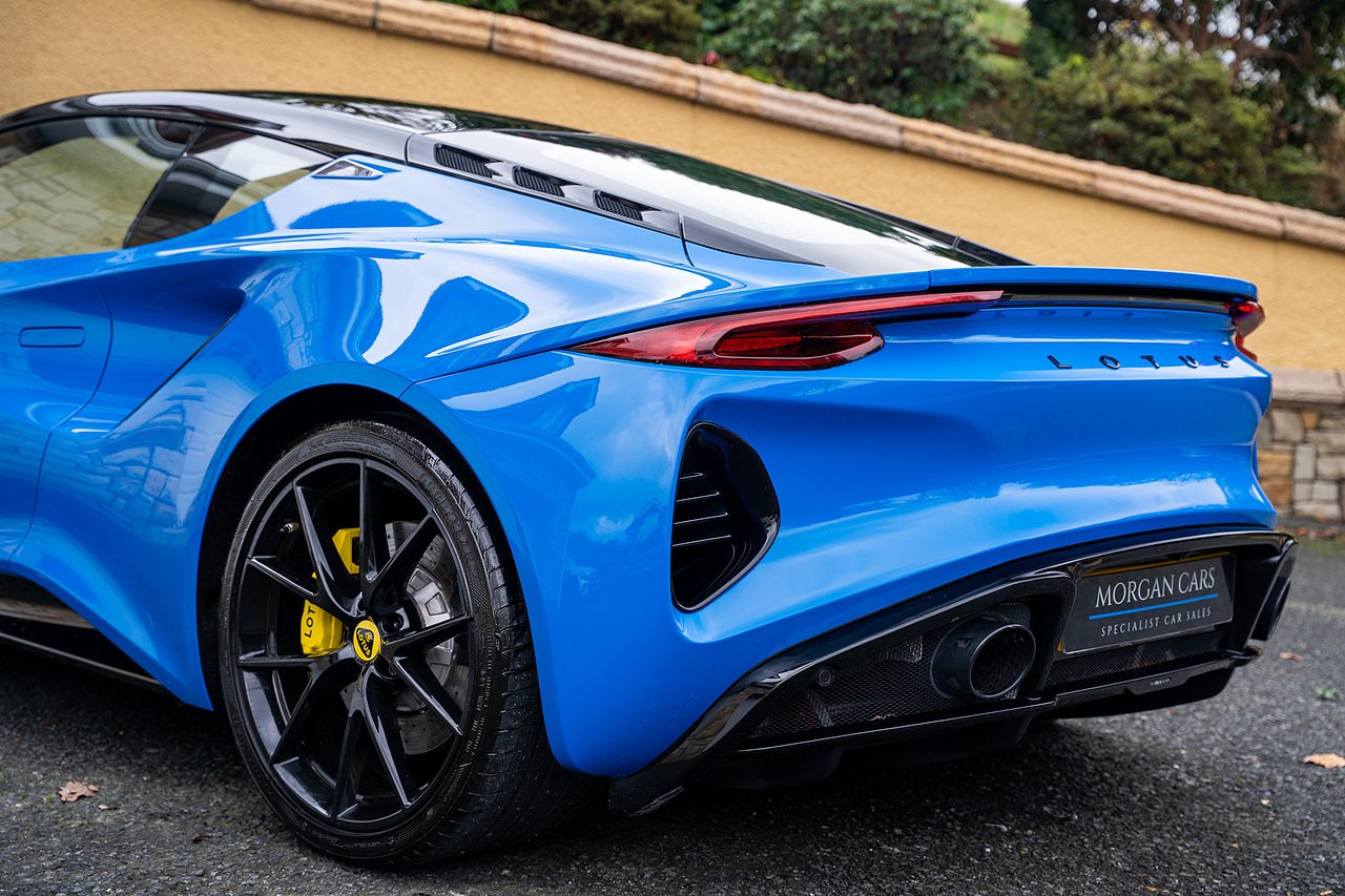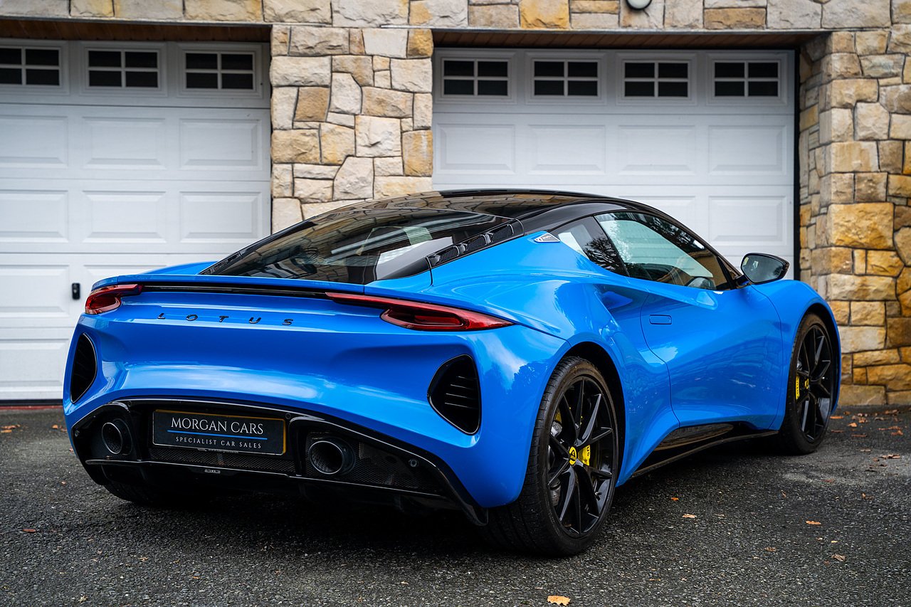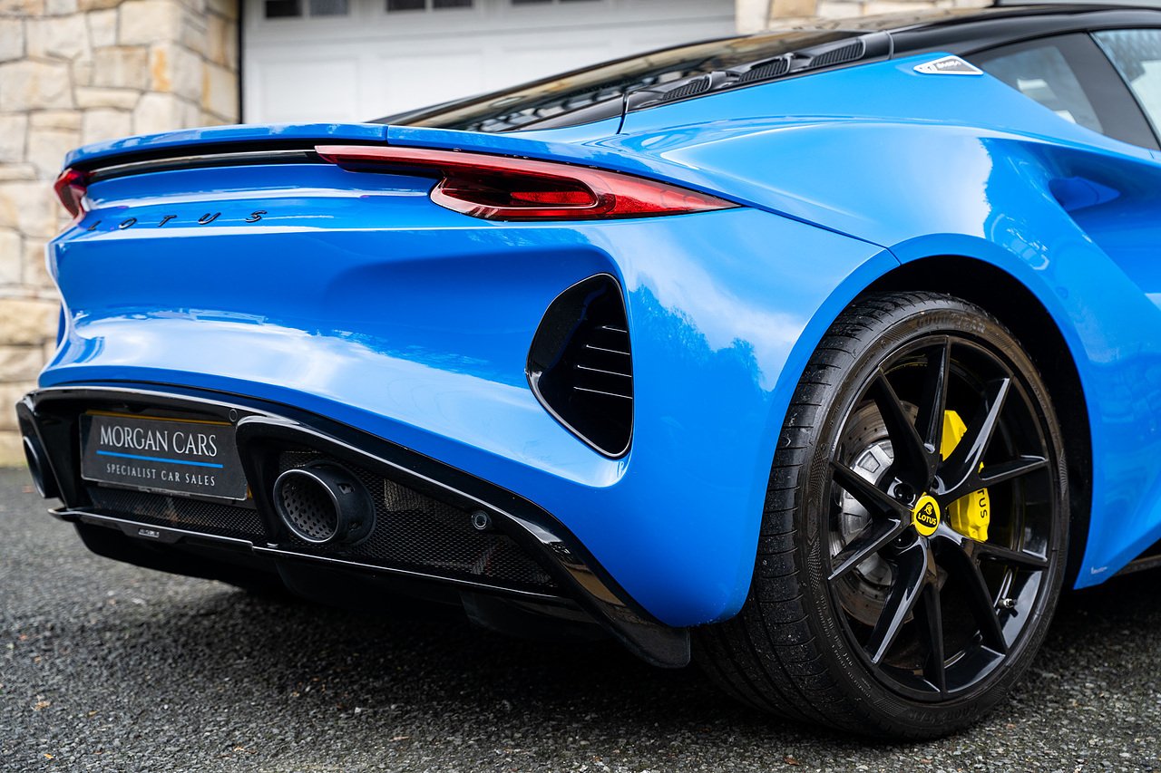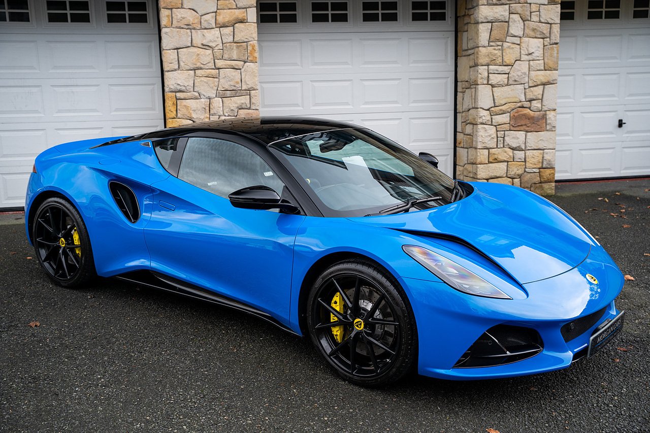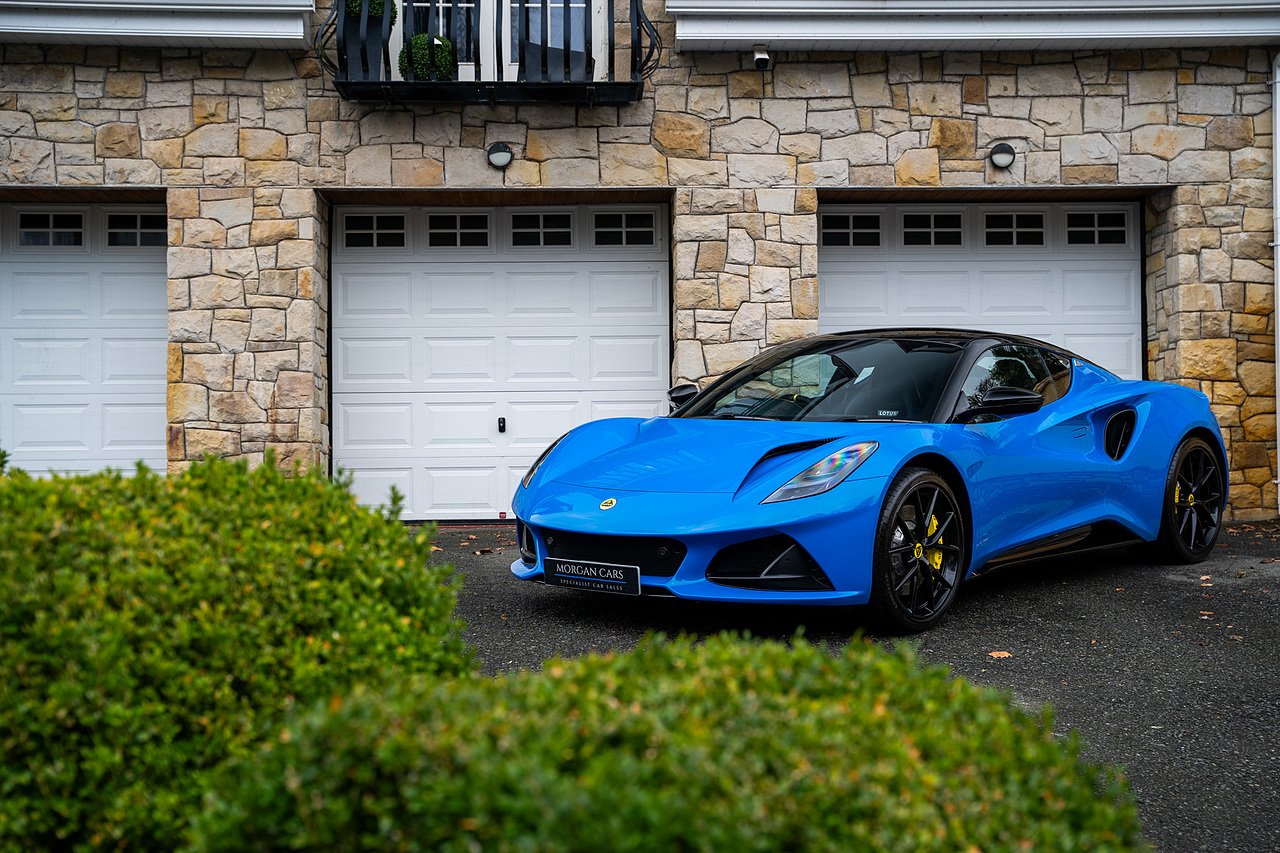 Morgan Cars are Proud To Present our Lotus Emira First Edition, Finished in Senaca Blue metallic and contrasting Alcantara and Black Leather Interior with Yellow Stitching and Pipping Elements.