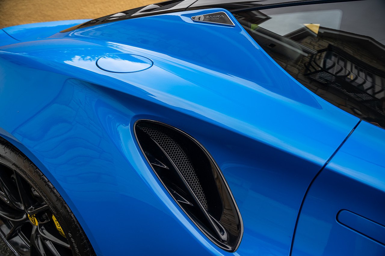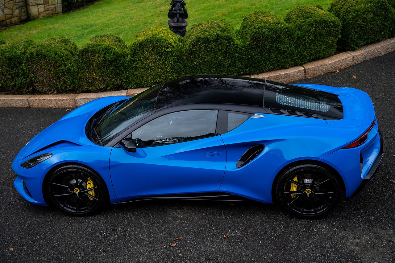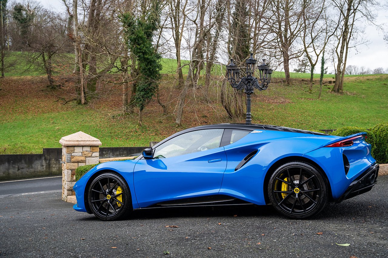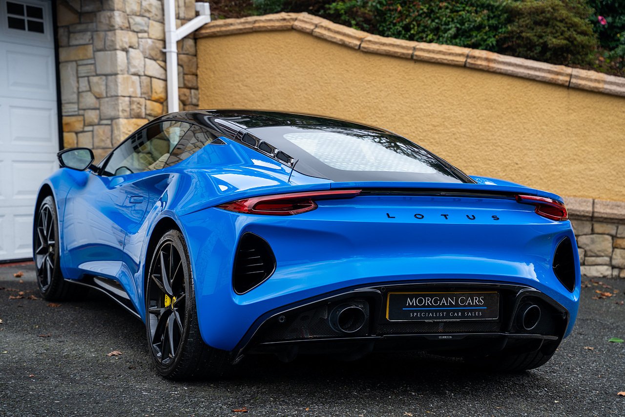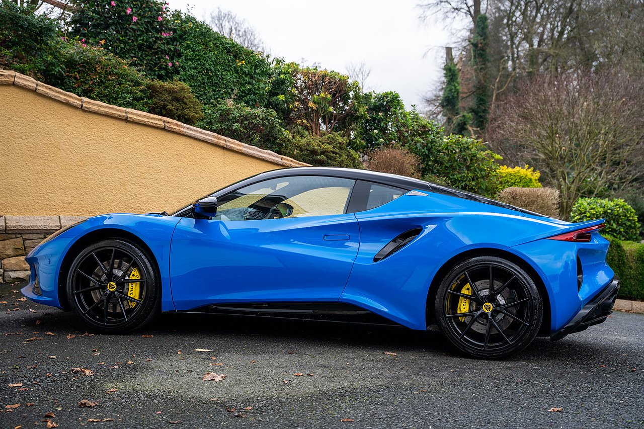 Morgan Cars are Proud To Present our Lotus Emira First Edition, Finished in Senaca Blue metallic and contrasting Alcantara and Black Leather Interior with Yellow Stitching and Pipping Elements.