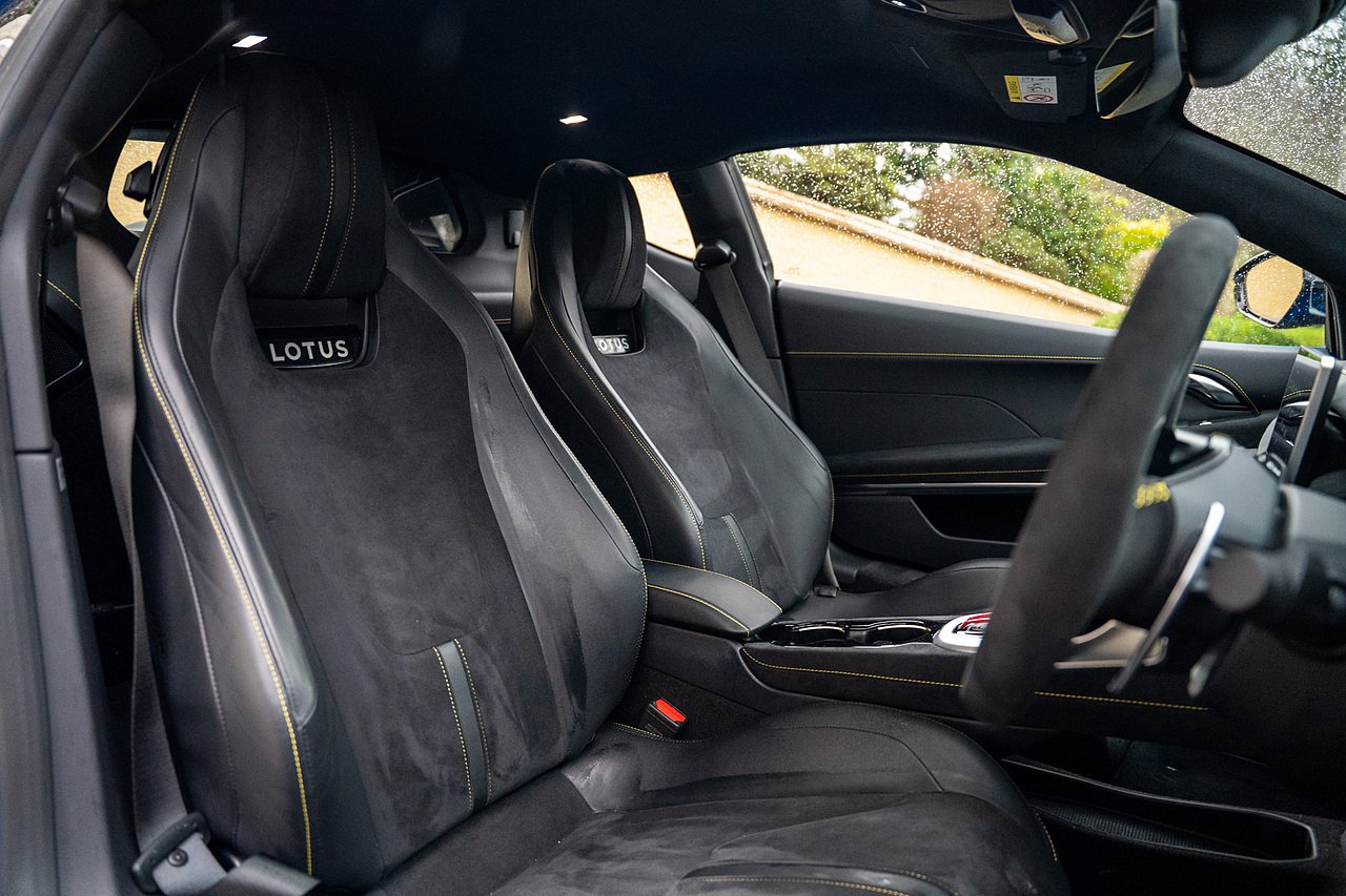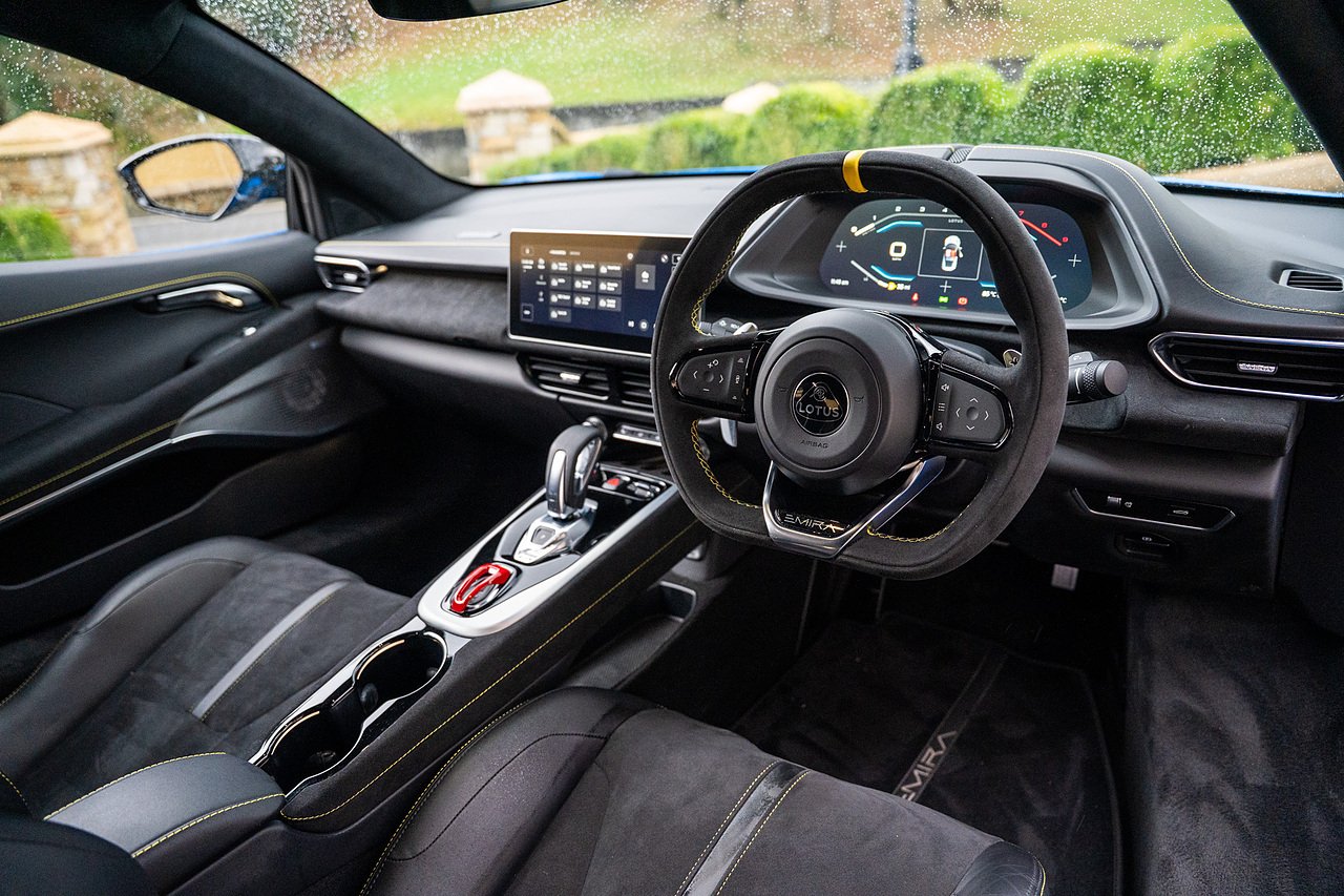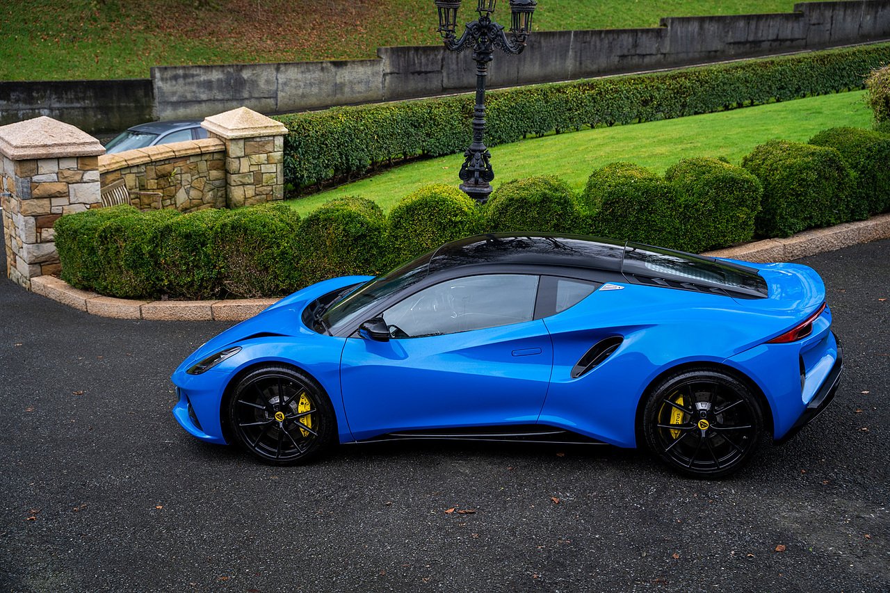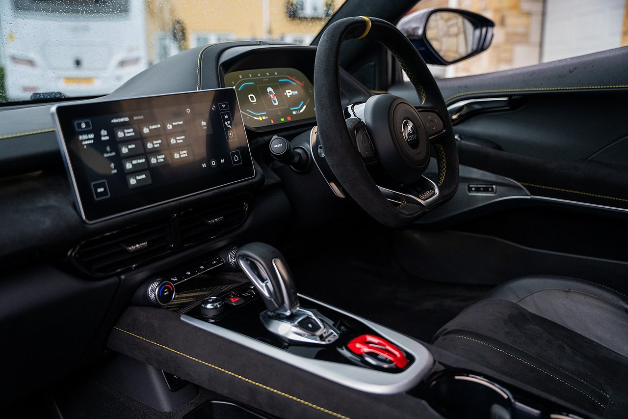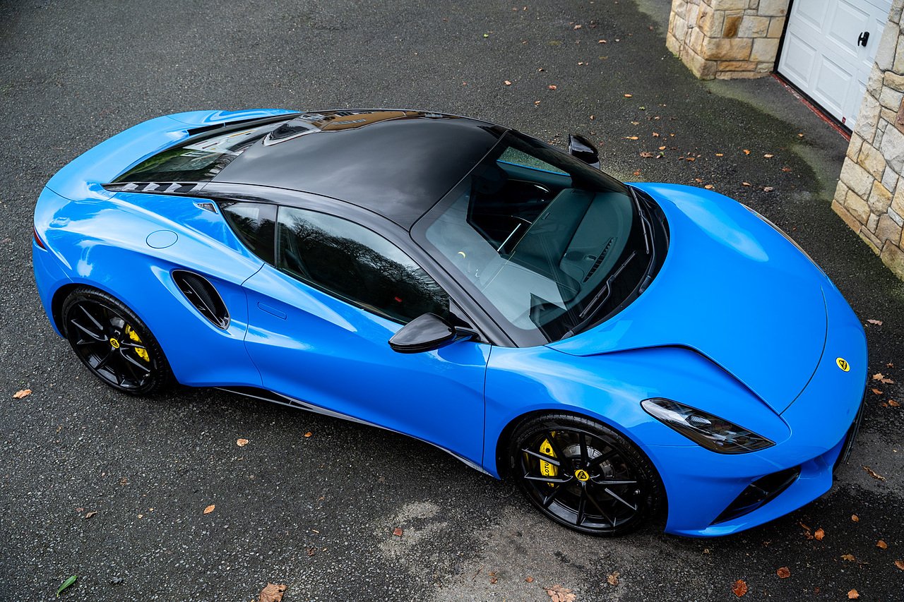 Morgan Cars are Proud To Present our Lotus Emira First Edition, Finished in Senaca Blue metallic and contrasting Alcantara and Black Leather Interior with Yellow Stitching and Pipping Elements.