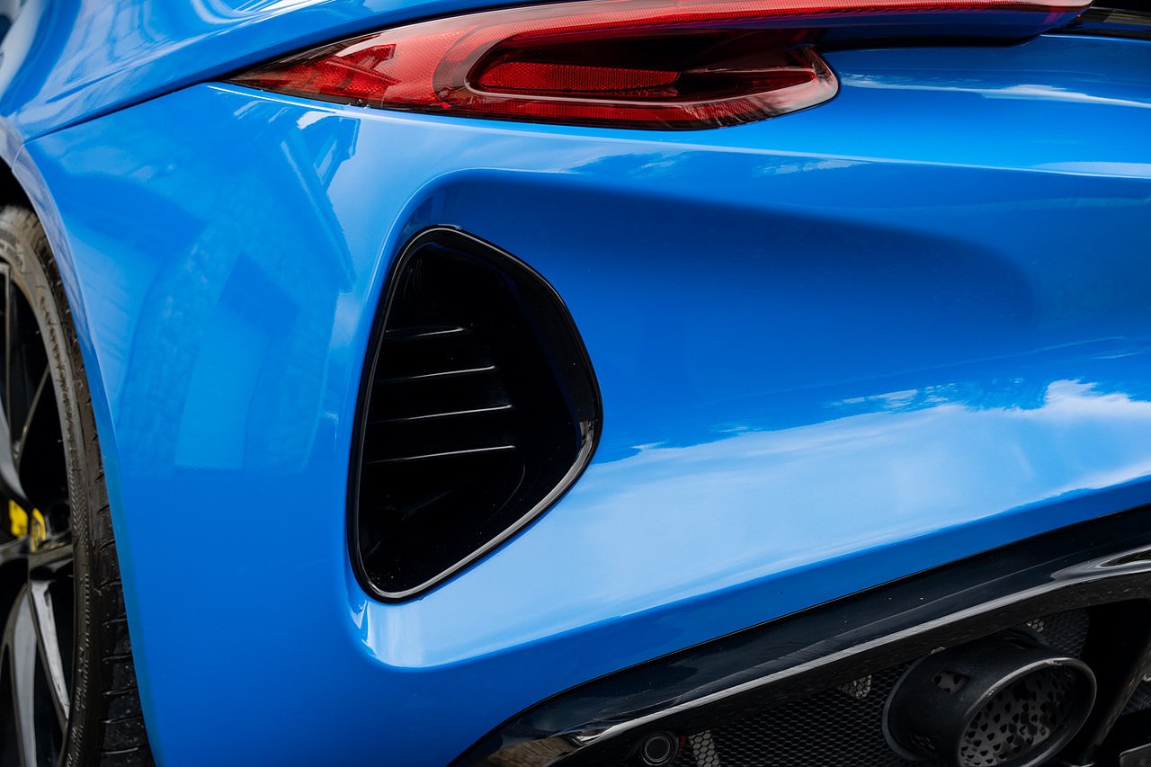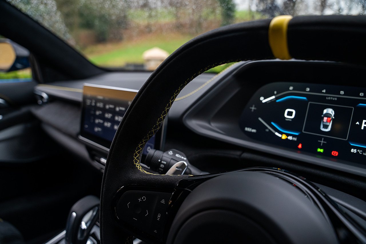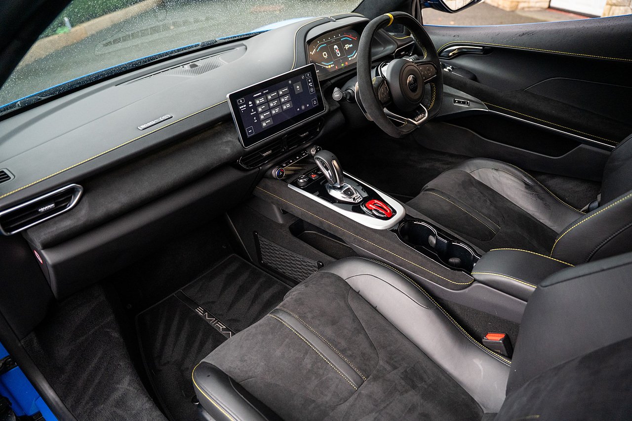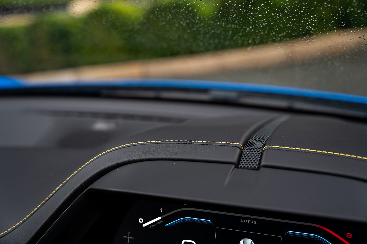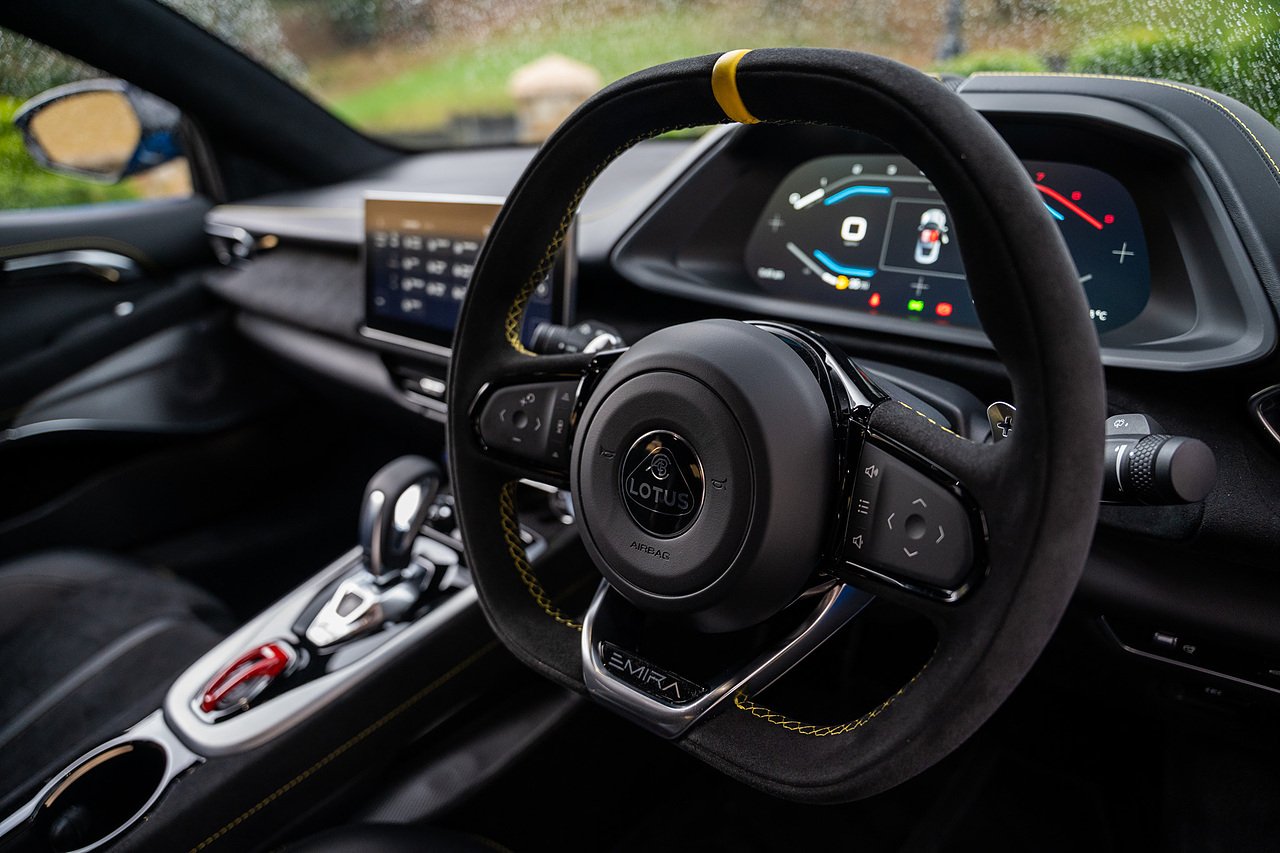 Morgan Cars are Proud To Present our Lotus Emira First Edition, Finished in Senaca Blue metallic and contrasting Alcantara and Black Leather Interior with Yellow Stitching and Pipping Elements.
