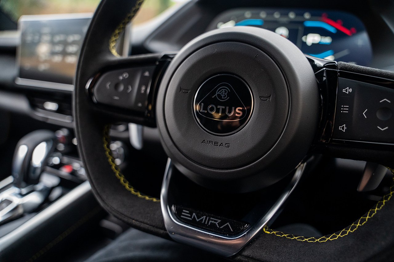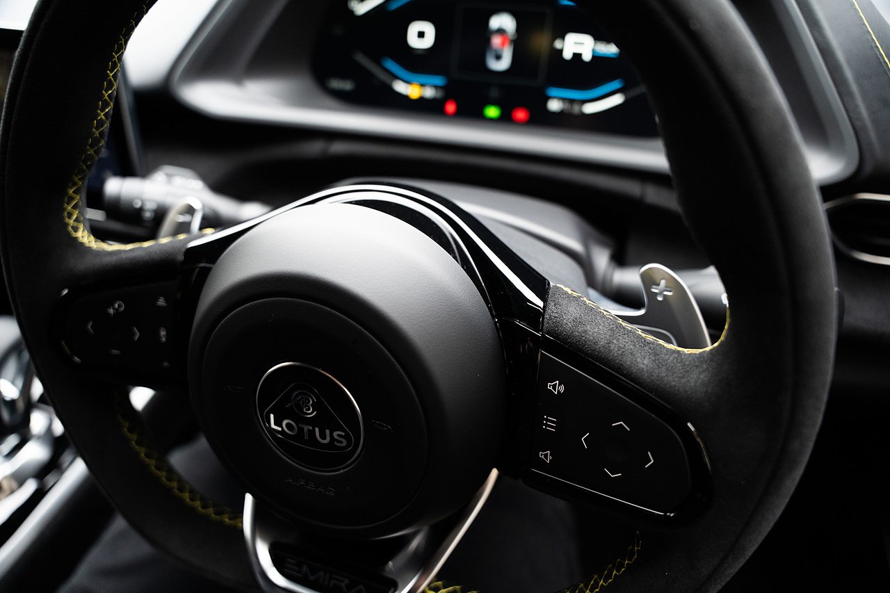 This First Edition Lotus Emira 2.0 Turbo DCT AMG Power plant, This Particular car has the added factory Full Black pack with black upper half roof Section with Black Chrome Exhaust Tips and Lower Vents and Bumper Sections as shown in the Images Provided. Also Gloss Black lightweight 20" Forged Alloy wheels, Upgraded KEF Audio System, Rear Assist Reversing Assist Camera, Extended Alcantara Interior trims with Yellow Piping, Yellow Painted brake calipers, Privacy Glass, DAB Digital Radio and Much More. Contact us for More Information.
