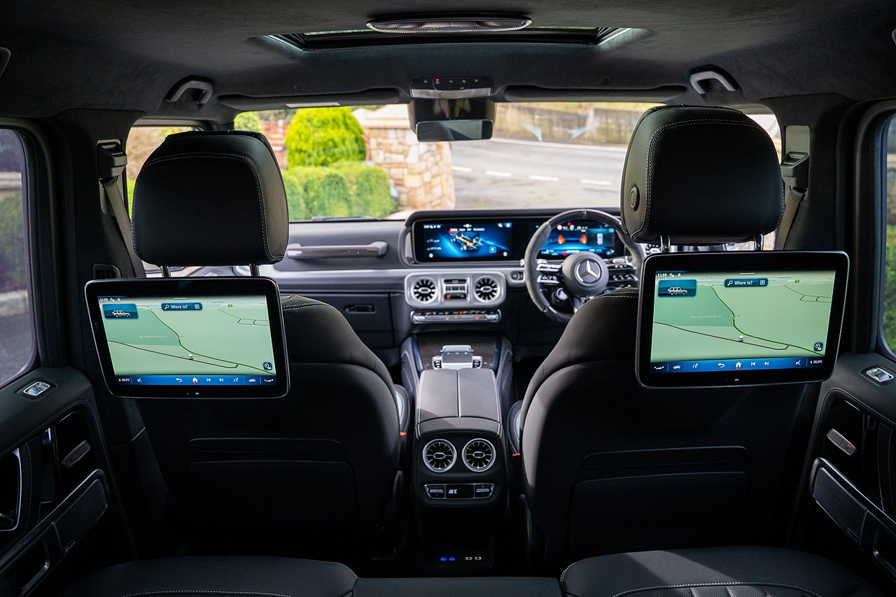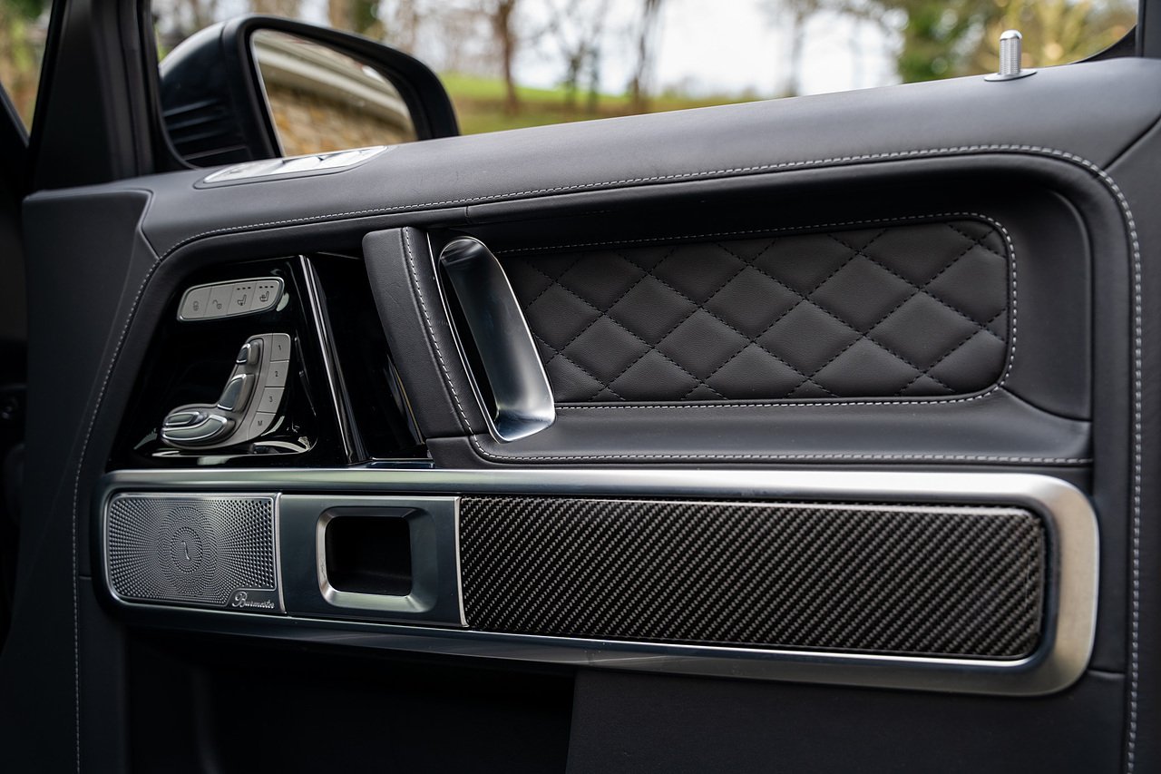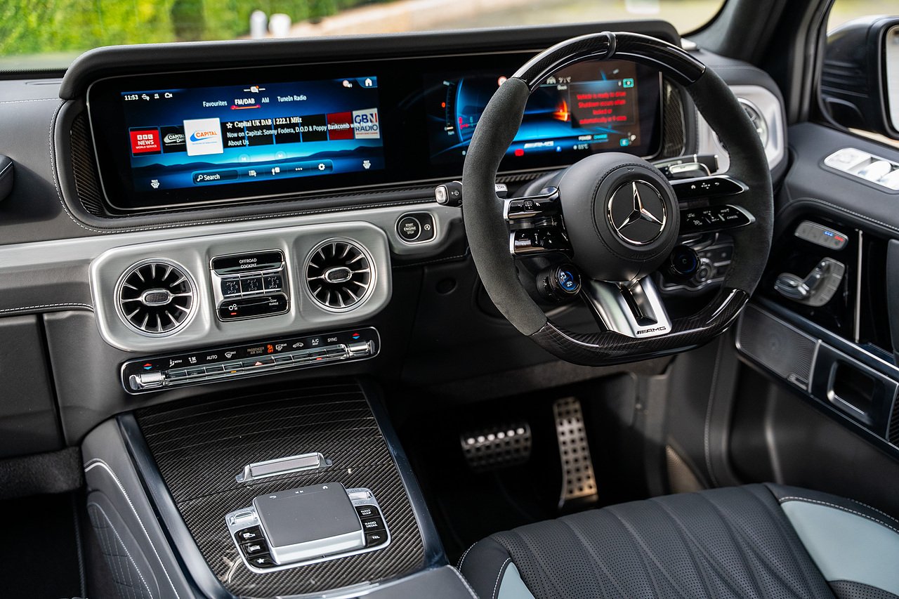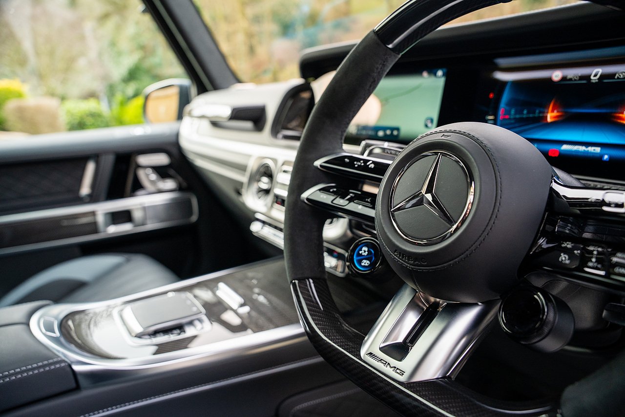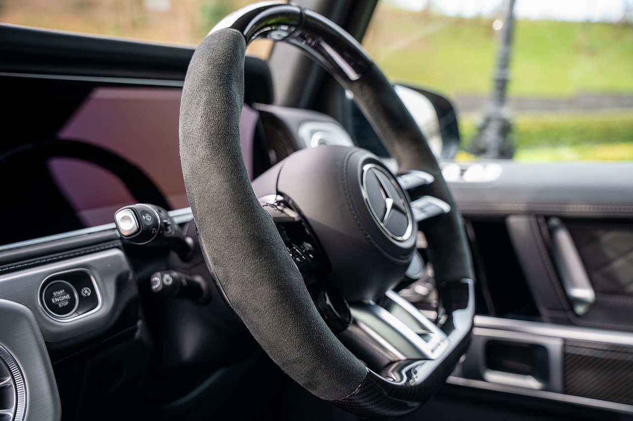 All New 2025 Facelift model with Upgraded Interior and Infotainment system and Upgraded Exterior elements as well as Upgraded front and rear bumpers, The Specification of this examples Includes, MBUX High-End Rear Seat Entertainment System Cinema for the second row: 2 fully integrated touch displays with an 11.6-inch screen diagonal and connection to the MBUX multimedia system. Also 22" G63 AMG Cross Spoke Satin Forged Alloy Wheels, A G Manufaktur Package with Diamond Quilted Nappa leather interior in black, AMG Carbon Fibre Interior trim Package, Carbon Fibre and Suede Dinamica AMG Steering Wheel, Surround View 360 Camera system, Heated and Ventilated Massaging Front Multicontour seats and Heated Rear Seating, Burmester Surround Sound System, AMG Ride Control Performance Suspension, LED Ambient interior lighting package, DAB Digital Radio, MBUX Augmented Reality Navigation,