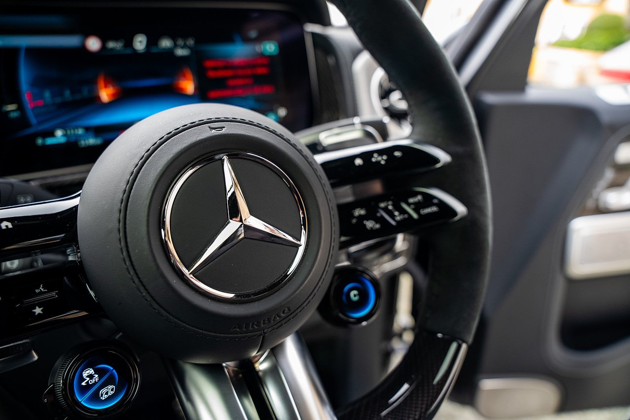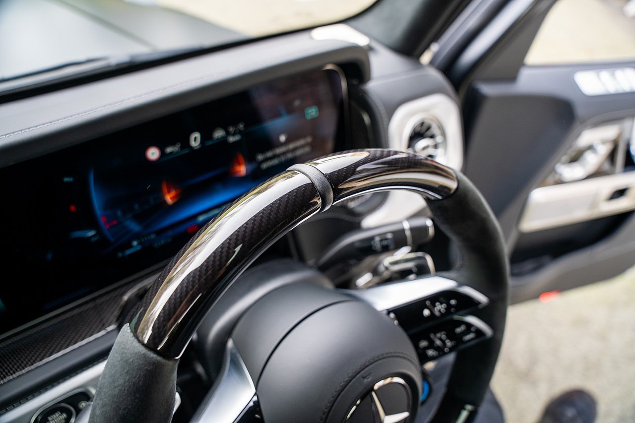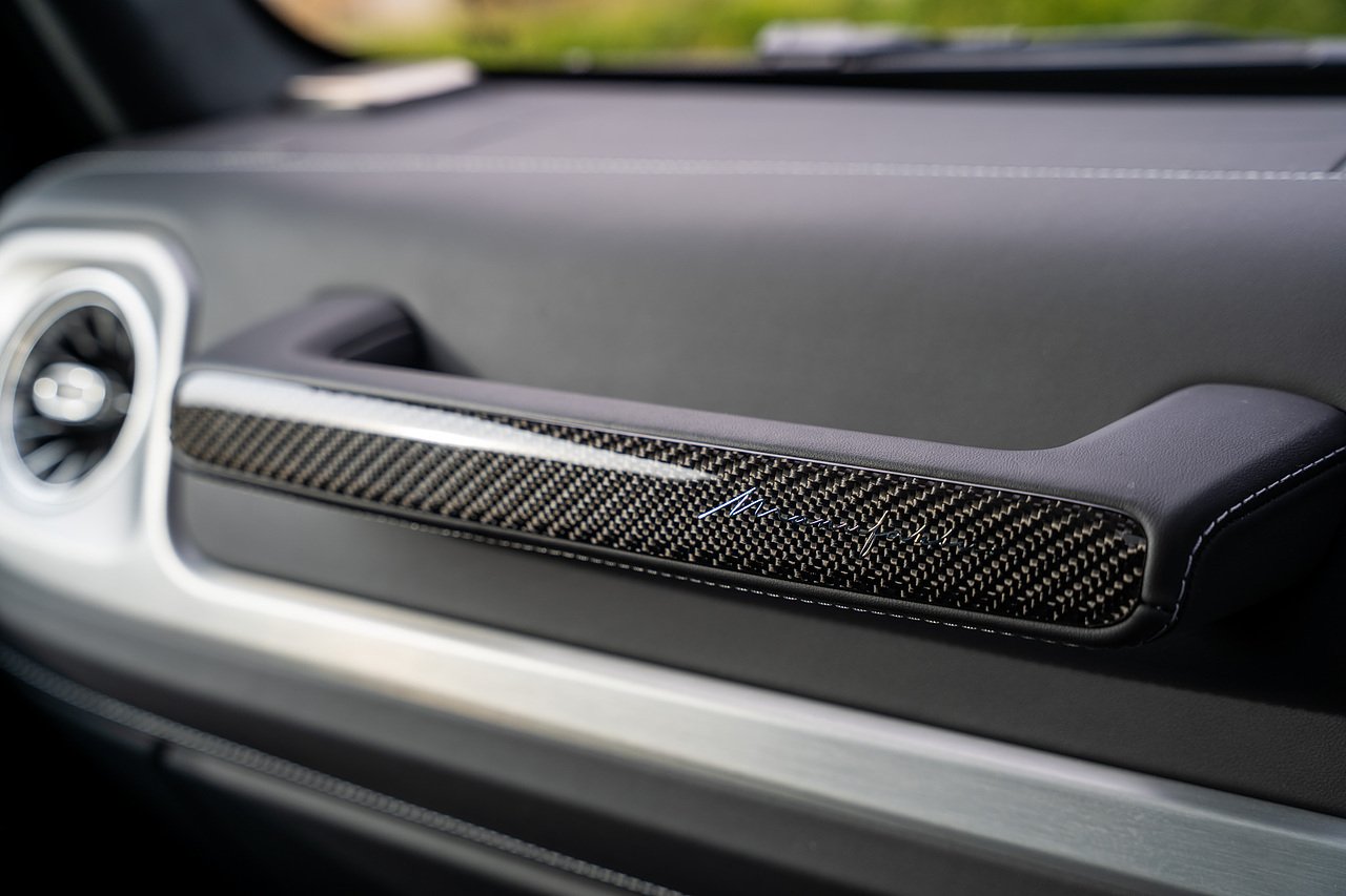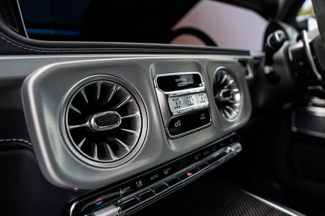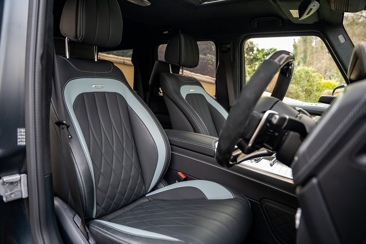 All New 2025 Facelift model with Upgraded Interior and Infotainment system and Upgraded Exterior elements as well as Upgraded front and rear bumpers, The Specification of this examples Includes, MBUX High-End Rear Seat Entertainment System Cinema for the second row: 2 fully integrated touch displays with an 11.6-inch screen diagonal and connection to the MBUX multimedia system. Also 22" G63 AMG Cross Spoke Satin Forged Alloy Wheels, A G Manufaktur Package with Diamond Quilted Nappa leather interior in black, AMG Carbon Fibre Interior trim Package, Carbon Fibre and Suede Dinamica AMG Steering Wheel, Surround View 360 Camera system, Heated and Ventilated Massaging Front Multicontour seats and Heated Rear Seating, Burmester Surround Sound System, AMG Ride Control Performance Suspension, LED Ambient interior lighting package, DAB Digital Radio, MBUX Augmented Reality Navigation,